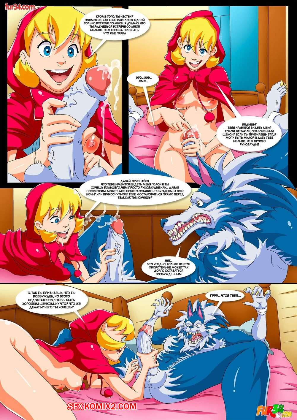 Порно комикс Сказка о Красной шапочке. Darkstalkers Tale of Little Red Riding Hood. Palcomix. Сексуальная блондинка Красная шапочка пришла домой к бабушке и обнаружила там связанного волка. Девушка стала сосать его большой хуй, после чего дала волку выебать свою пизденку.