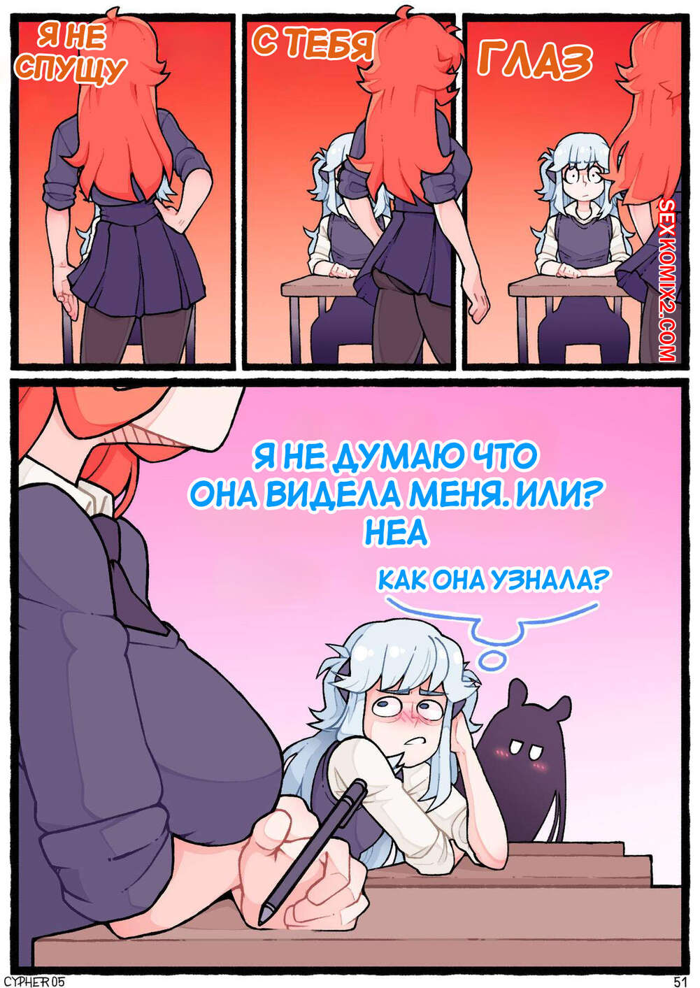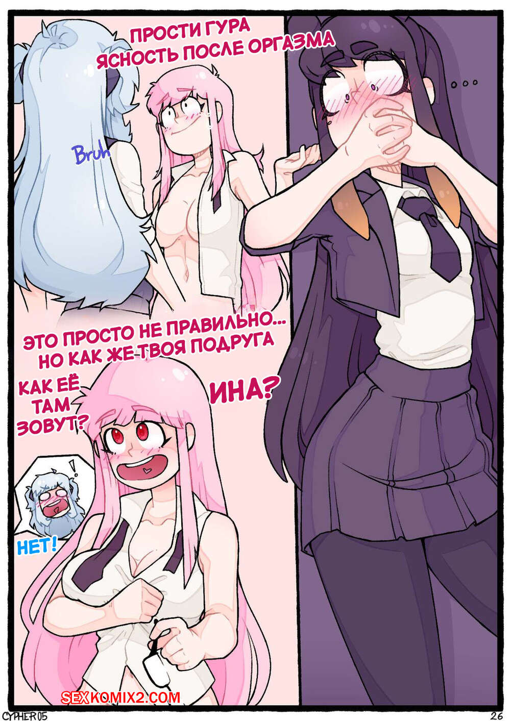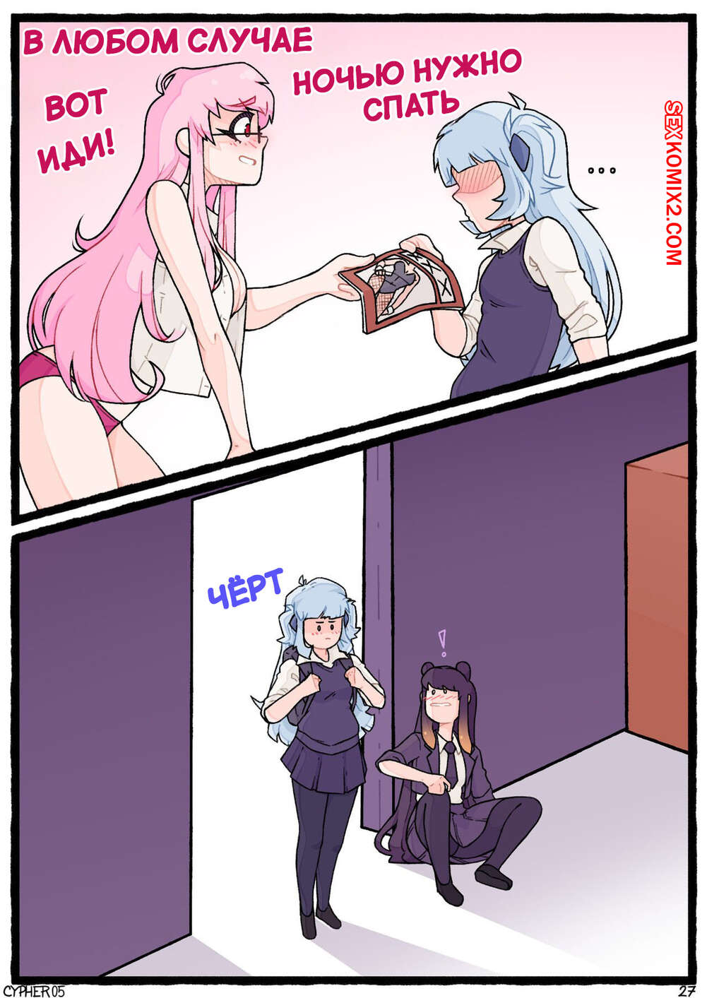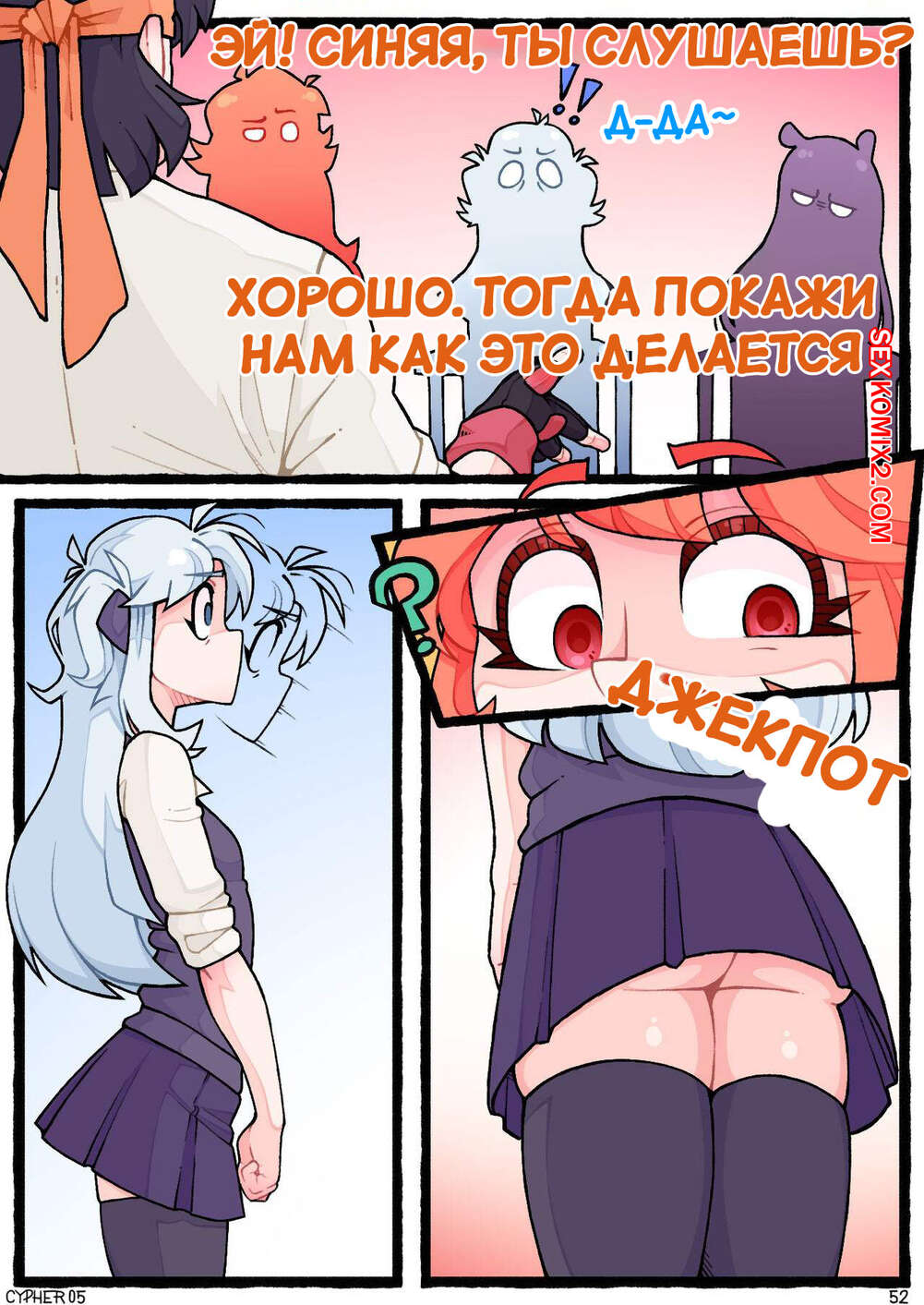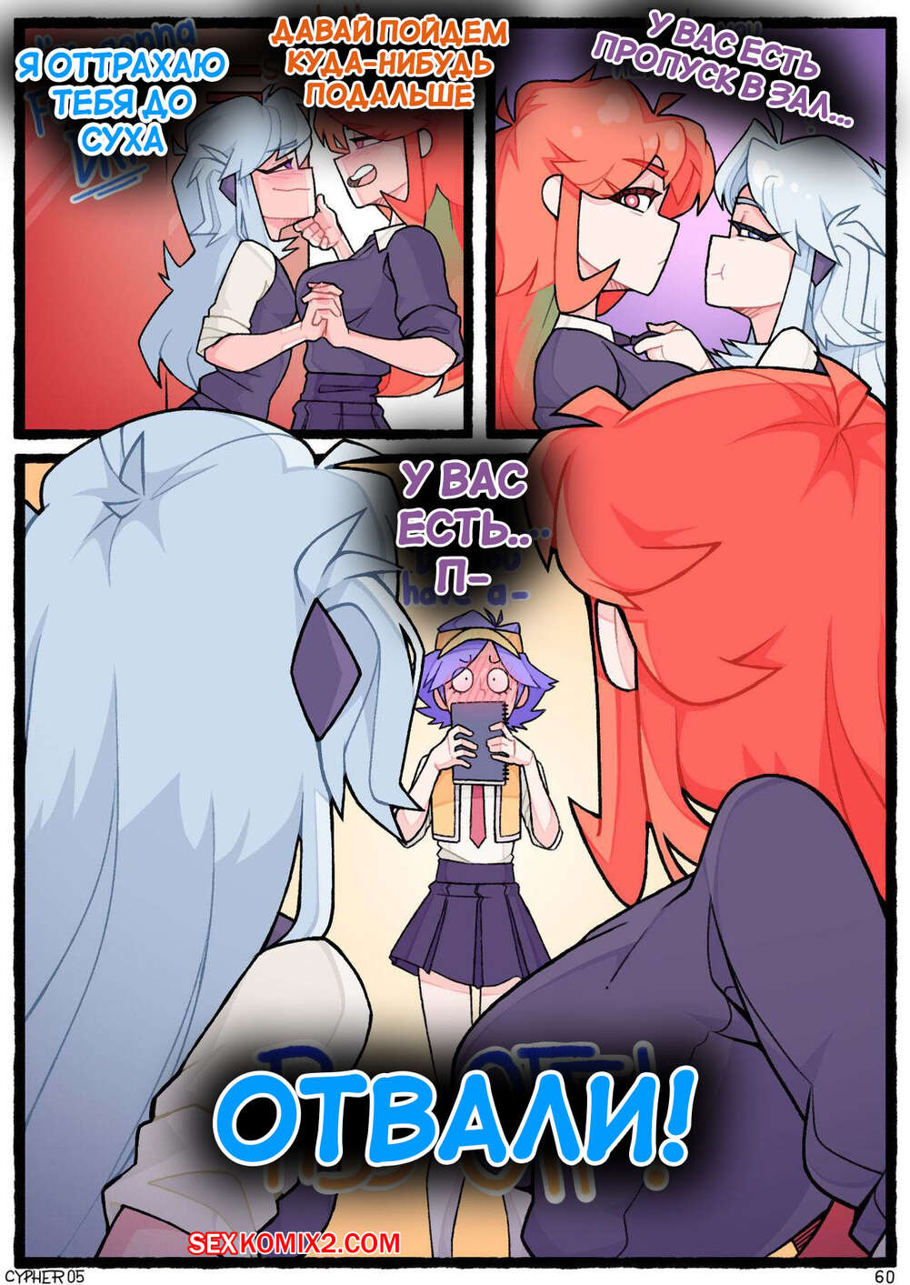 Порно комикс Поведение апекса. Apex Behavior. Cypher 05 Горячие сексуальные малышки были очень возбуждены и хотели трахаться. Девушки разделись и начали ласкать себя друг перед другом, получая от этого огромное удовольствие.