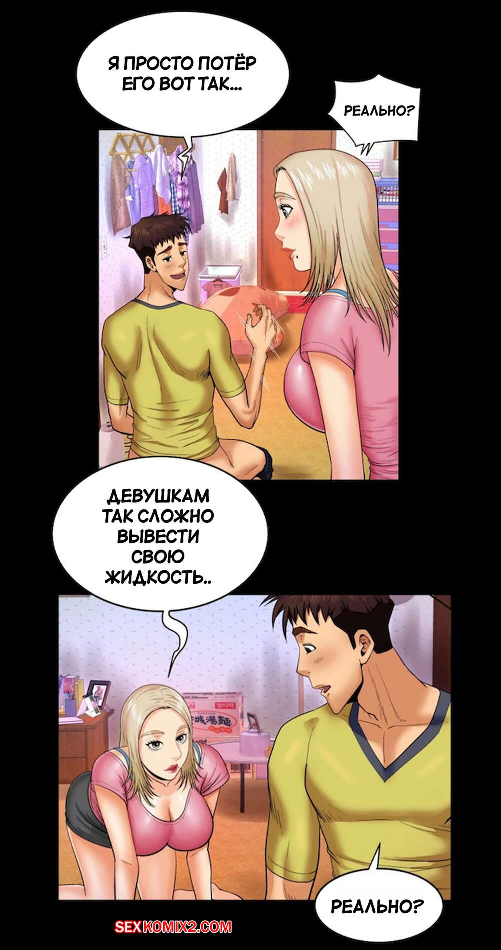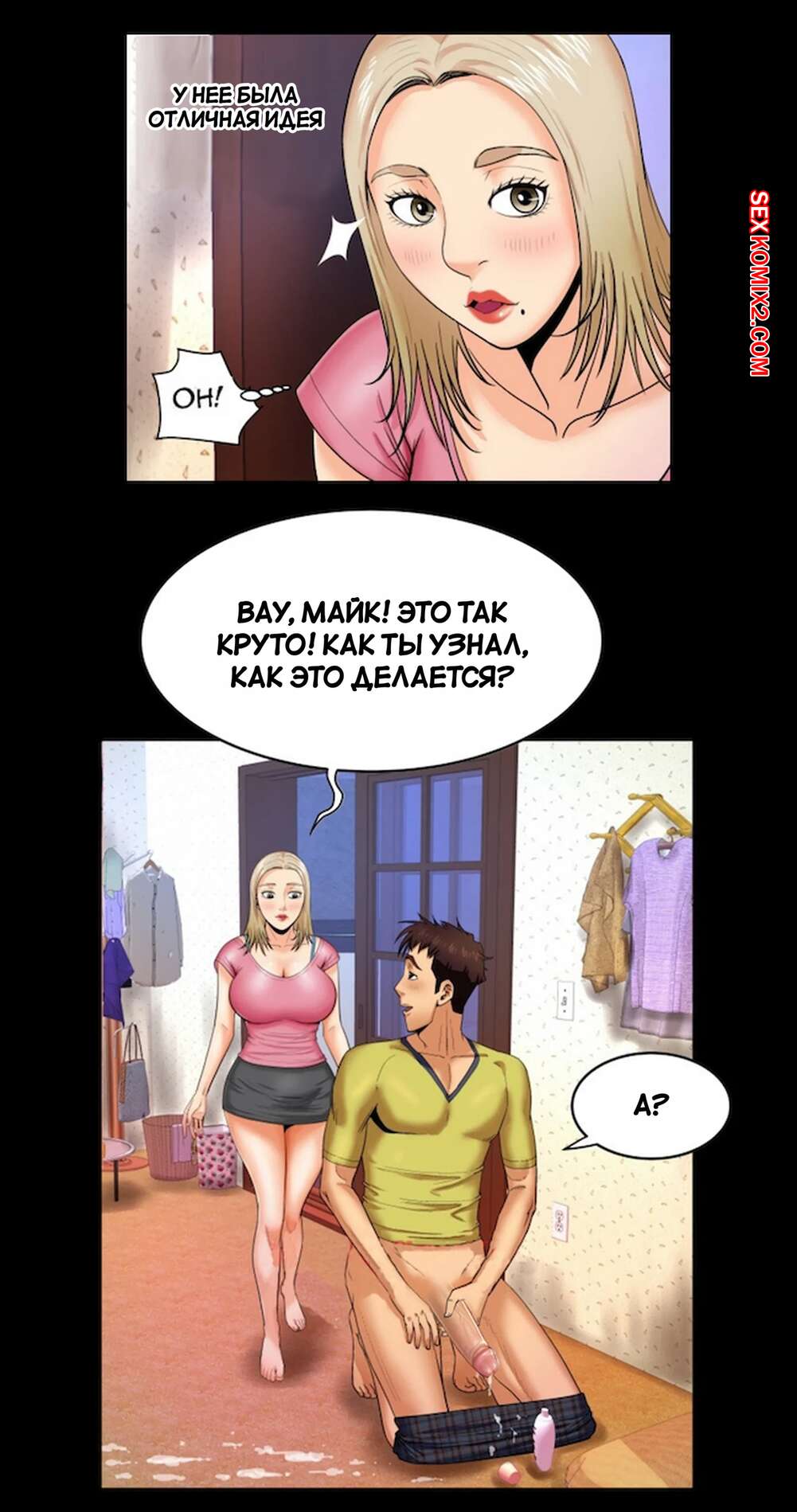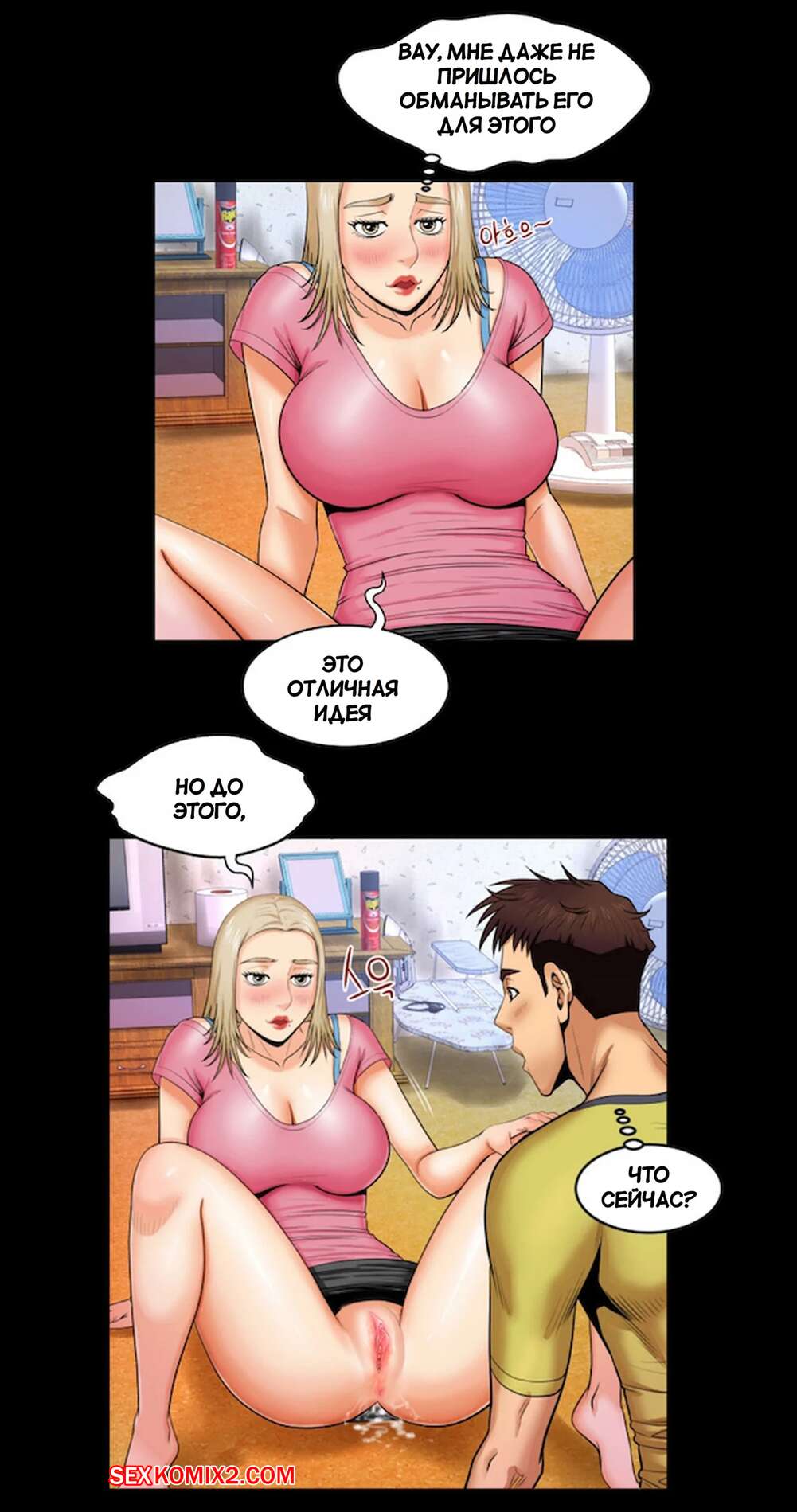Порно комикс Моя тетя. Без цензуры. Часть 8. My Aunt. Toomics Горячая блондинка возбудилась, увидев большой член парня. Красотка разделась и раздвинула ножки перед своим дружком, после чего дала ему себя выебать.