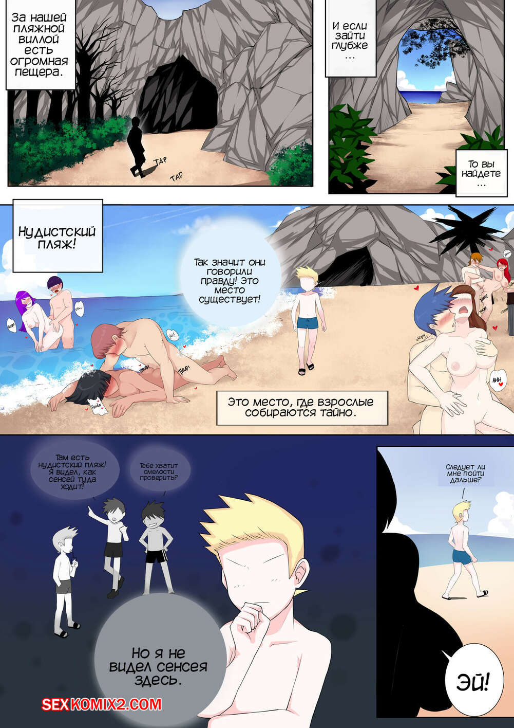 Порно комикс Шота охота Санае и Шион. Sanae and Shions Shota Hunting Молодой парень пробрался на нудистский пляж, где с ним решили повеселиться две сексуальные брюнетки. Они разделись и стали сосать хуй парня, после чего дали ему себя выебать.