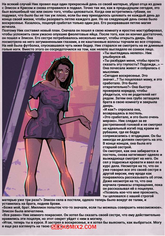 Порно комикс Головоломка. Часть 4. rawlyrawls Горячая брюнетка милфа продолжает ощущать влечение к своему сыну. Красотка пришла в комнату к парню и оседлала его, вызвав у парня стояк, но смогла вовремя остановиться.