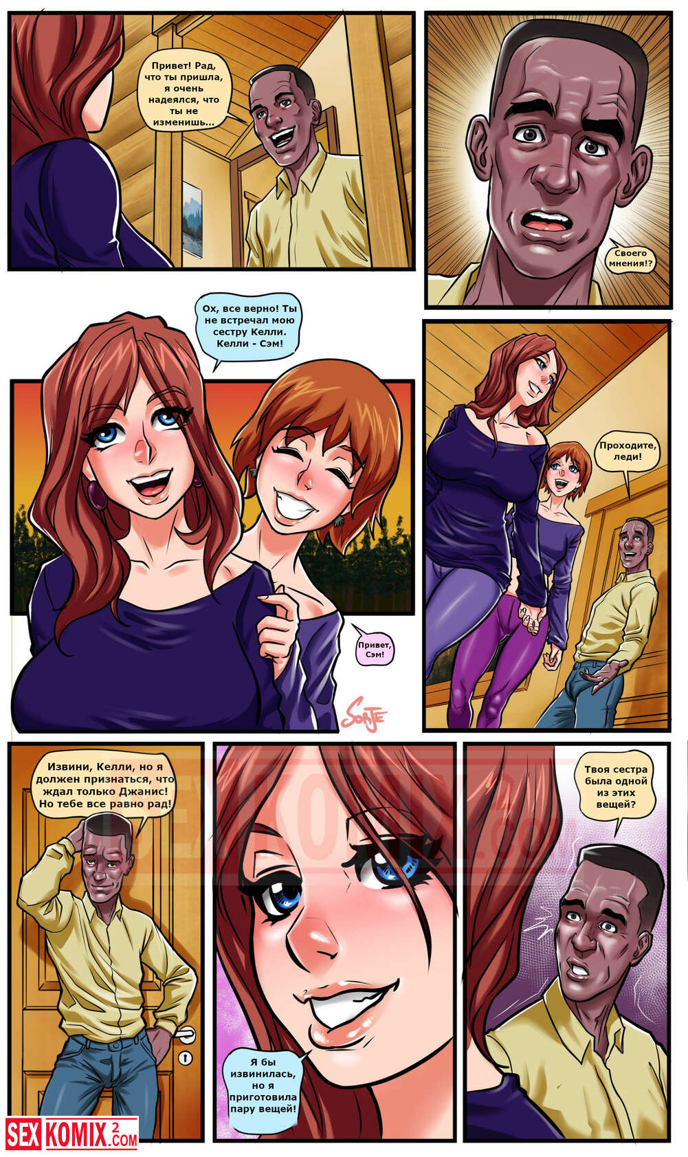 Порно комикс Лихорадка. Дженис. Доктор пригласил Джанис в свой загородный дом, но она приехала со своей сестрой, что вместе насладиться его черным членом.
