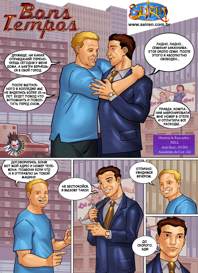 Порно комикс «Хорошие времена или 15 лет спустя». В этом эро комиксе вы увидите встречу двух старых друзей, и один предложил другому переночевать у него дома. Второй друг согласился и позже узнал, что у него есть жена и она очень сексуальная девушка. Как оказалось жена очень развратна, и ночью она отдалась старому другу своего мужа.