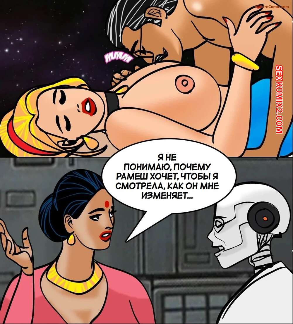Порно комикс Сны Веламмы. Часть 17. Velamma Dreams. Kirtu Горячая милфа Веламма вновь окунулась в свою фантазию и теперь она находится рядом с темнокожим парнем. Девушка разделась и отсосала большой хуй своего нового друга, после чего дала ему себя хорошенько выебать.