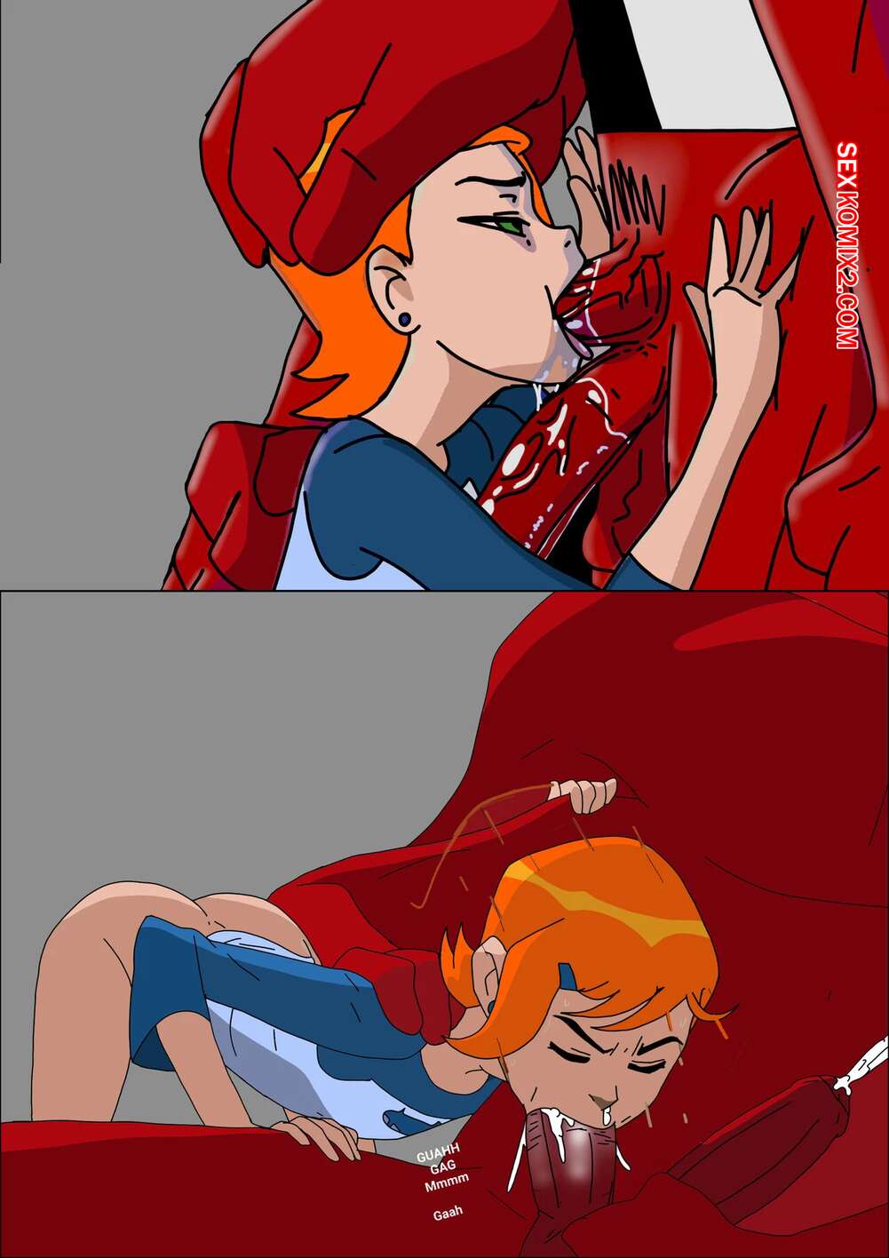 Порно комикс Ben 10. Gwen Tennyson, Anal Training. Sunnie Горячая рыжая красотка Гвен решила устроить анальные тренировки. Девушка раздевается перед своим дедушкой и соблазняет его, после чего дает ему себя хорошенько выебать.