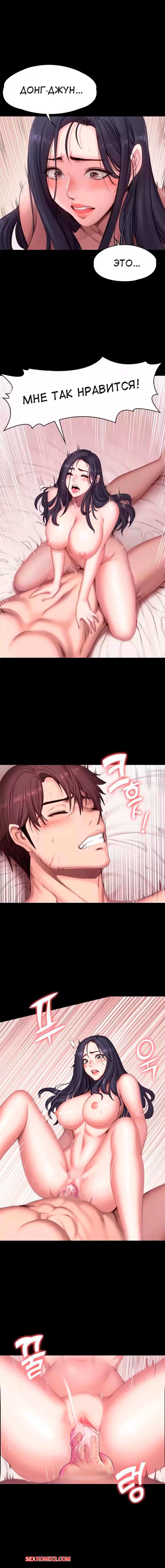 Порно комикс Фитнес. Без цензуры. Часть 73 и 74 и 75. Fitness Горячая сисястая брюнетка продолжает наслаждаться большим членом своего дружка. Красотка оседлала большой хуй парня и стала на нем дико скакать, получая огромное удовольствие.