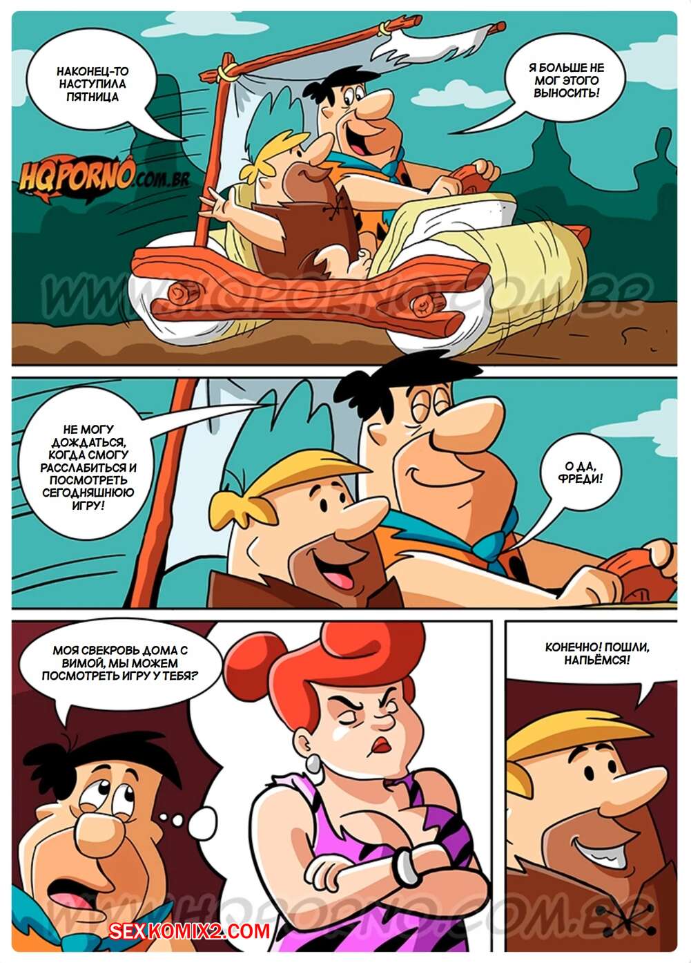 Порно комикс Флинтстоуны. Часть 5. Os Fuckinstones. HQPorno Фред был очень возбужден и решил повеселиться с женой своего друга. Он раздел красотку и стал ласкать ее сиськи, после чего хорошенько выебал пизденку милфы.