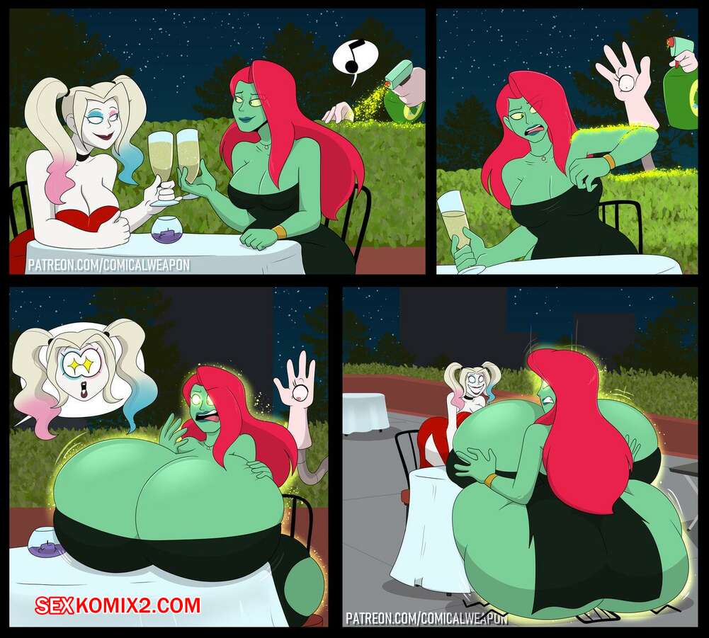 Порно комикс DC Comics. Свидание. Харли и Айви. ComicalWeapon Харли и Айви отправились на свидание в ресторан, где ктото попрыскал на них волшебной смесью. Тела красоток стали увеличиться и одежда порвалась на них.