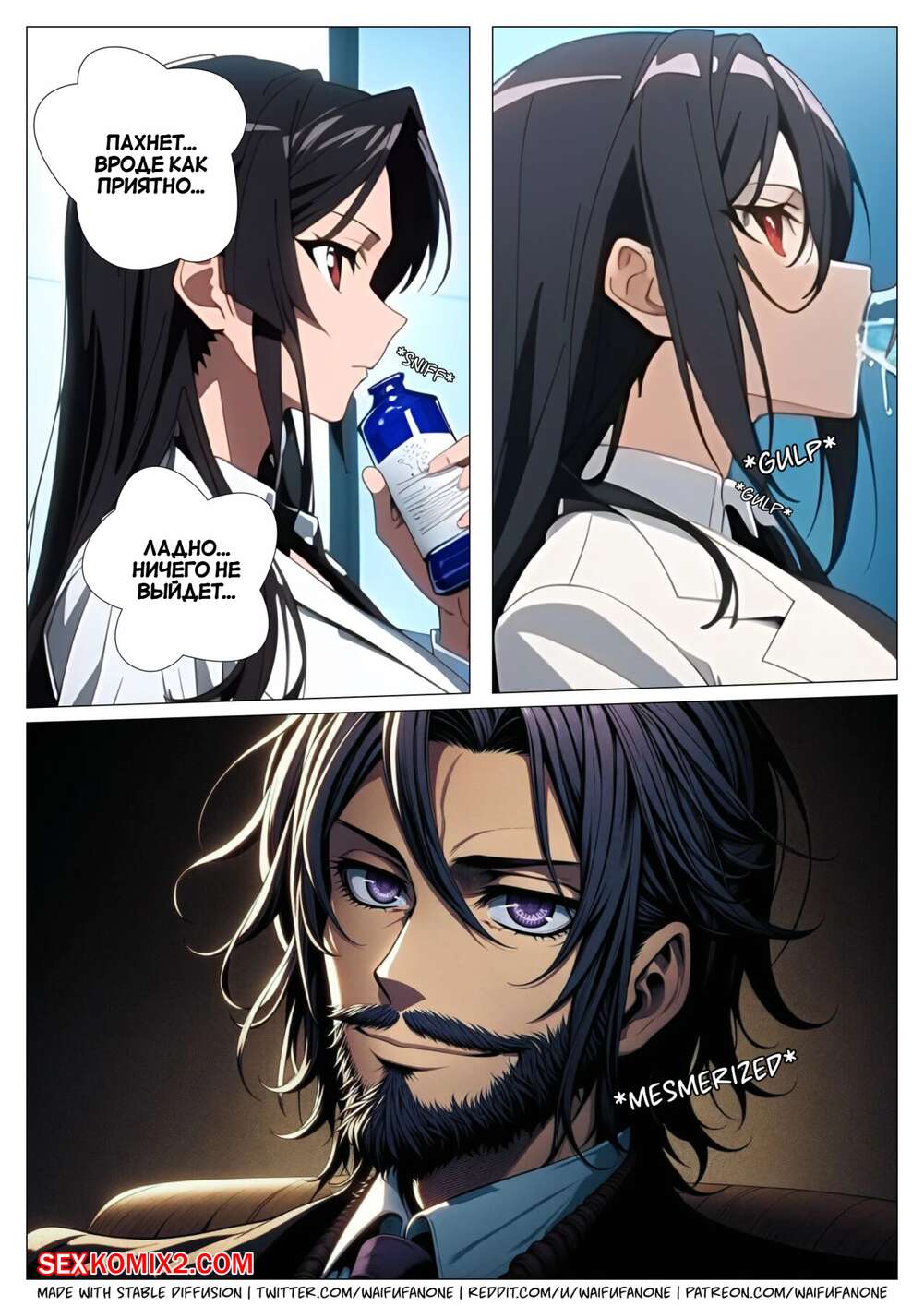 Порно комикс Моя сестра больше. Часть 1. My Sister is Bigger. AI Generated. Мужчина дал горячей брюнетке понюхать афродизиак и девушка быстро возбудилась. Она скинула с себя одежду, после чего стала ласкать свою пизденку, получая огромное удовольствие.