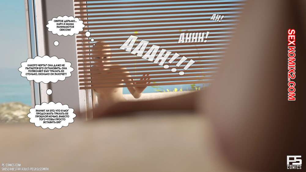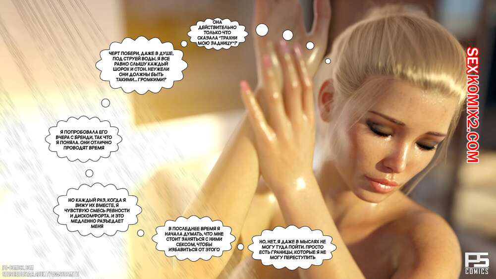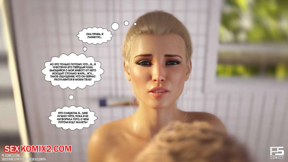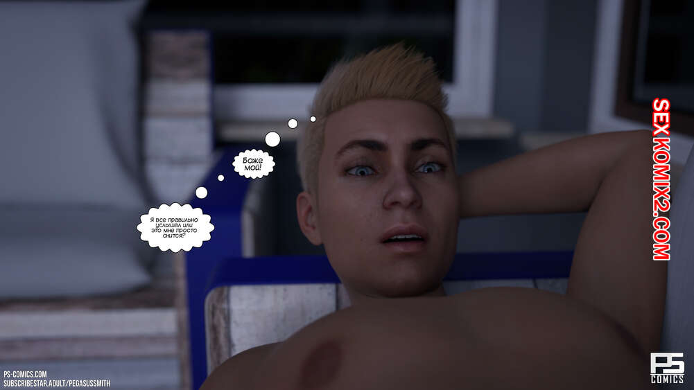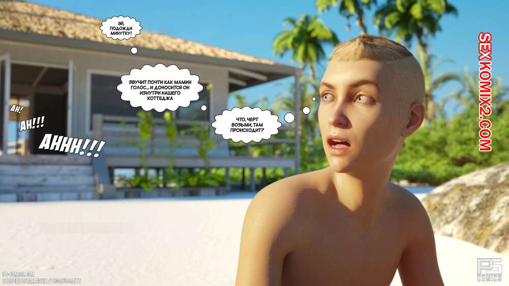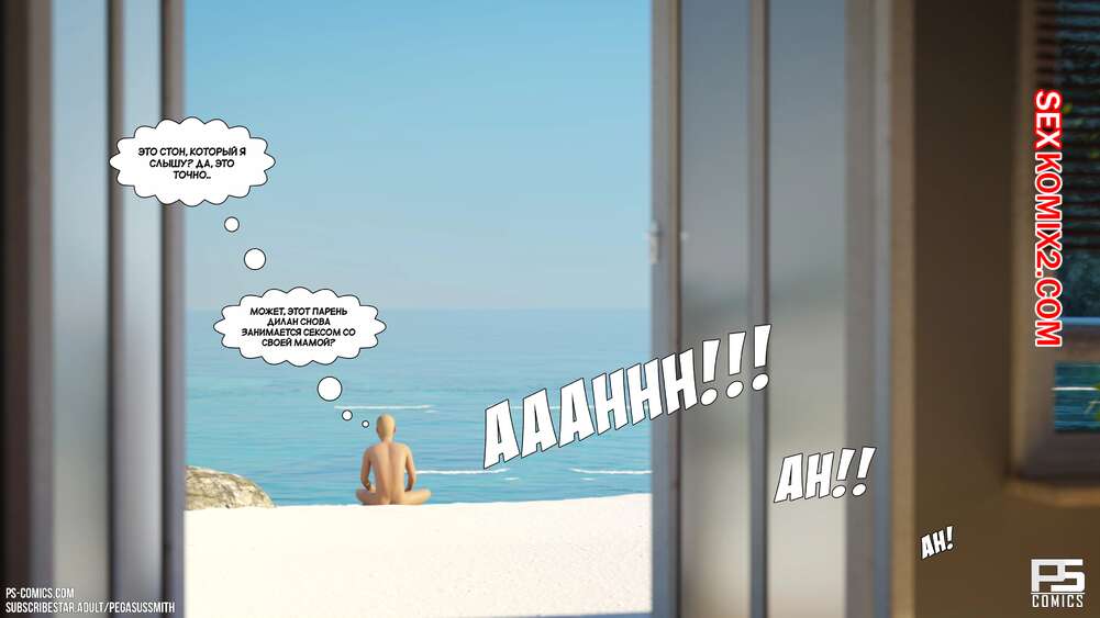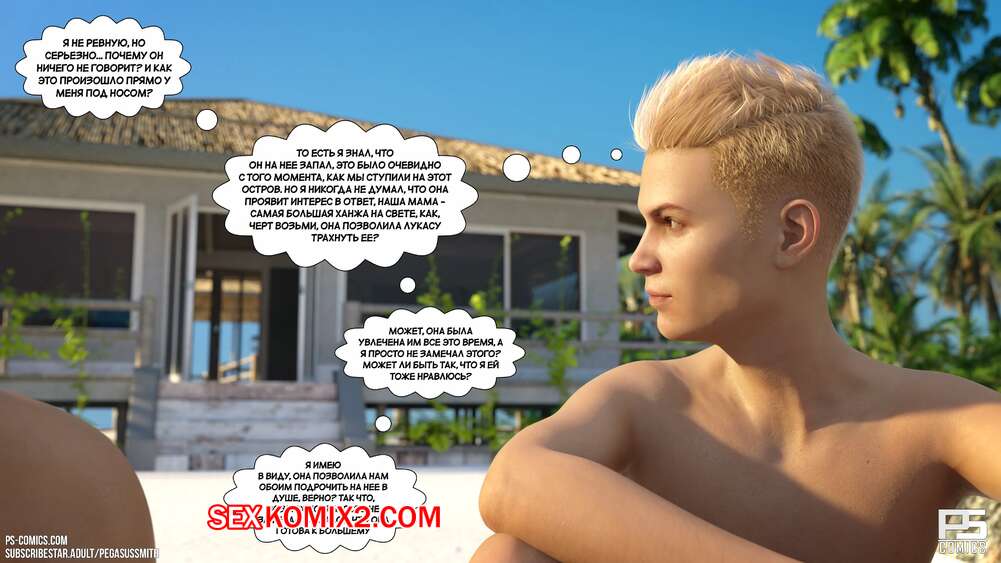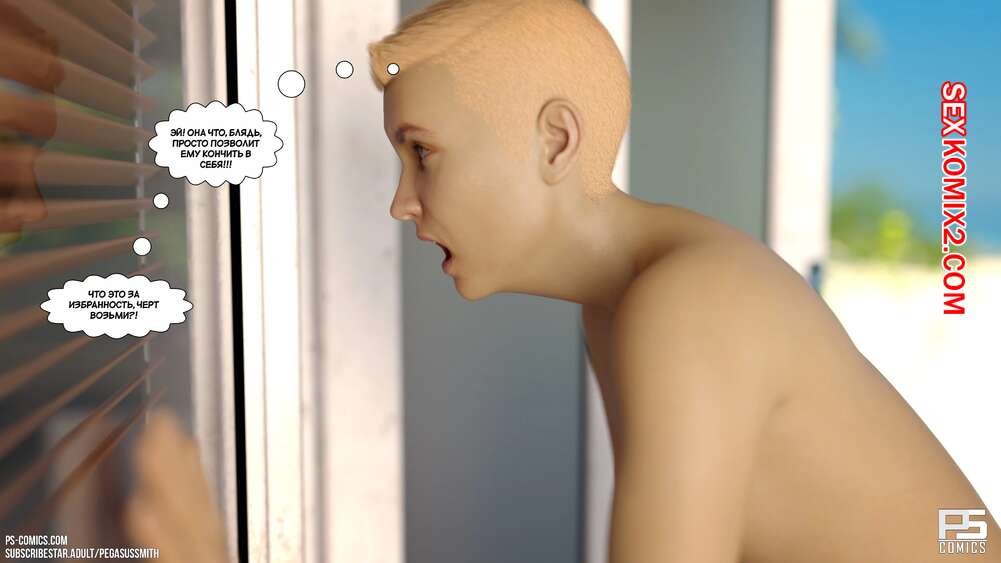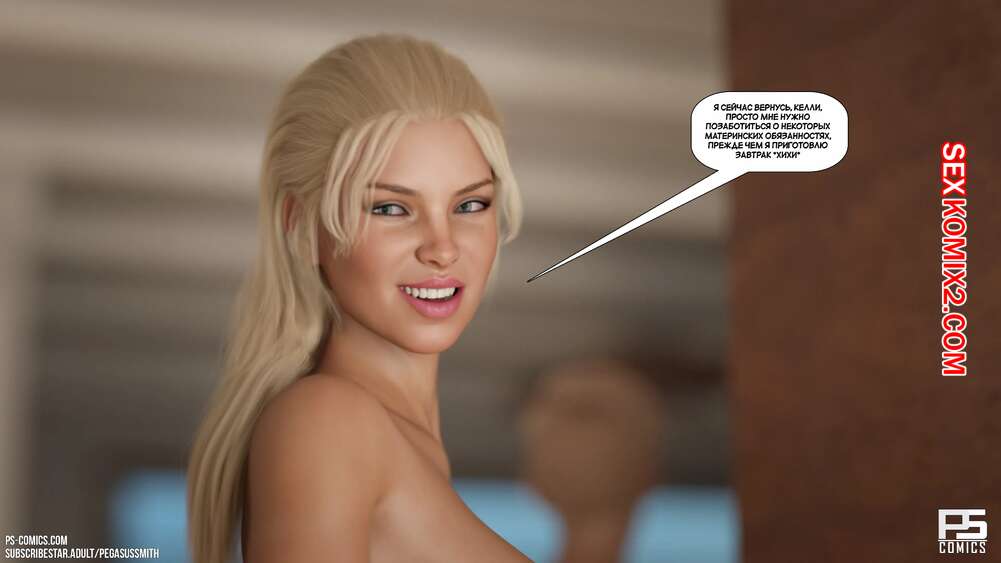 Порно комикс Нагишом. Нудистский курорт. Часть 20. Au Naturel. Pegasus Smith Горячая блондинка милфа пошла ночью проверить своих сыновей и затсала Карла спящим со стояком. Она стала наблюдать вблизи за твердым членом сына, пока Лукас сзади любовался пизденкой мамы.
