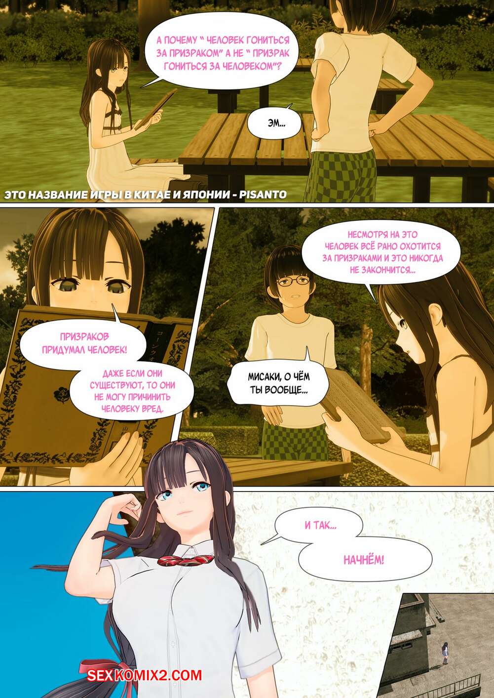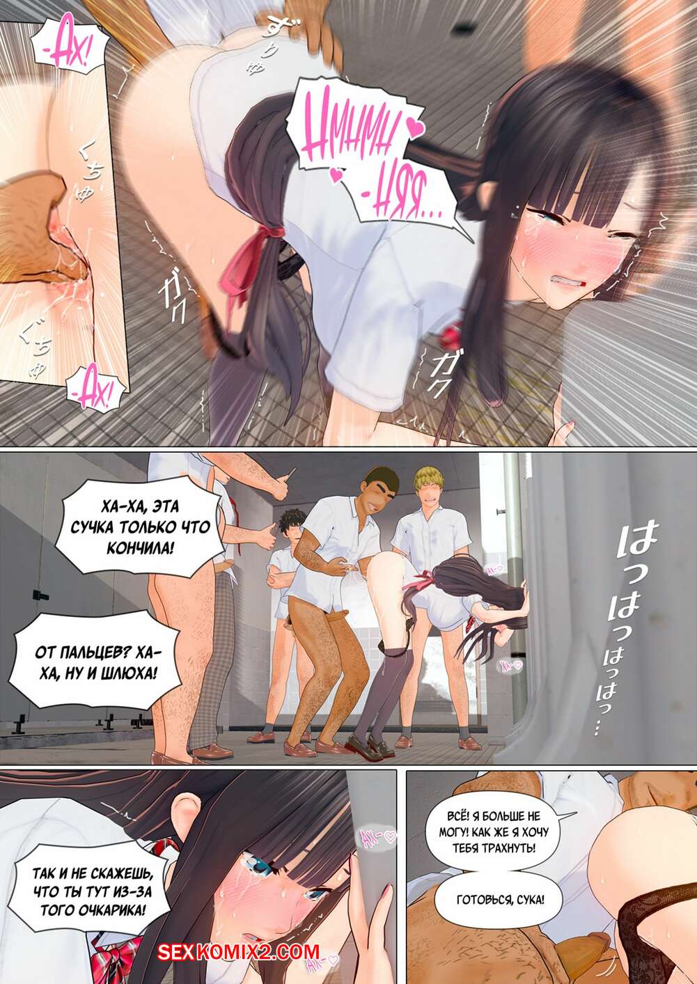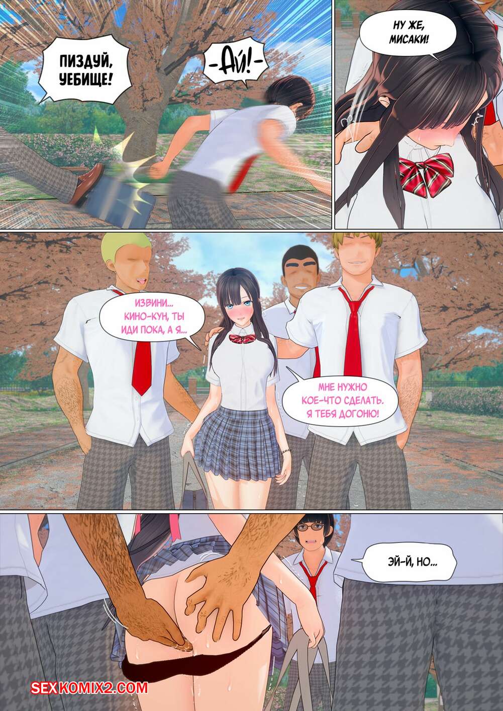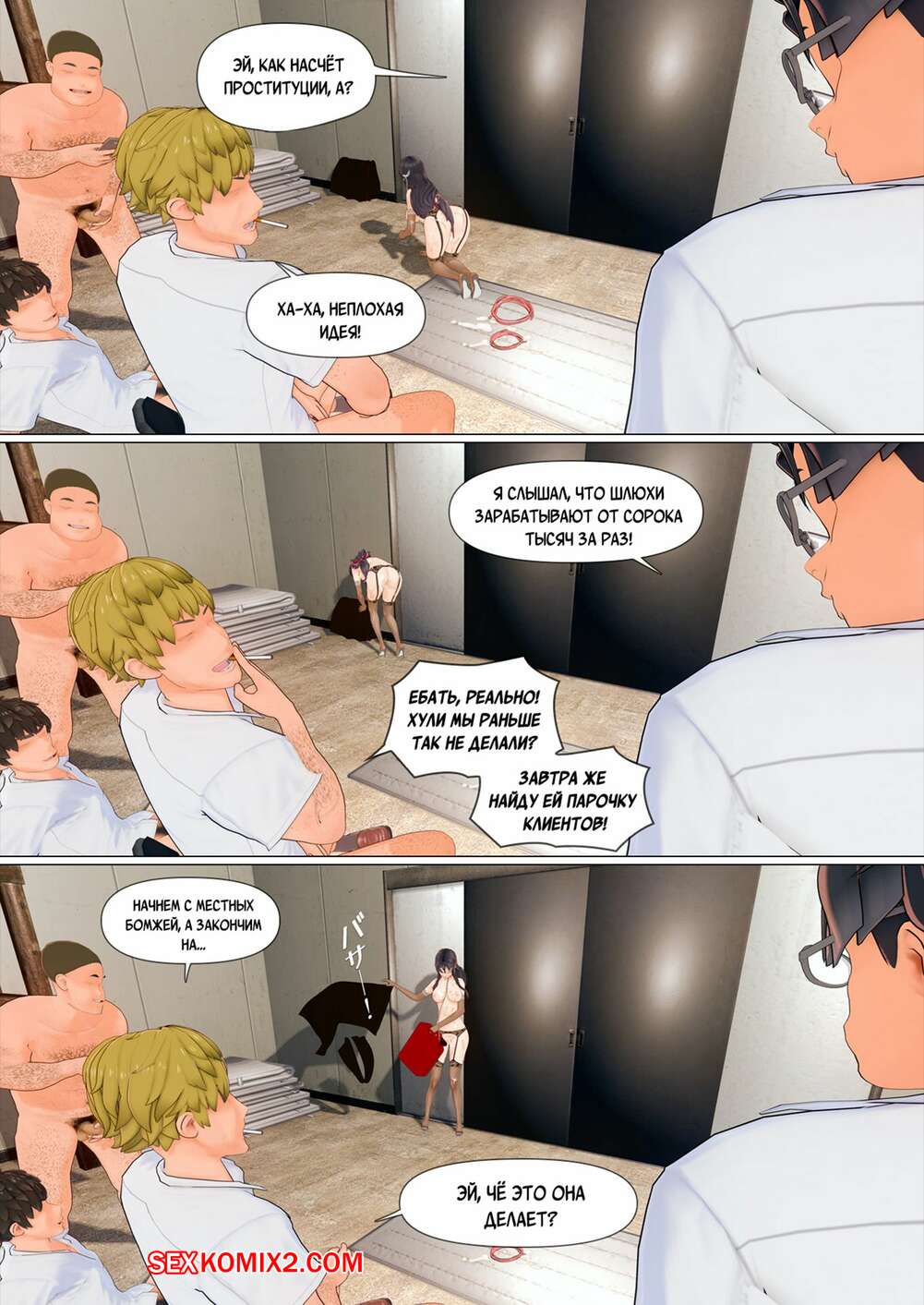 Порно комикс Обещание. Часть 4. Pisanto Парни пригласили горячую брюнетку на встречу и решили с ней повеселиться. Они раздели девушку и дали ей отсосать свои большие хуи, после чего выебали ее пизденку.