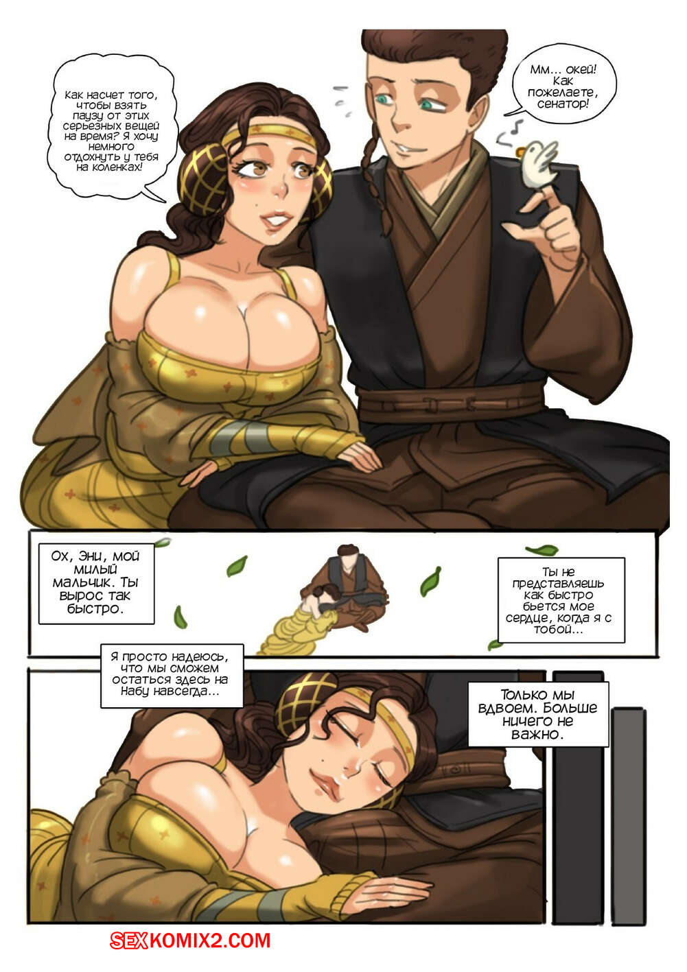 Порно комикс Звездные войны. Путешествие Падавана. Падме. Padawan Journey. Padme. Tora Tora Падме решила прилечь отдохнуть на коленях у Энакина. Парня это так сильно возбудило, что он не смог себя контроливать. Падаван трахнул ротик своей любимой девушки, получив огромное удовольствие.