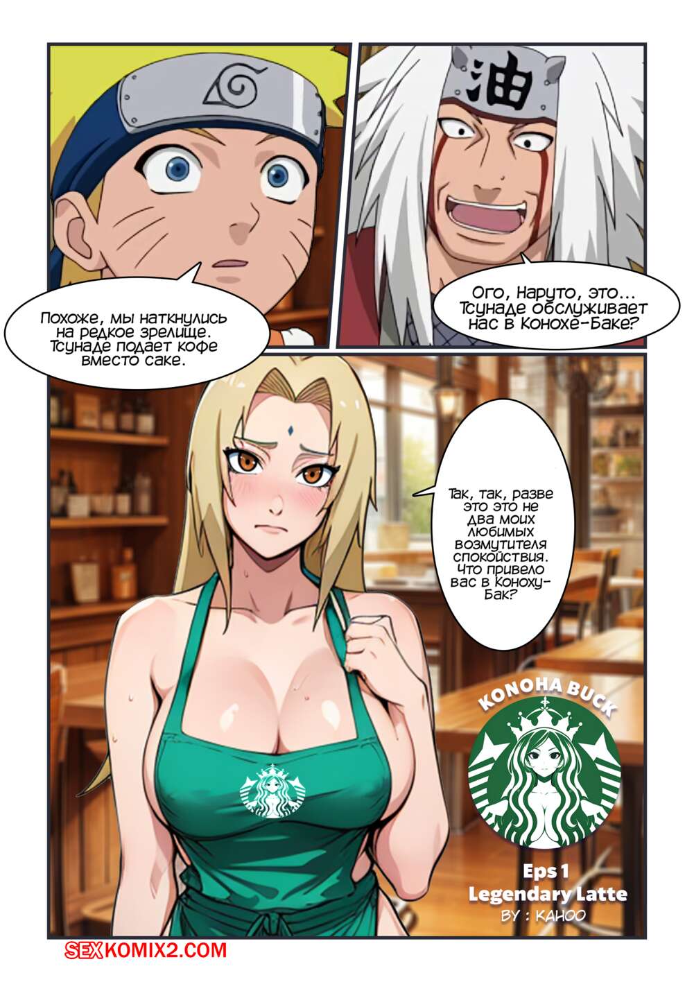 Порно комикс Наруто. Легендарный латте. Legendary Latte. Kahoo Наруто и Джирайа пришли в кофейню, где они встретили Тсунаде, которая решила приготовить им латте по особому рецепту. Девушка стала ласкать свои сиськи, вырабатывая из них молочко для кофе.