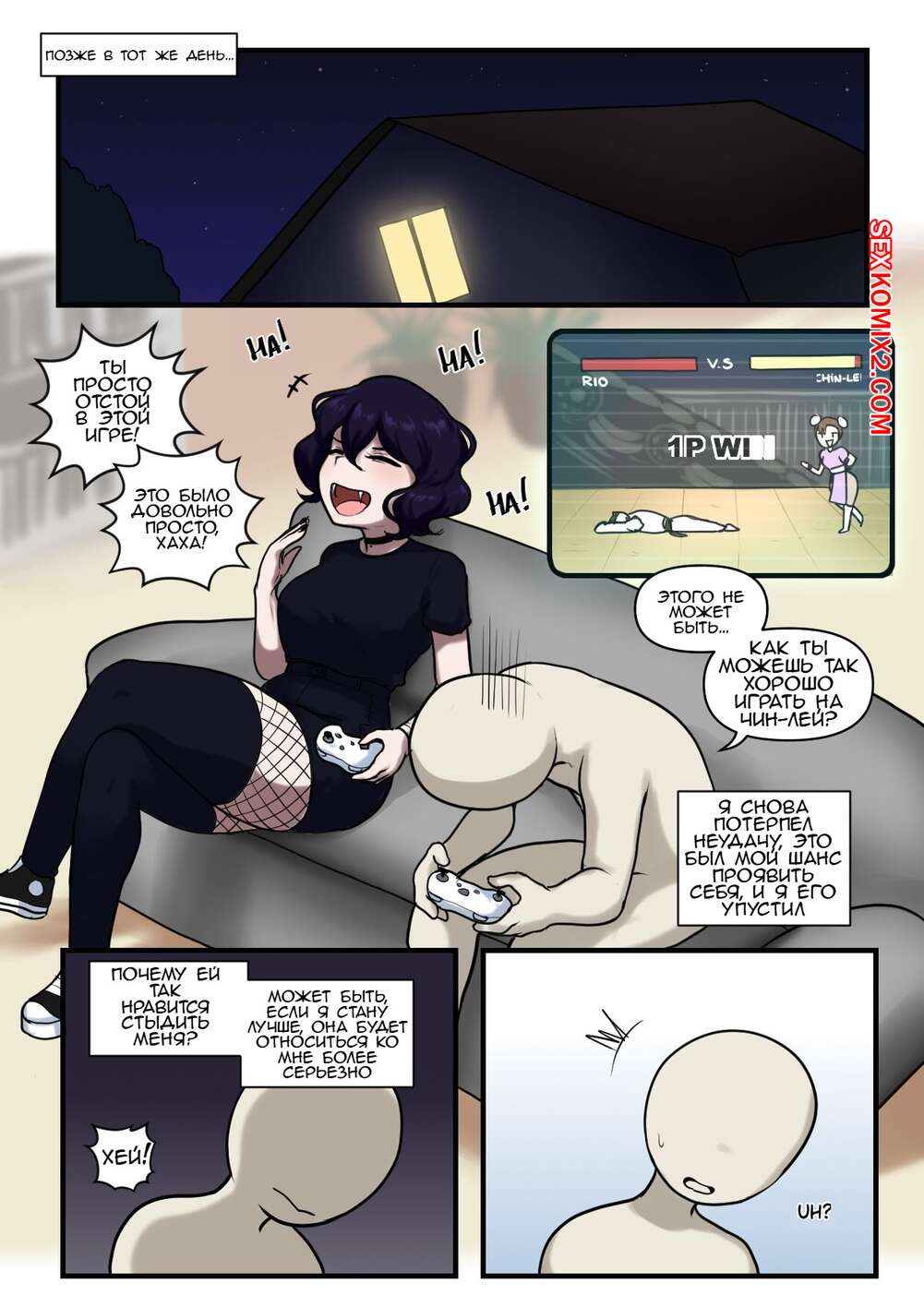 Порно комикс Свидание неудачника. Саманта. Dakosito Парень играл в приставку со своей сексуальной подругой и проиграл, но девушка решила его порадовать. Красотка разделась и отсосала большой хуй парня, после чего дала ему кончить себе в ротик.