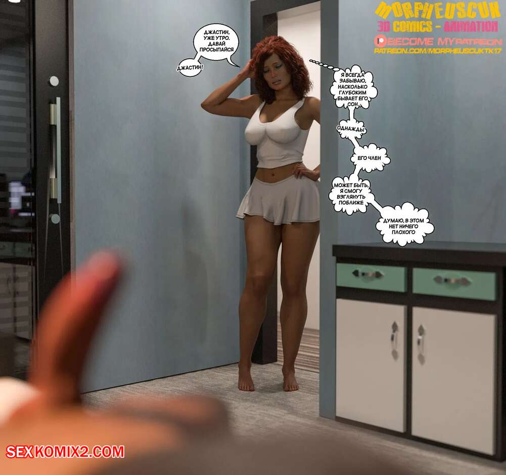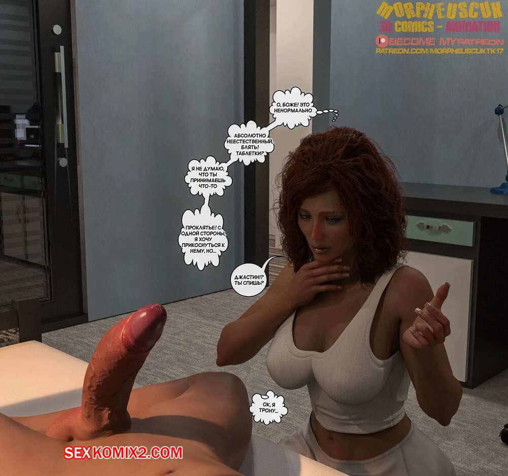 Порно комикс Соседство. Часть 15. Neighborhood. Morpheuscuk Аманда проходила мимо комнаты спящего Джастина и застала парня со стояком. Большой член очень возбудил красотку, поэтому она стала дрочить хуй парня и даже попробовала его на вкус.