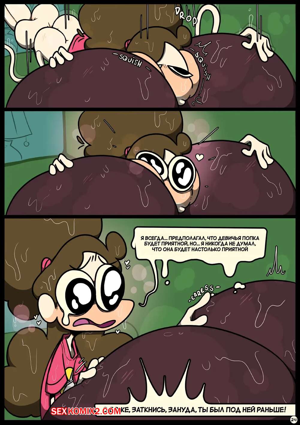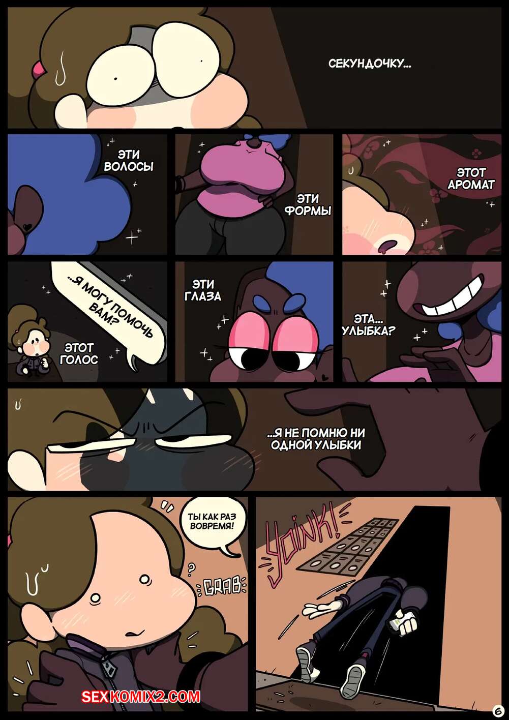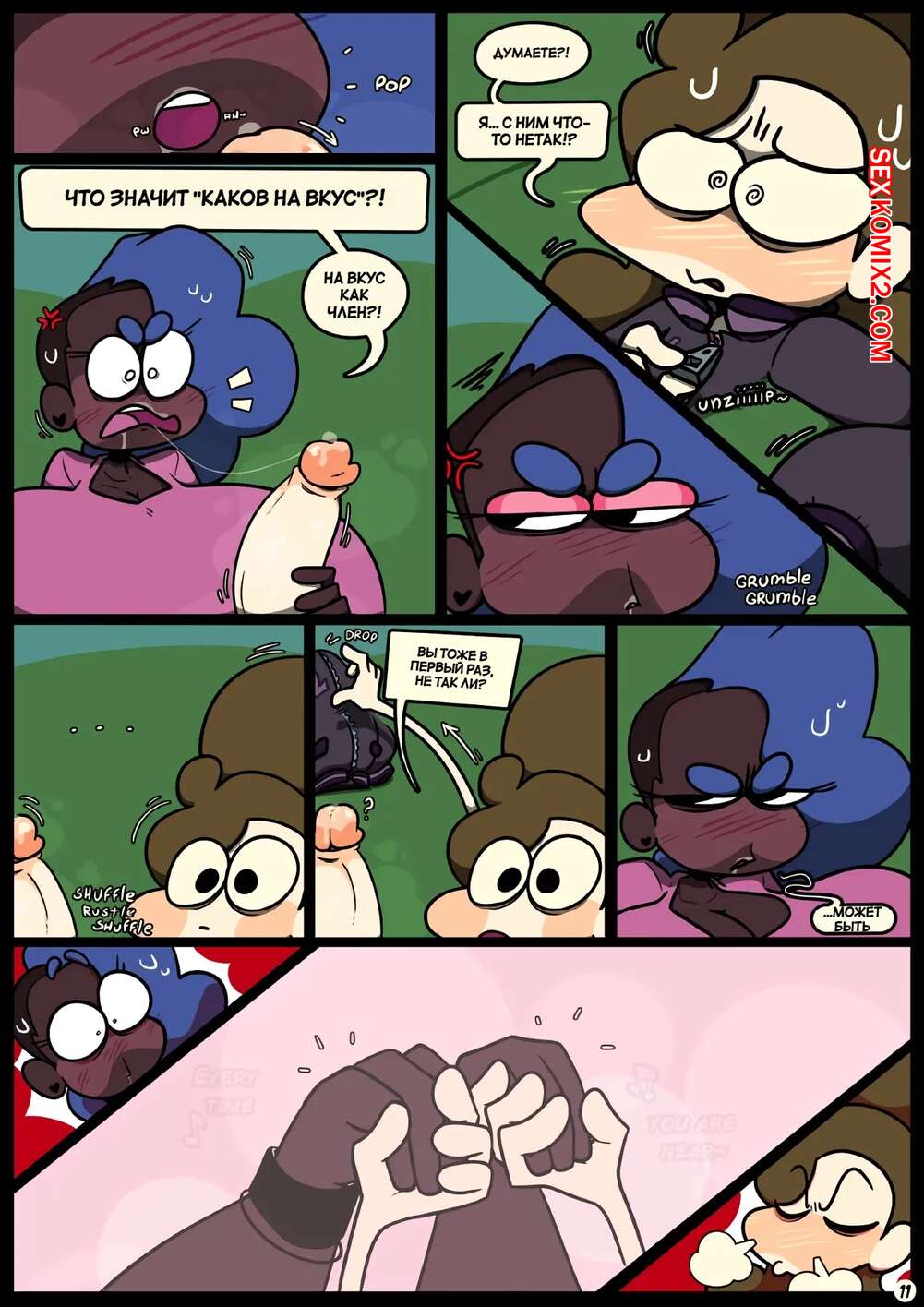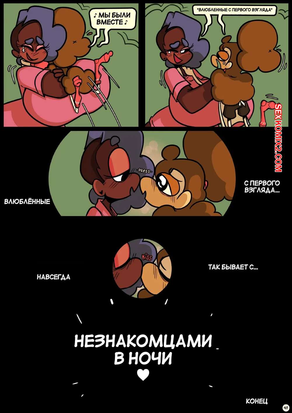 Порно комикс Фарс вместе с незнакомцами в ночи. Slapstick together strangers in the night Темнокожая брюнетка с огромными формами была очень возбуждена и хотела трахаться. Она уложила девушку с большим хуем на диван и стала скакать на ее хуй, получая огромное удовольствие.