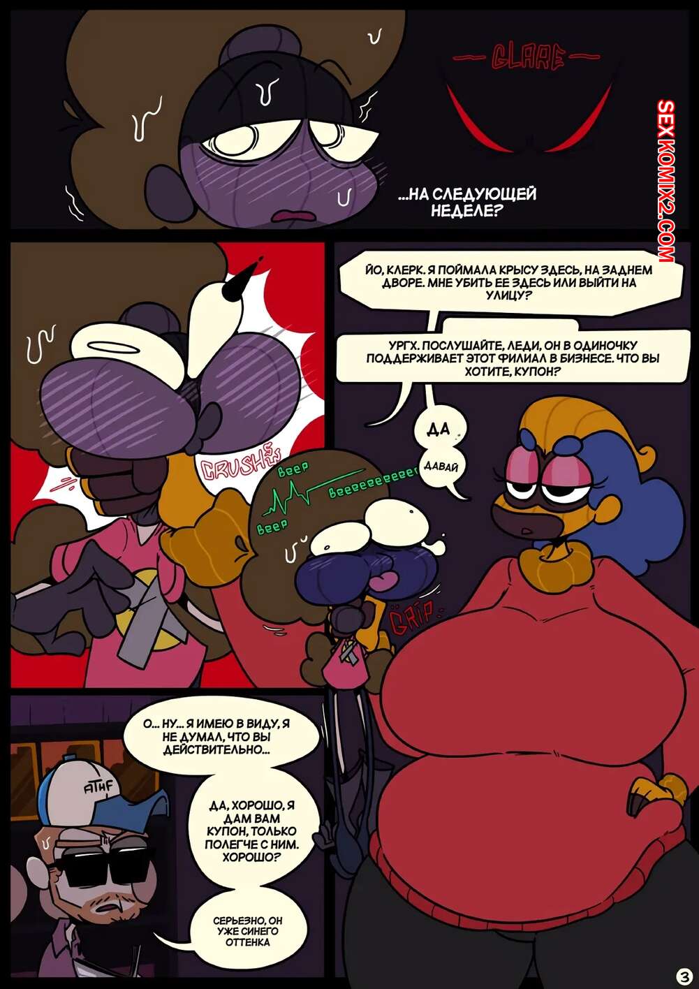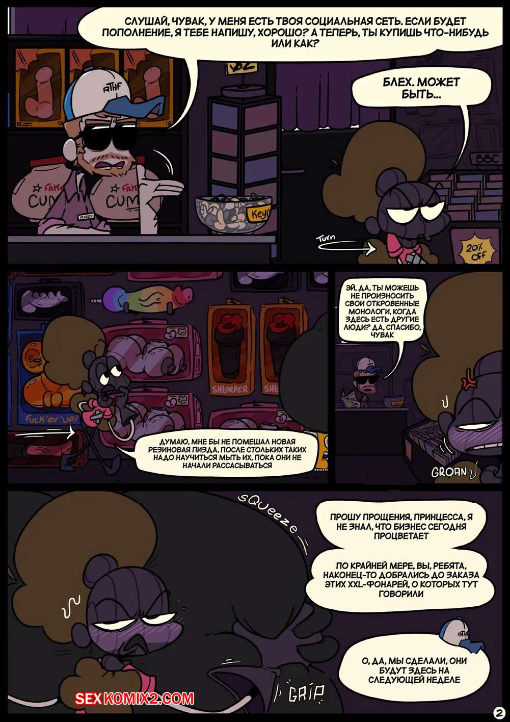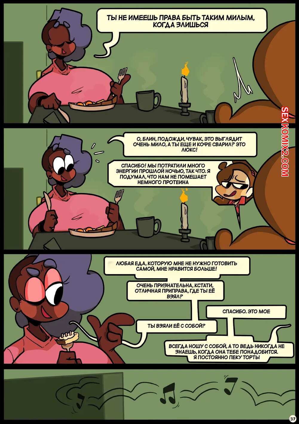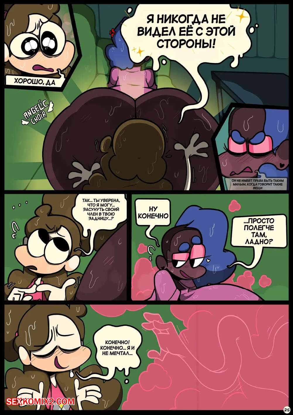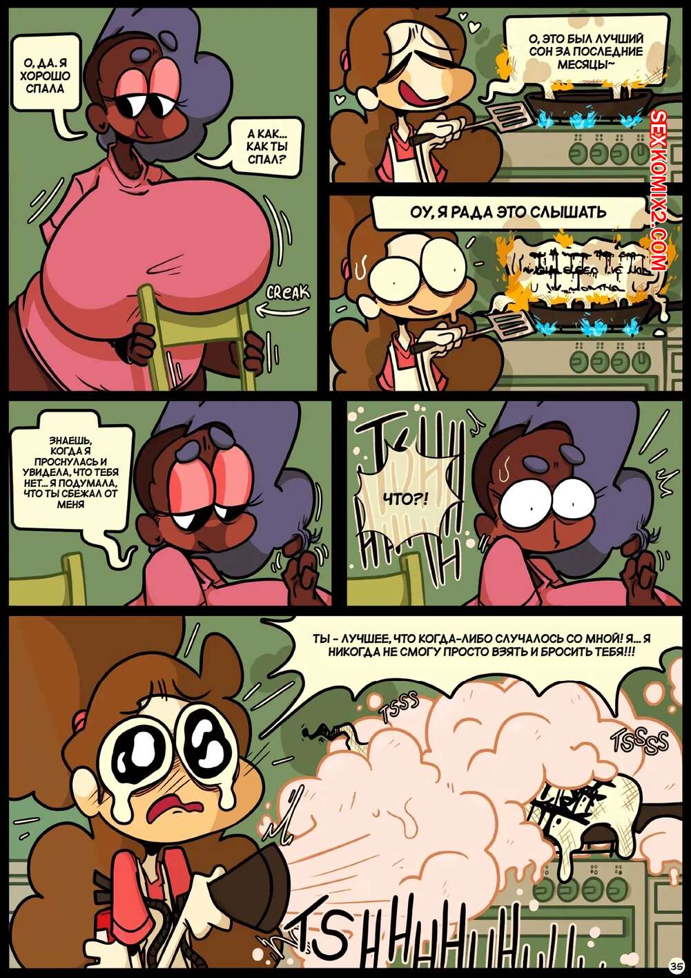 Порно комикс Фарс вместе с незнакомцами в ночи. Slapstick together strangers in the night Темнокожая брюнетка с огромными формами была очень возбуждена и хотела трахаться. Она уложила девушку с большим хуем на диван и стала скакать на ее хуй, получая огромное удовольствие.