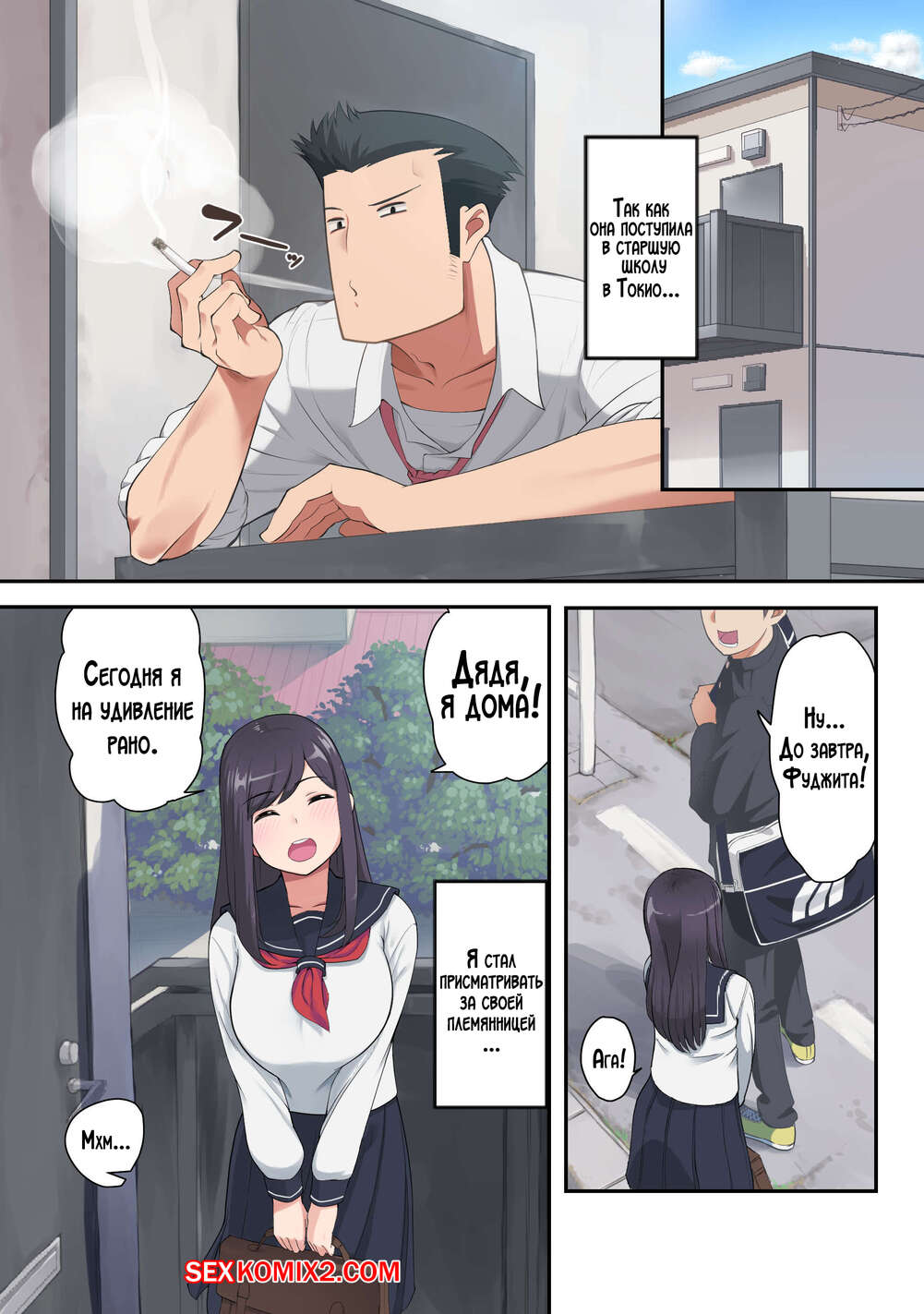 Порно комикс Не стоит тратить свою юность на старика. Saru No Koshikake Горячая брюнетка переехала жить к своему дяде, где у них начались особые отношения. Девушка раздевается и соблазняет дядю шикарным телом, после чего дает ему себя выебать.