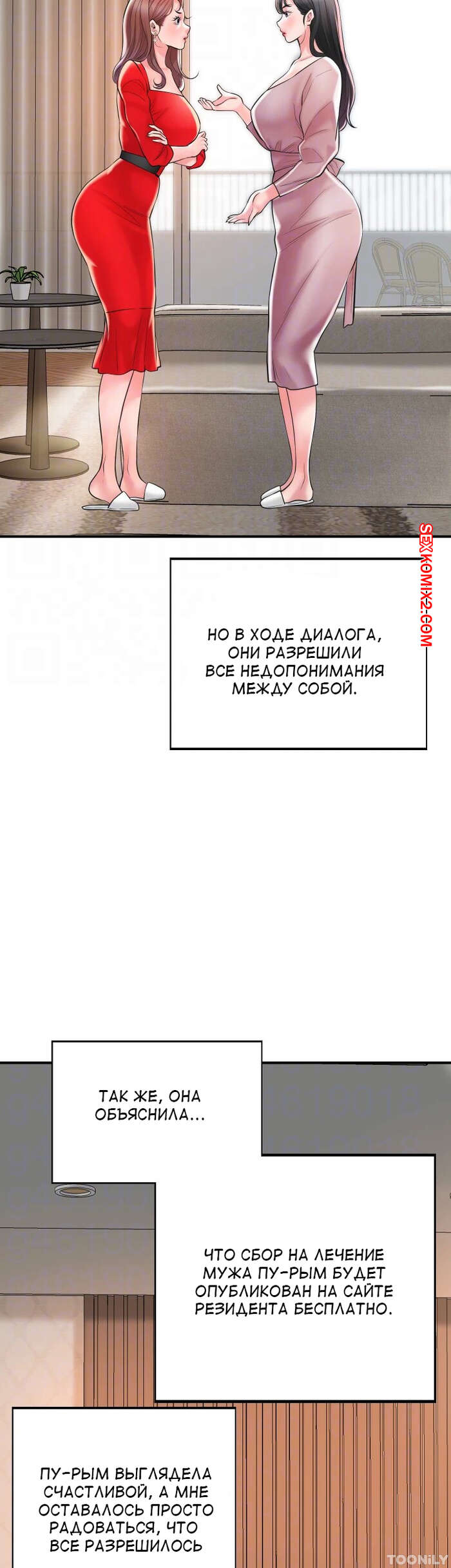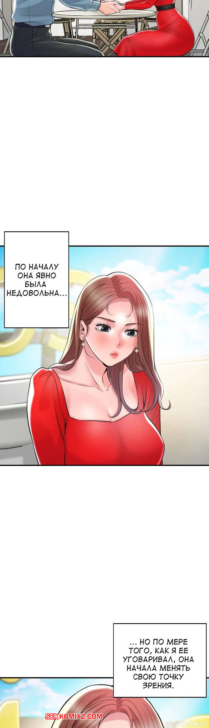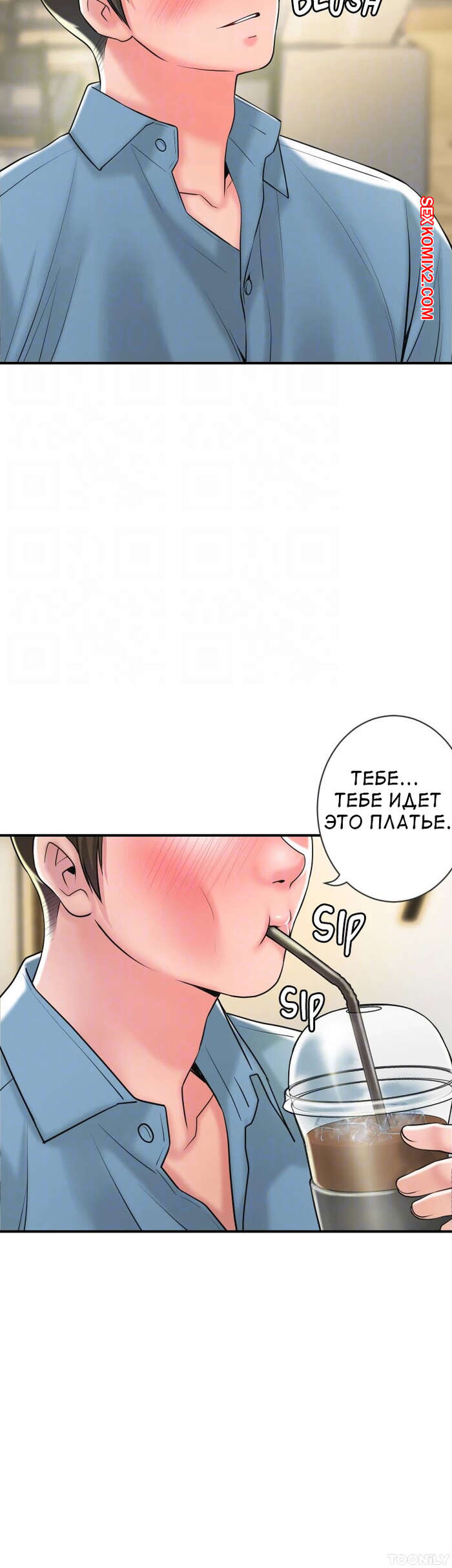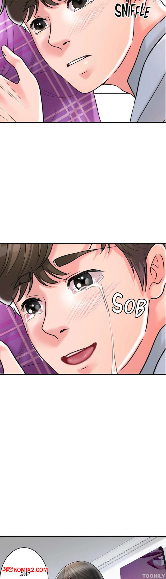 Порно комикс Новый город. Часть 102. New town Две горячие красотки пригласили к себе домой молодого парня. Они поговорили и гость собирался уходить домой, но одна из девушек его остановила и стала ласкать его член.