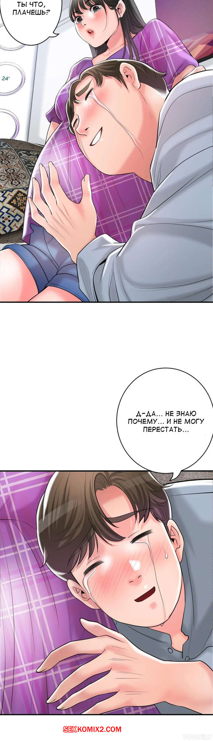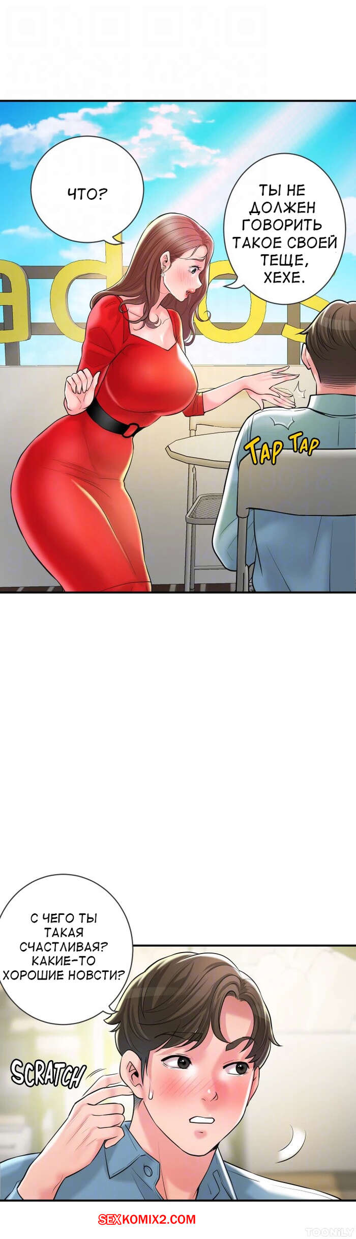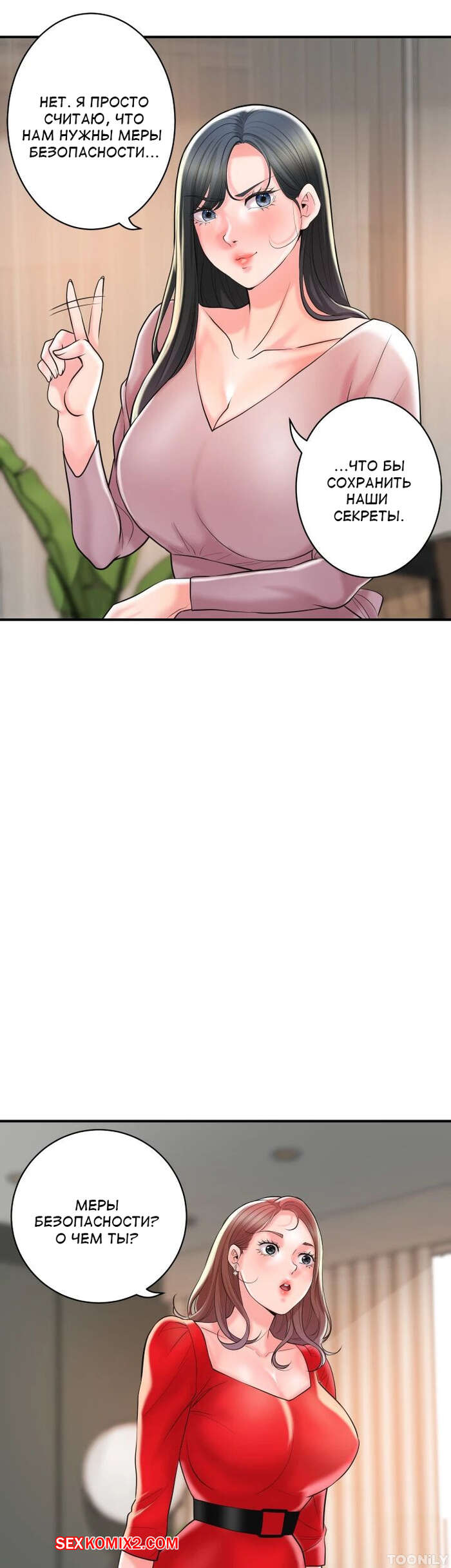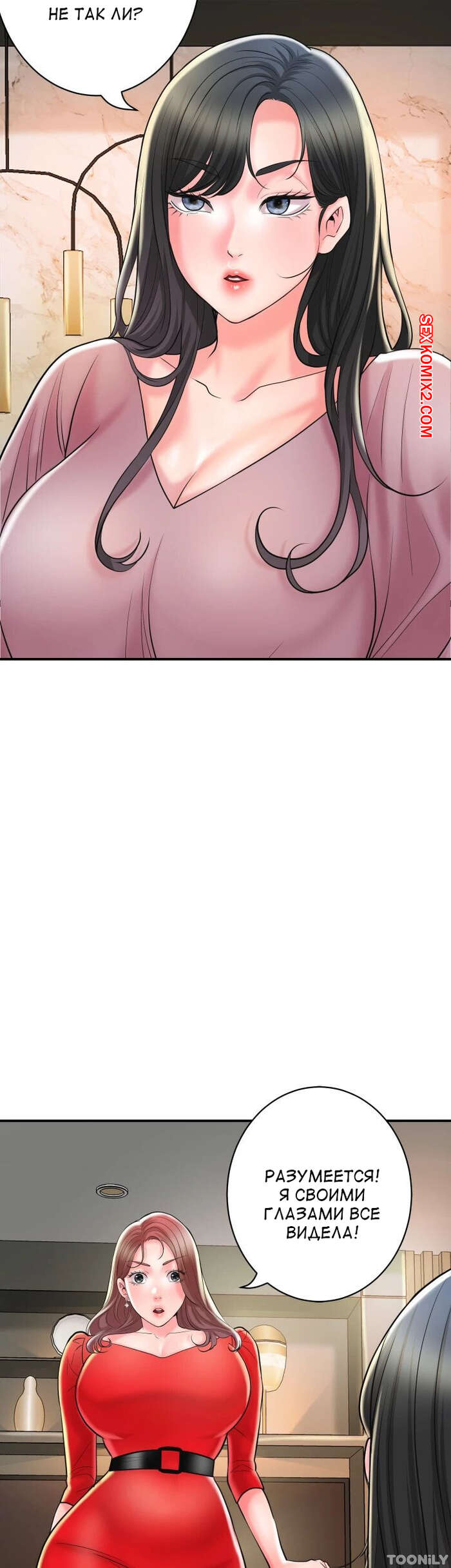 Порно комикс Новый город. Часть 102. New town Две горячие красотки пригласили к себе домой молодого парня. Они поговорили и гость собирался уходить домой, но одна из девушек его остановила и стала ласкать его член.