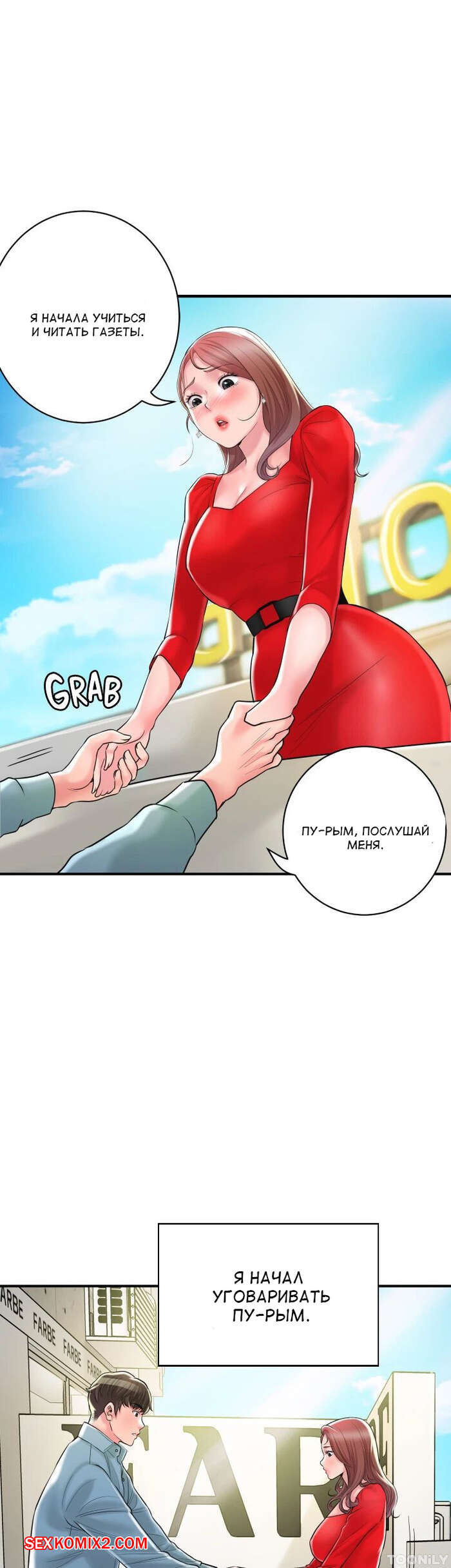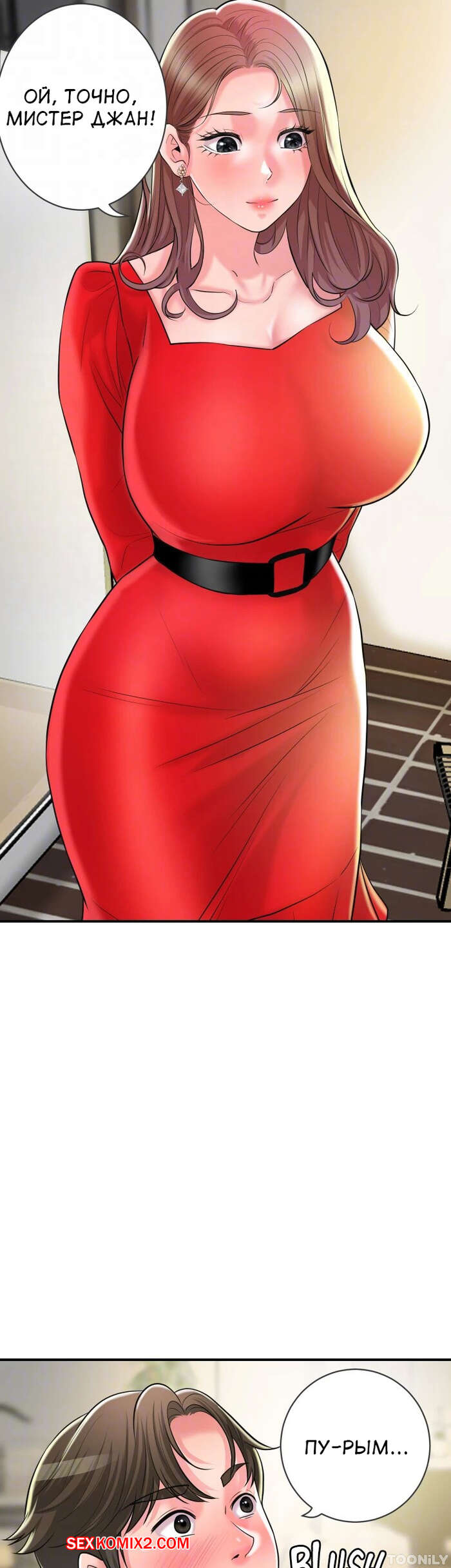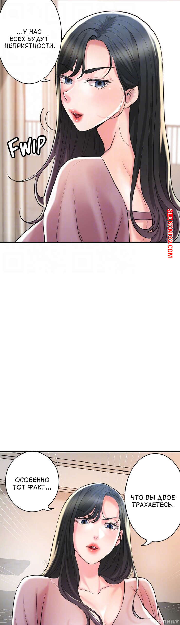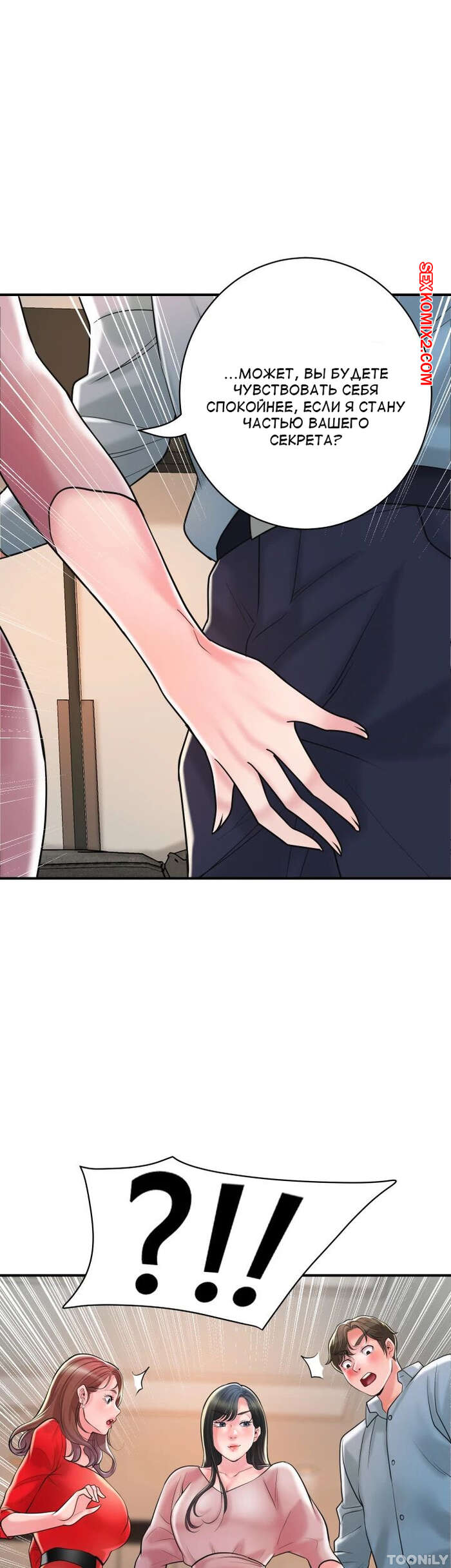 Порно комикс Новый город. Часть 102. New town Две горячие красотки пригласили к себе домой молодого парня. Они поговорили и гость собирался уходить домой, но одна из девушек его остановила и стала ласкать его член.