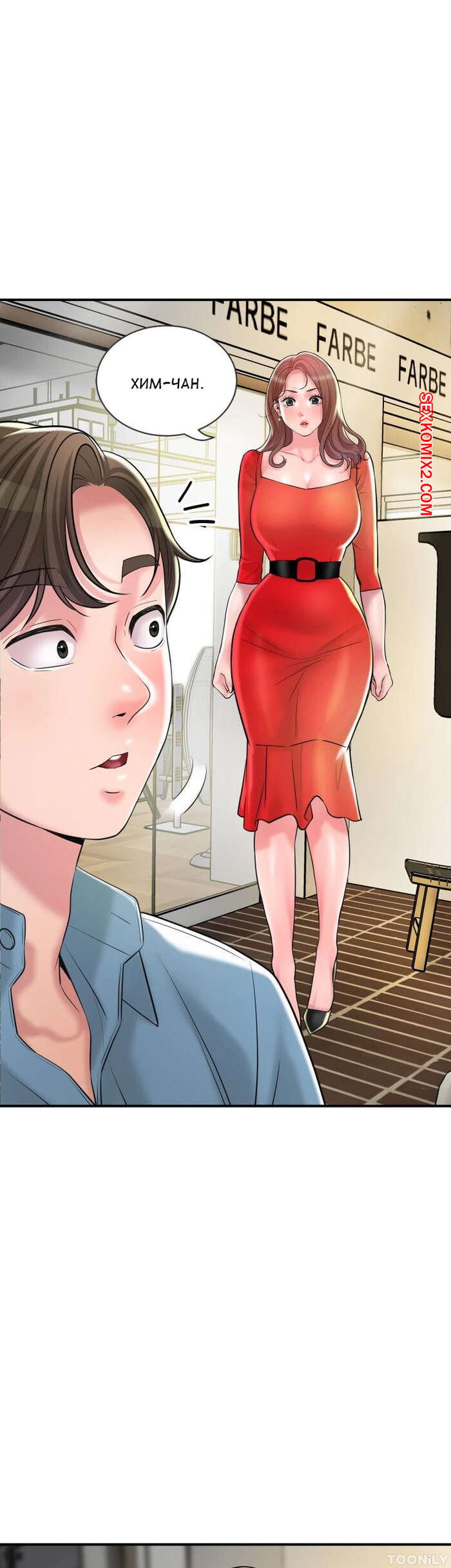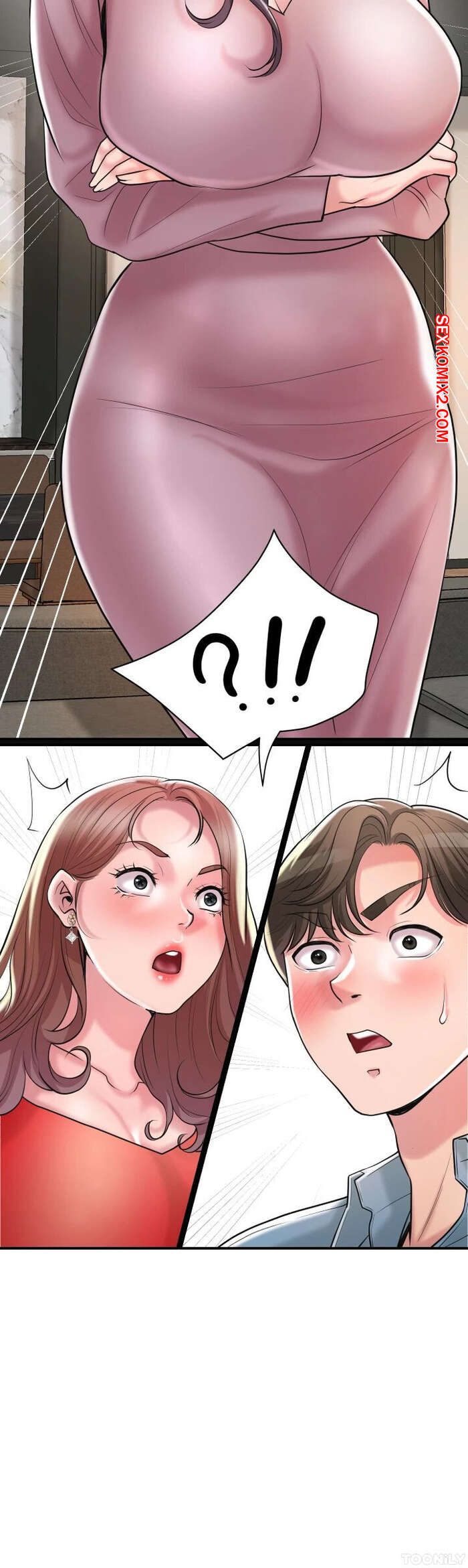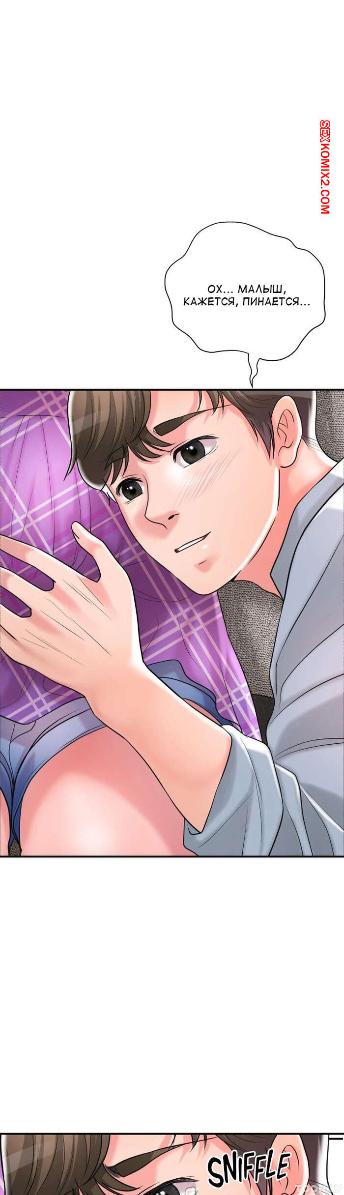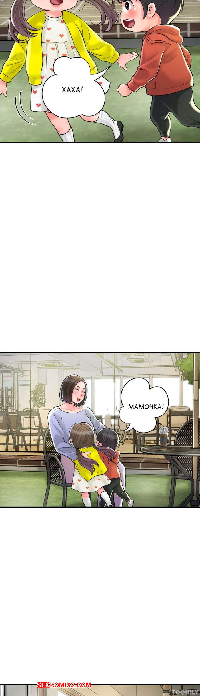 Порно комикс Новый город. Часть 102. New town Две горячие красотки пригласили к себе домой молодого парня. Они поговорили и гость собирался уходить домой, но одна из девушек его остановила и стала ласкать его член.