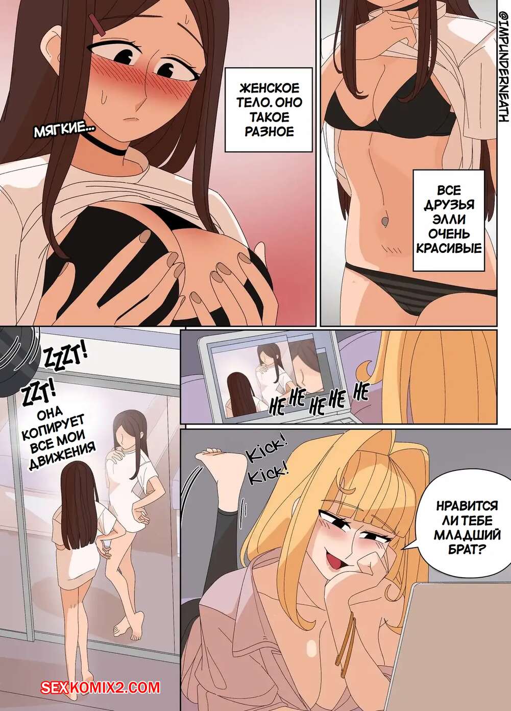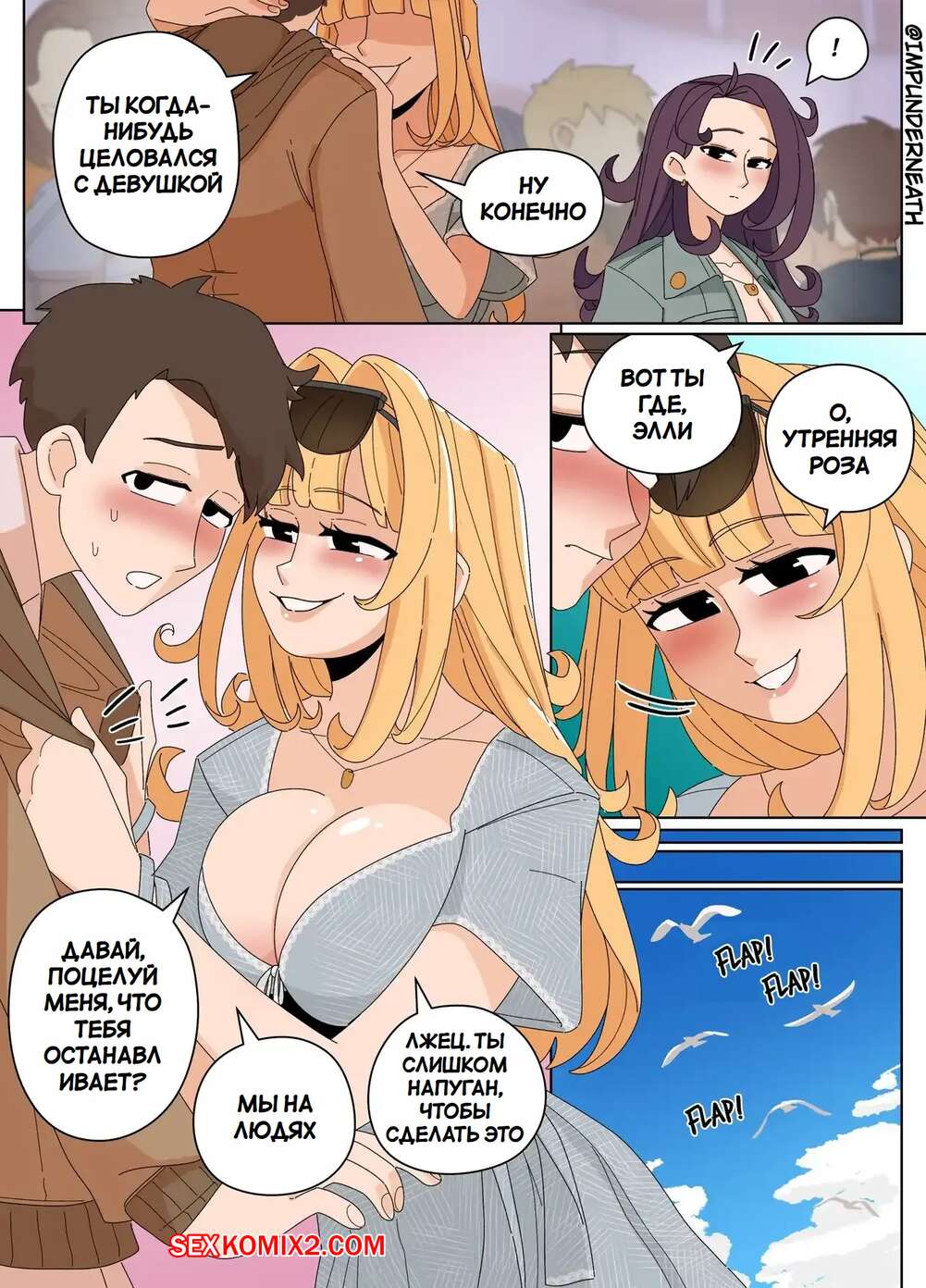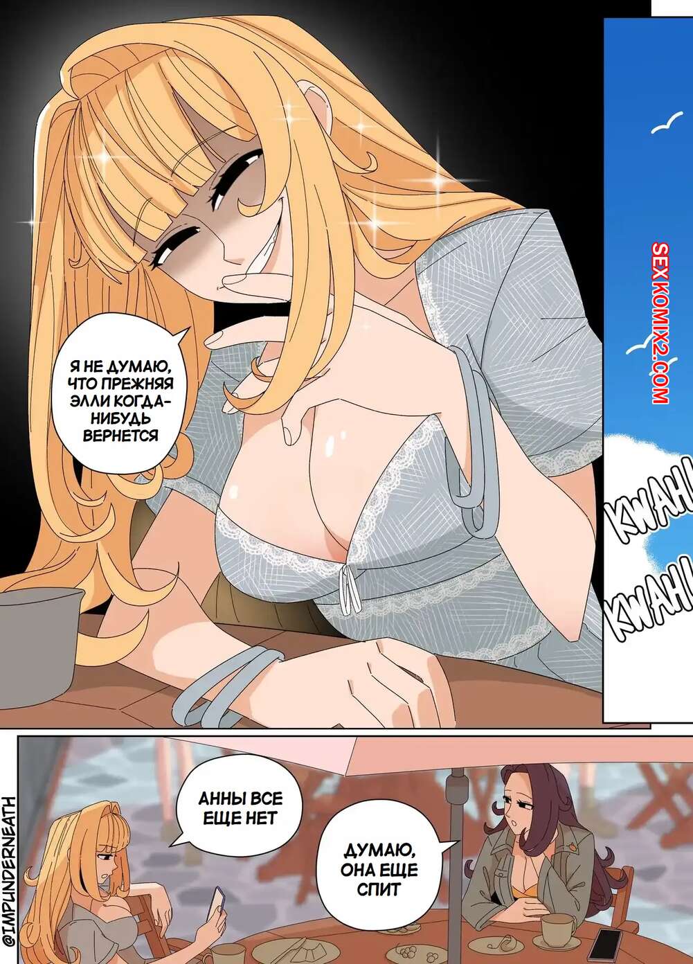 Порно комикс Комбинезон Элли 7. Ellie Skinsuit 7. Imp Underneath Горячие подруги с шикарными телами любят трахаться. Они раздеваются и ласкают друг дружку, а иногда веселятся со своим дружком с большим хуем, занимаясь с ним страстным сексом.