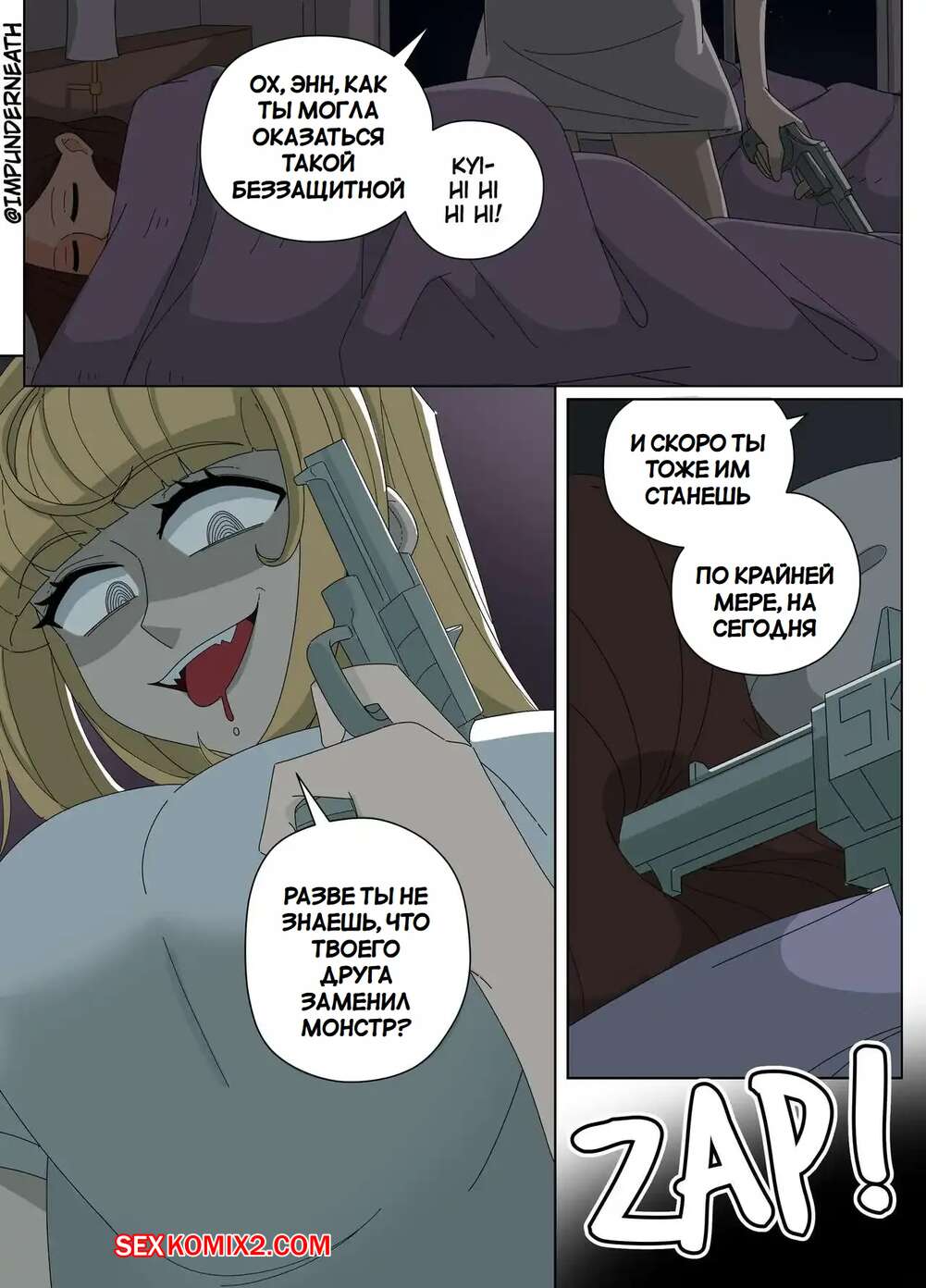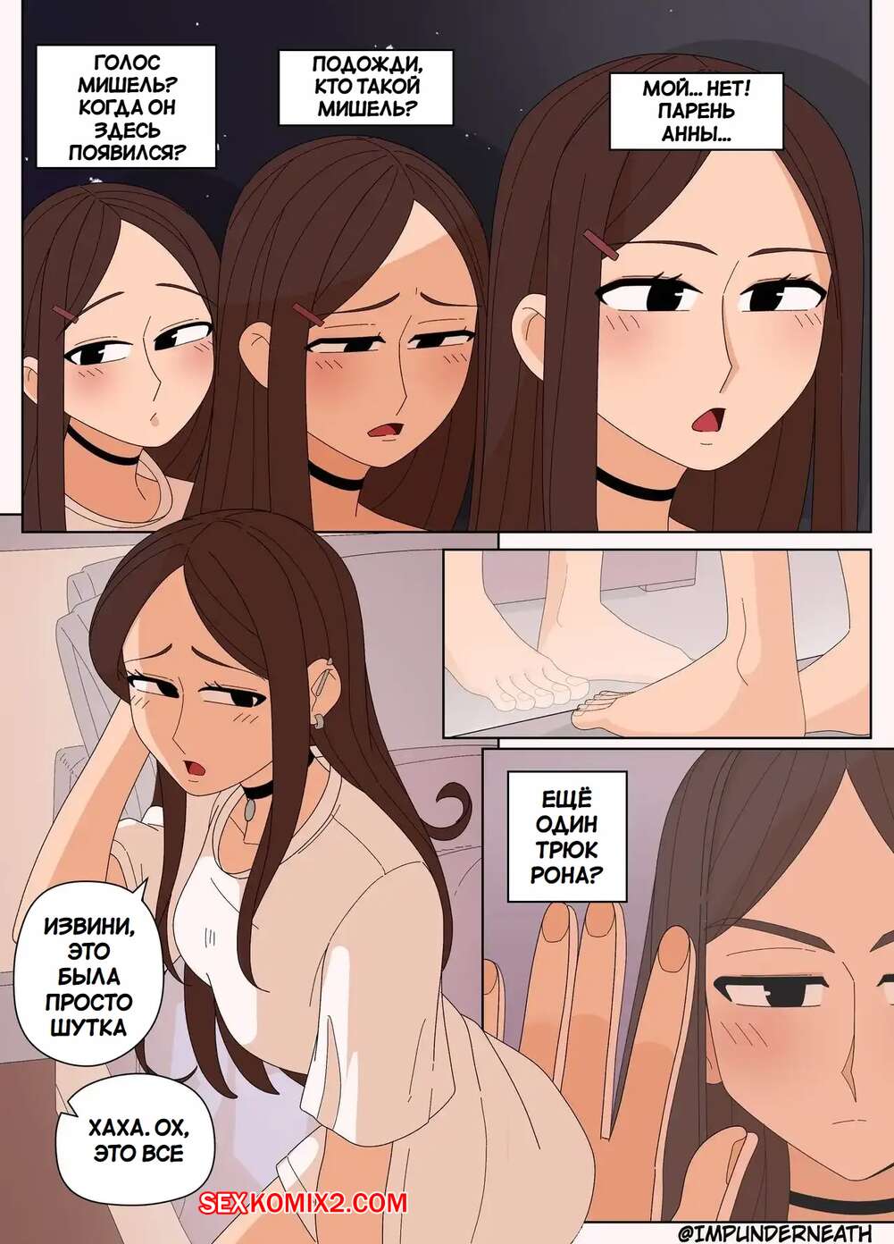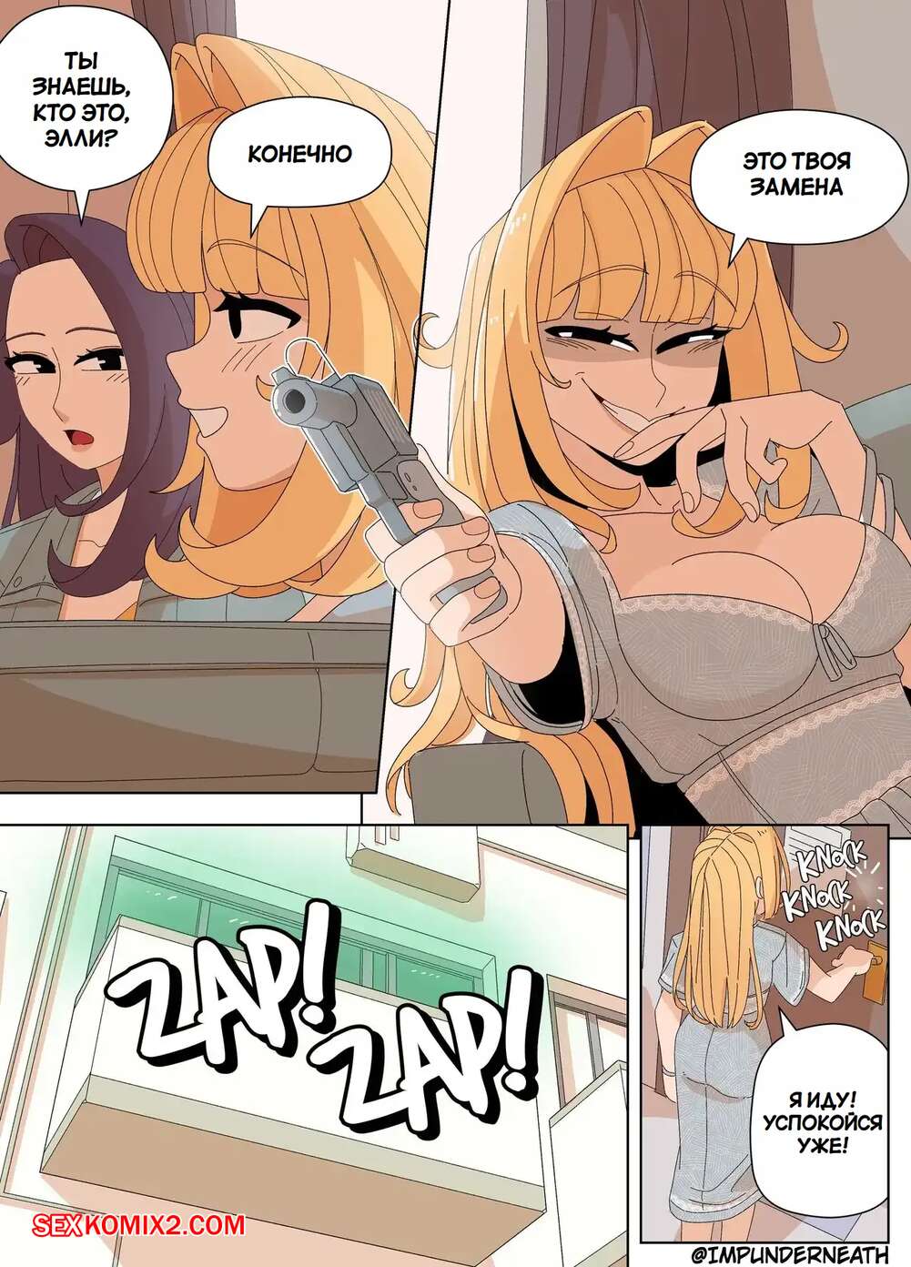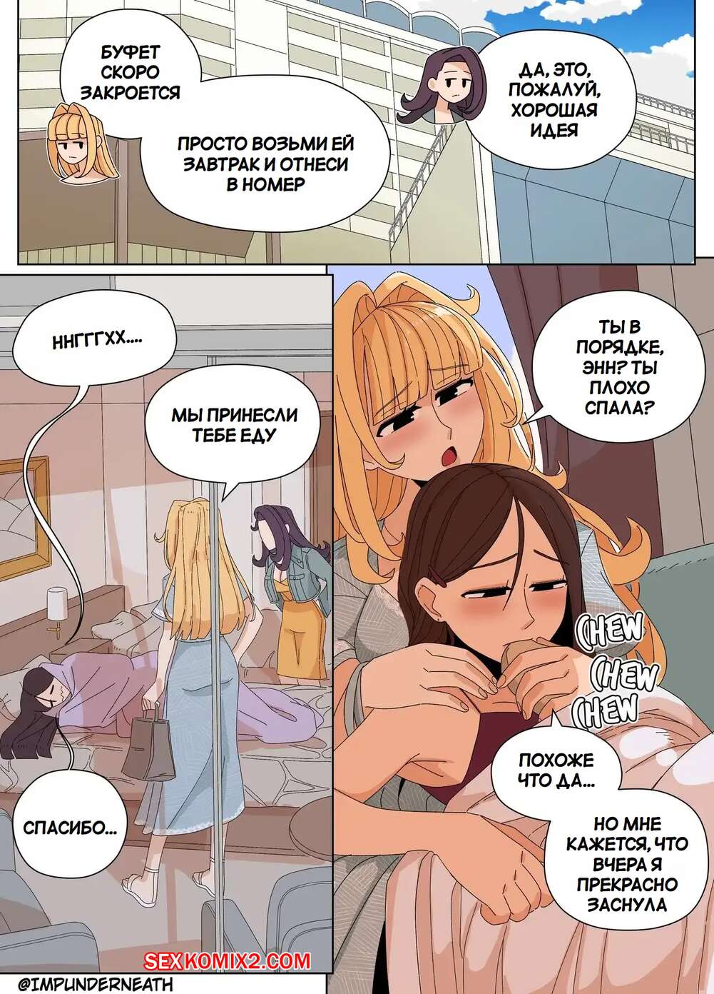 Порно комикс Комбинезон Элли 7. Ellie Skinsuit 7. Imp Underneath Горячие подруги с шикарными телами любят трахаться. Они раздеваются и ласкают друг дружку, а иногда веселятся со своим дружком с большим хуем, занимаясь с ним страстным сексом.