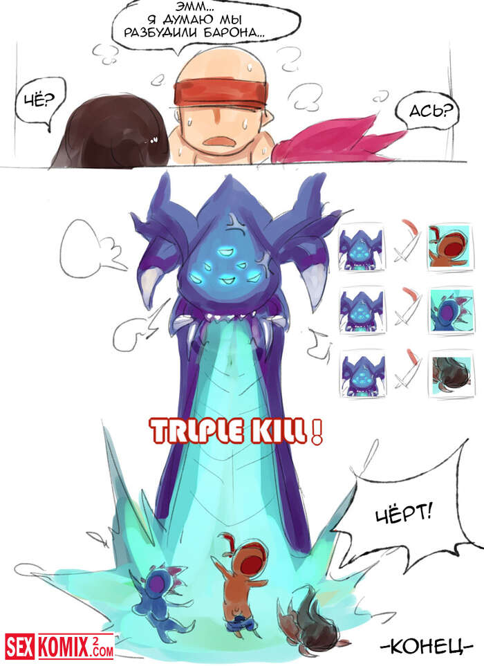 Порно комиксы Контрджангл. Две девушки встретили сильного противника и занялись с ним сексом, но пока они сражались пробудили злого барона.