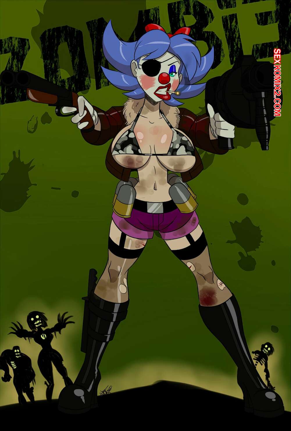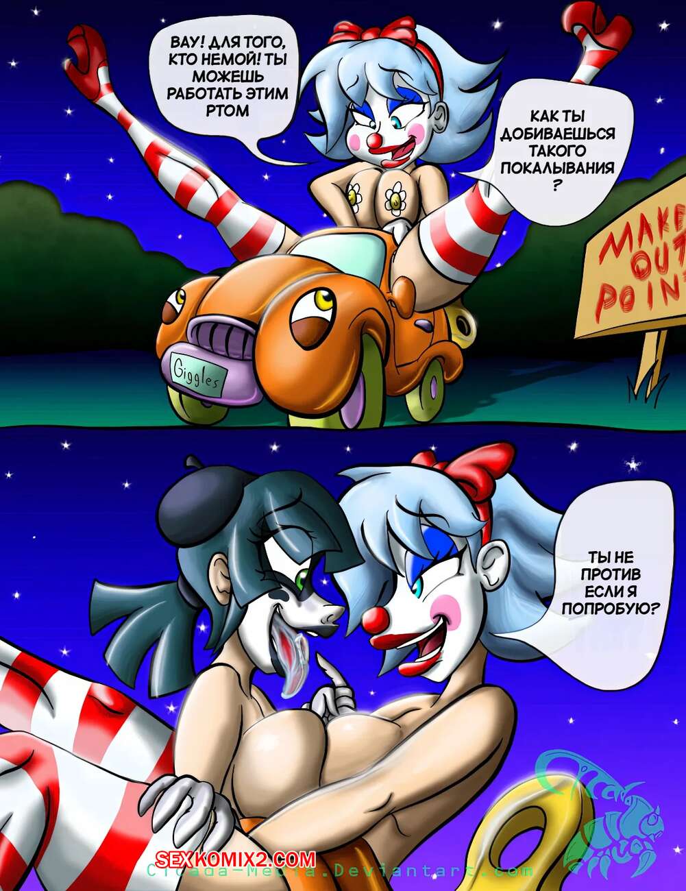 Порно комикс Хихиканье шлюшки клоуна. Giggles The Slutty Clown. Aeolus various. Горячая девушка клоун обладает шикарным телом и очень любит трахаться. Красотка раздевается и соблазняет парней своим шикарным телом, после чего дает им себя выебать во все дырочки.