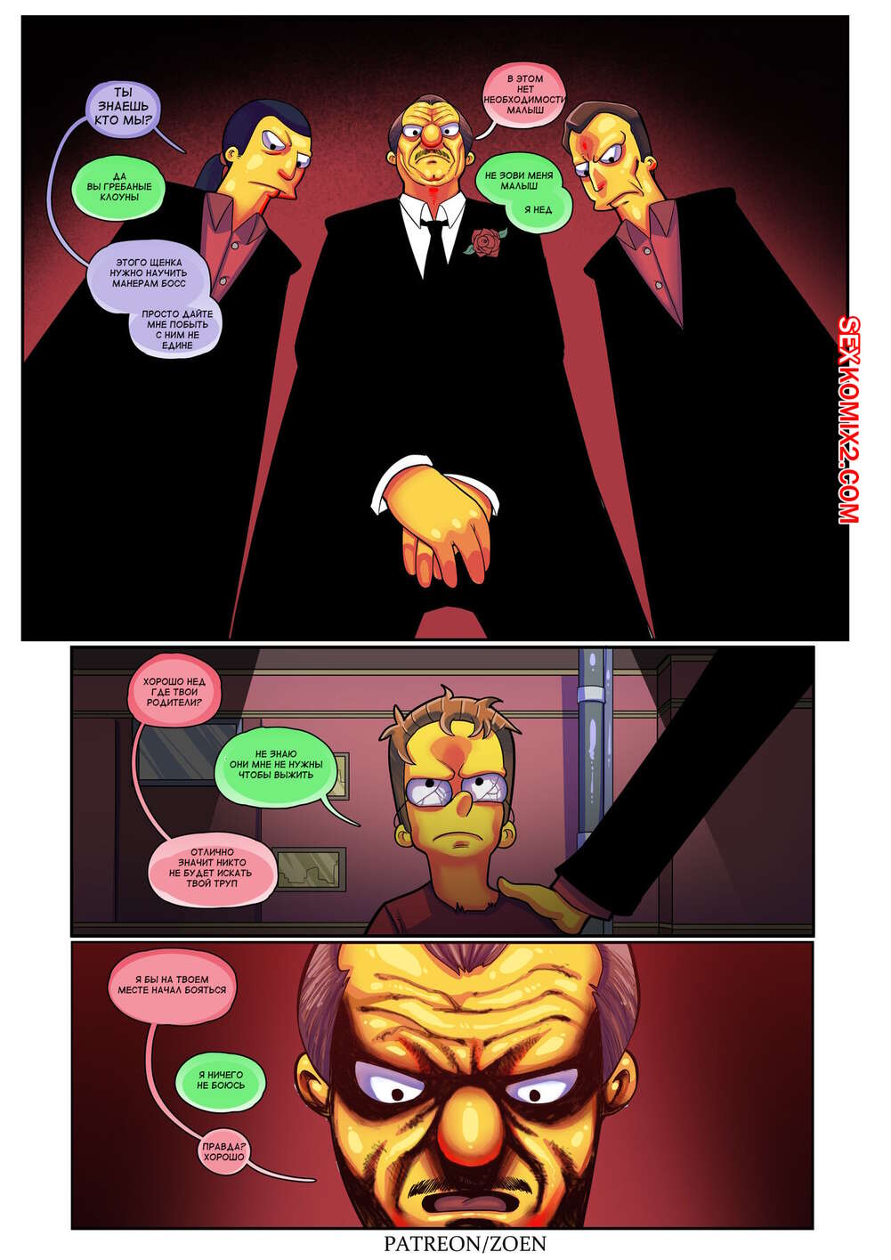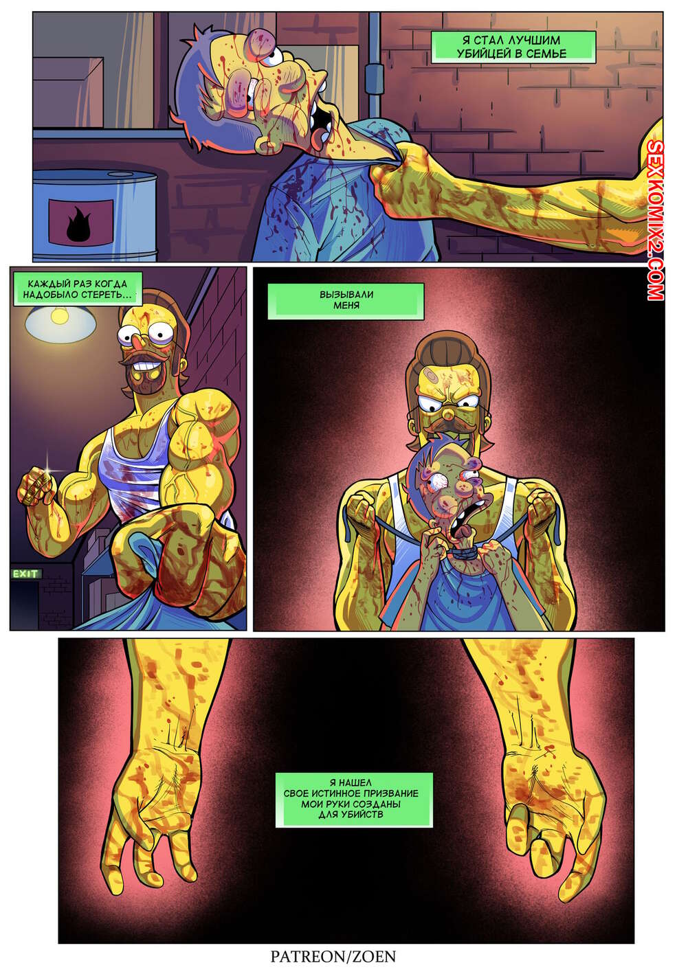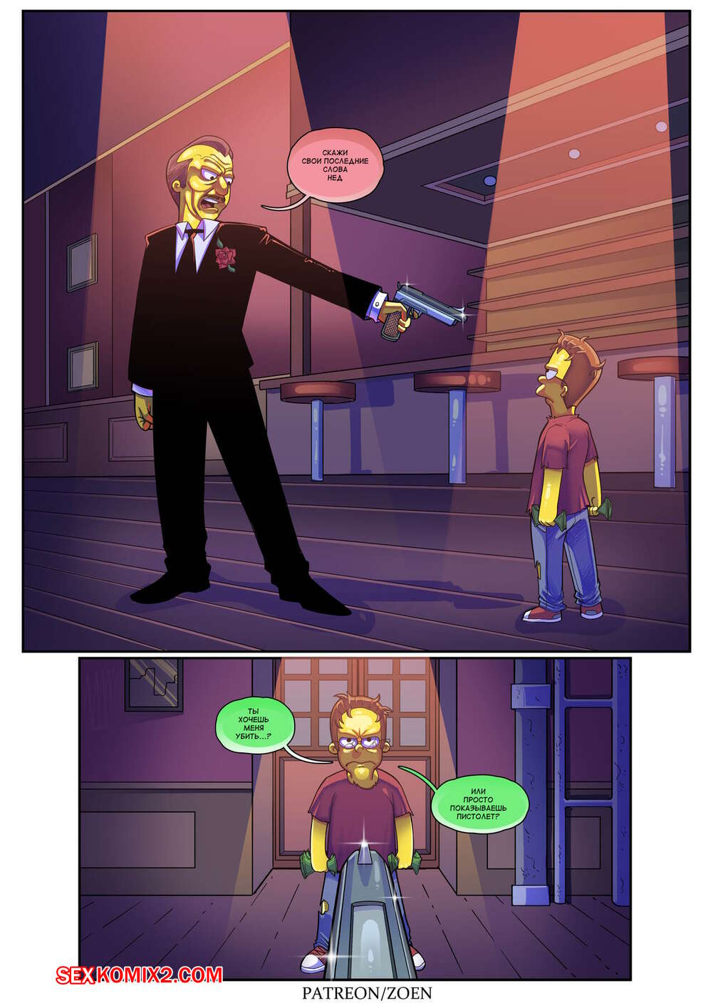 Порно комикс Симпсоны. Плохой парень. Bad Boy. Zoen Нэд проснулся в постели со своей сексуальной женой. Пока милфа спала голой, он стал рассказывать о своем детстве, чтобы поведать каким плохим парнем он был и как достиг такой шикарной женщины.