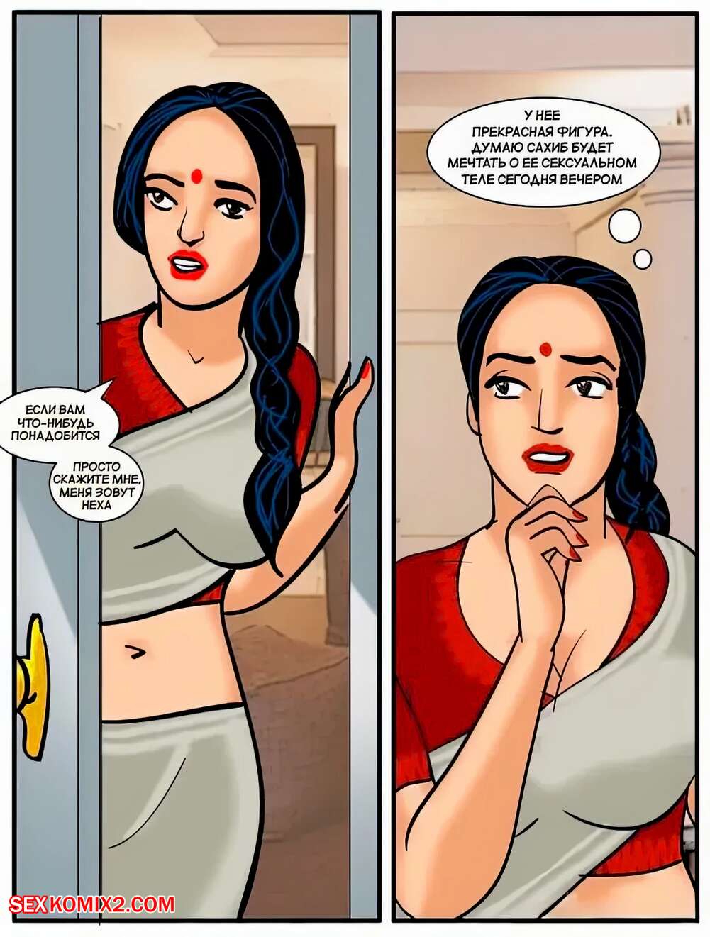 Порно комикс Веламма. Часть 19. Velamma. Velamma Горячая милфа была очень возбуждена и решила повеселиться с мужиком. Красотка разделась и отсосала хуй парня, после чего дала ему выебать свою пизденку.