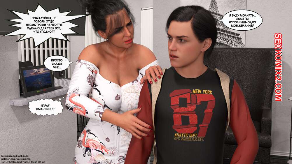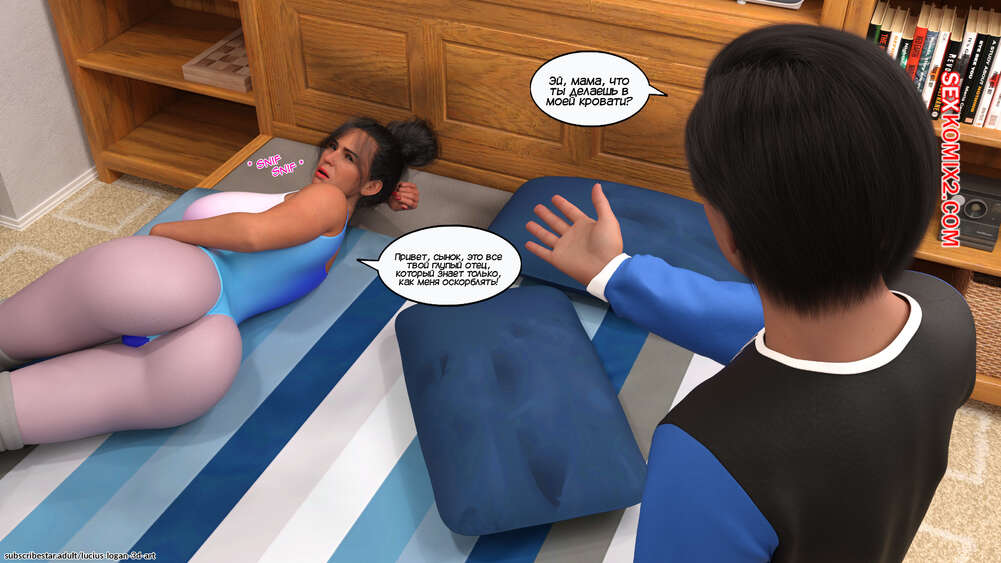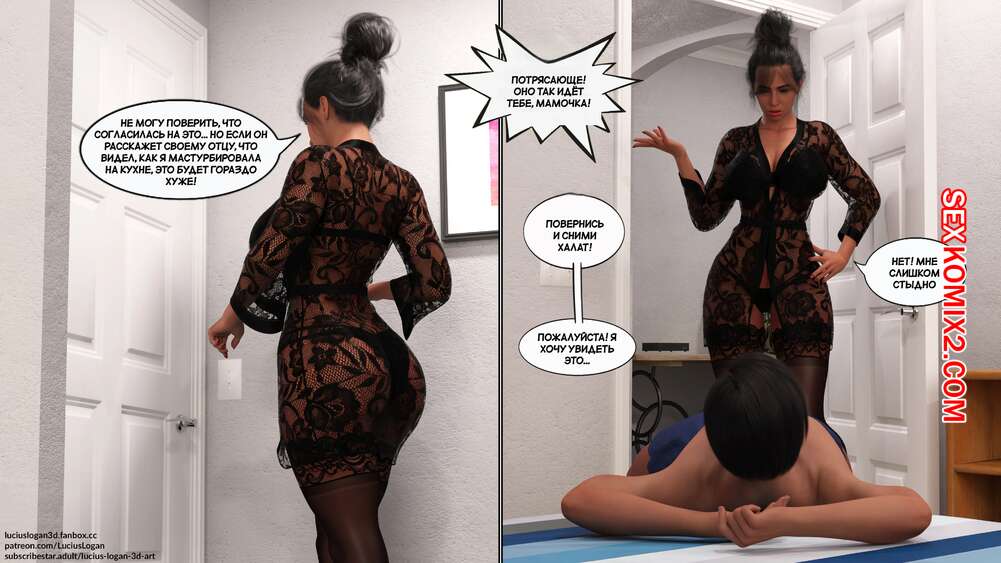 Порно комикс Несчастная. Unhappy. Lucius Logan. Горячая милфа купила сексуальное белье, чтобы порадовать своего мужа, но он совсем не обращал на нее внимания. На красотку заметил ее сынок, который стал ласкать и соблазнять маму, после чего выебал ее.