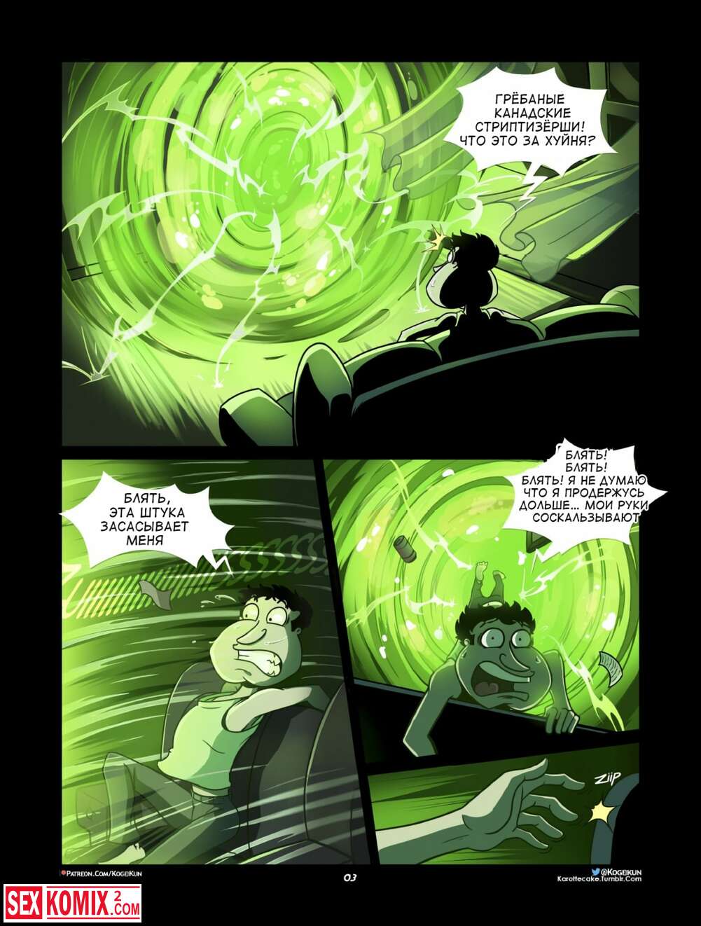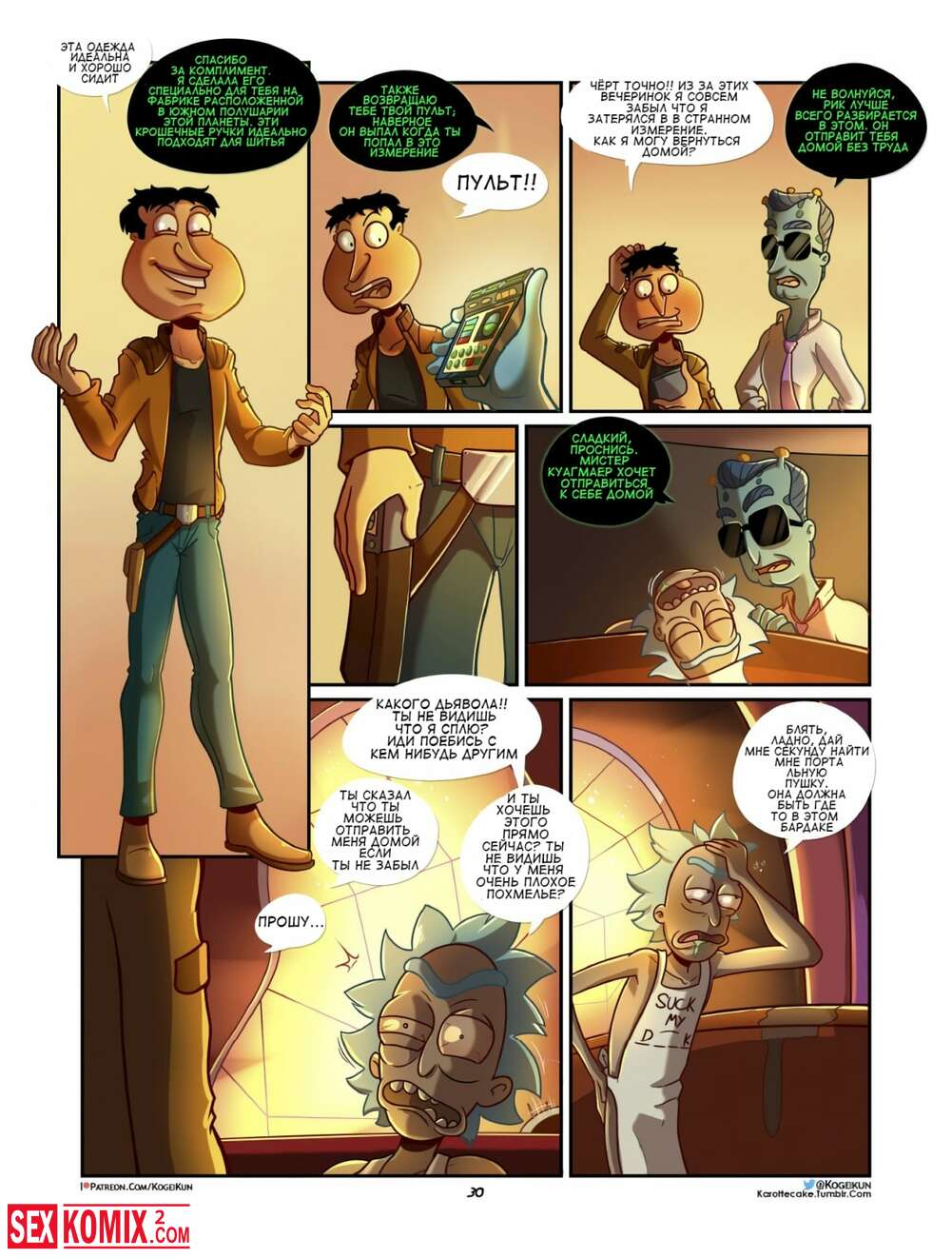 Порно комикс Гриффины vs Рик и Мори. Куагмаер в Мультивселенной. Глен лег спать и почувствовал по подушкой какой-то пульт, это была портальная пушка, которая перенесла его во вселенную Рика и Морти.