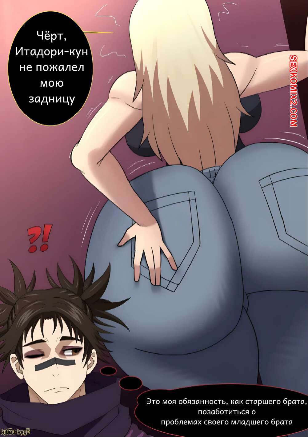 Порно комикс Сука особого ранга. Special grade bitch. Kibou Kage. Блондинка в огромными буферами скачет на огромном хуе своего парня.