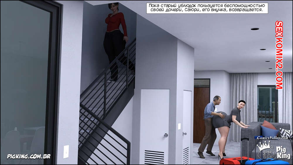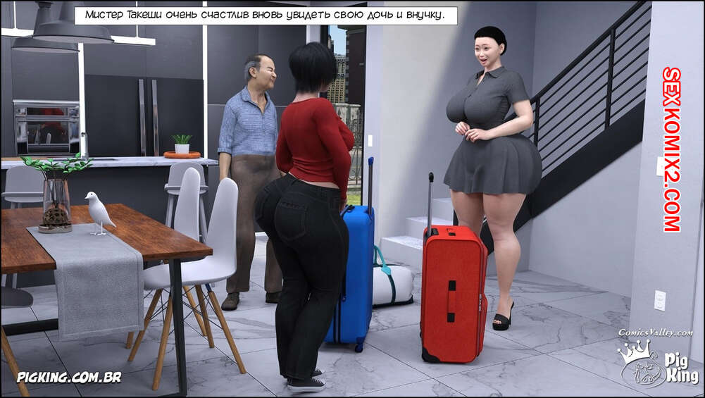 Порно комикс Семья Кобайаши. Часть 1. Kobayashi Family. CrazyDad3D К старику Такеши приехали его дочь и внучка. Оставаясь наедине с девушками, старик начинает к ним приставать и соблазняет, желая убедить девушек заняться с ним сексом.