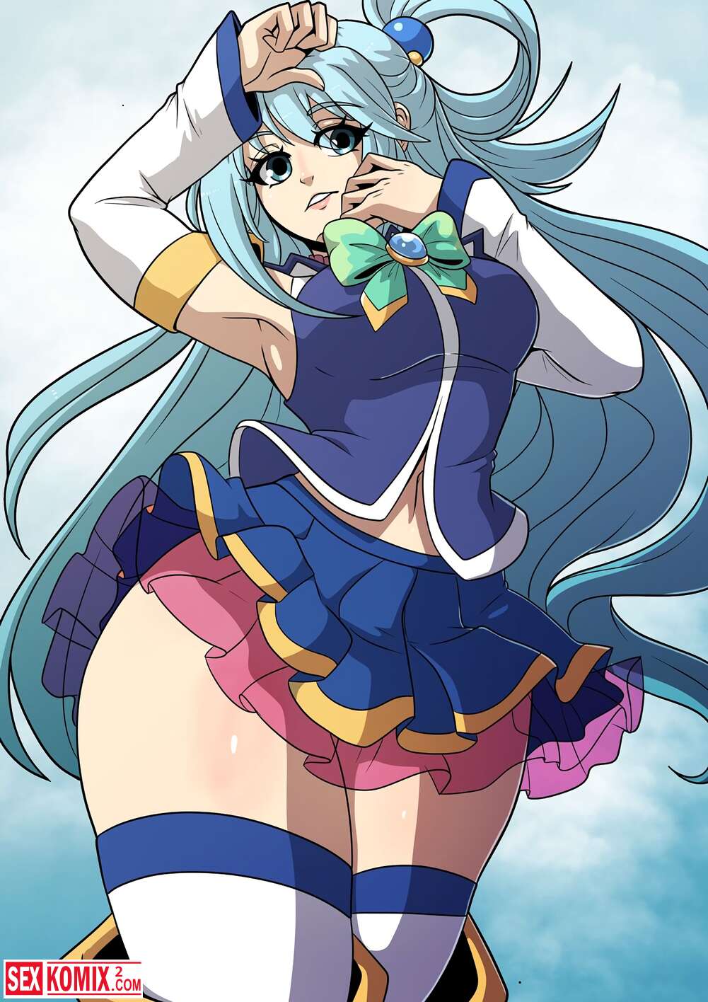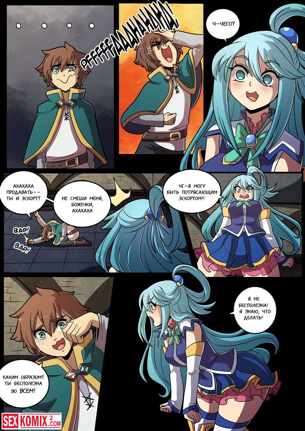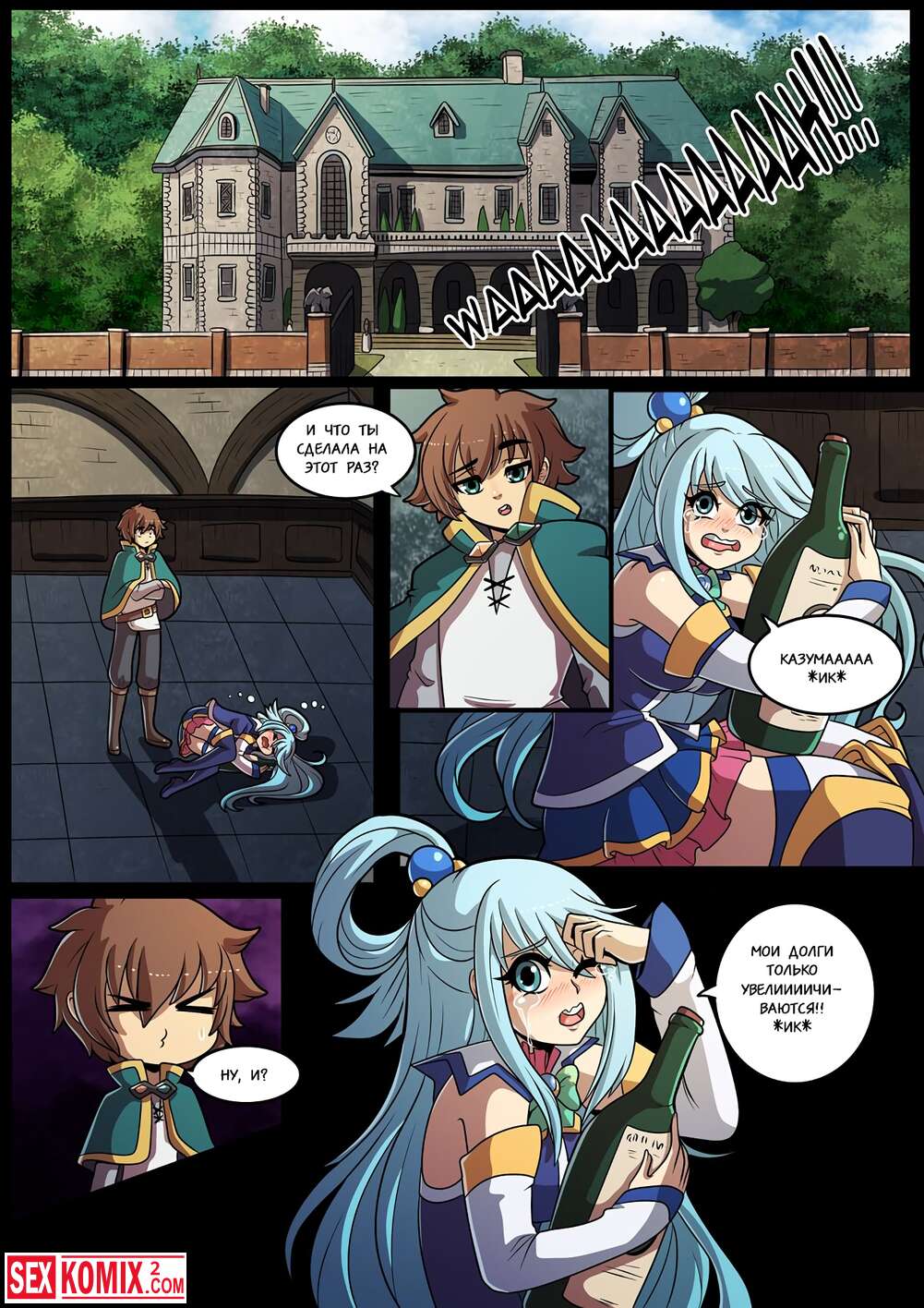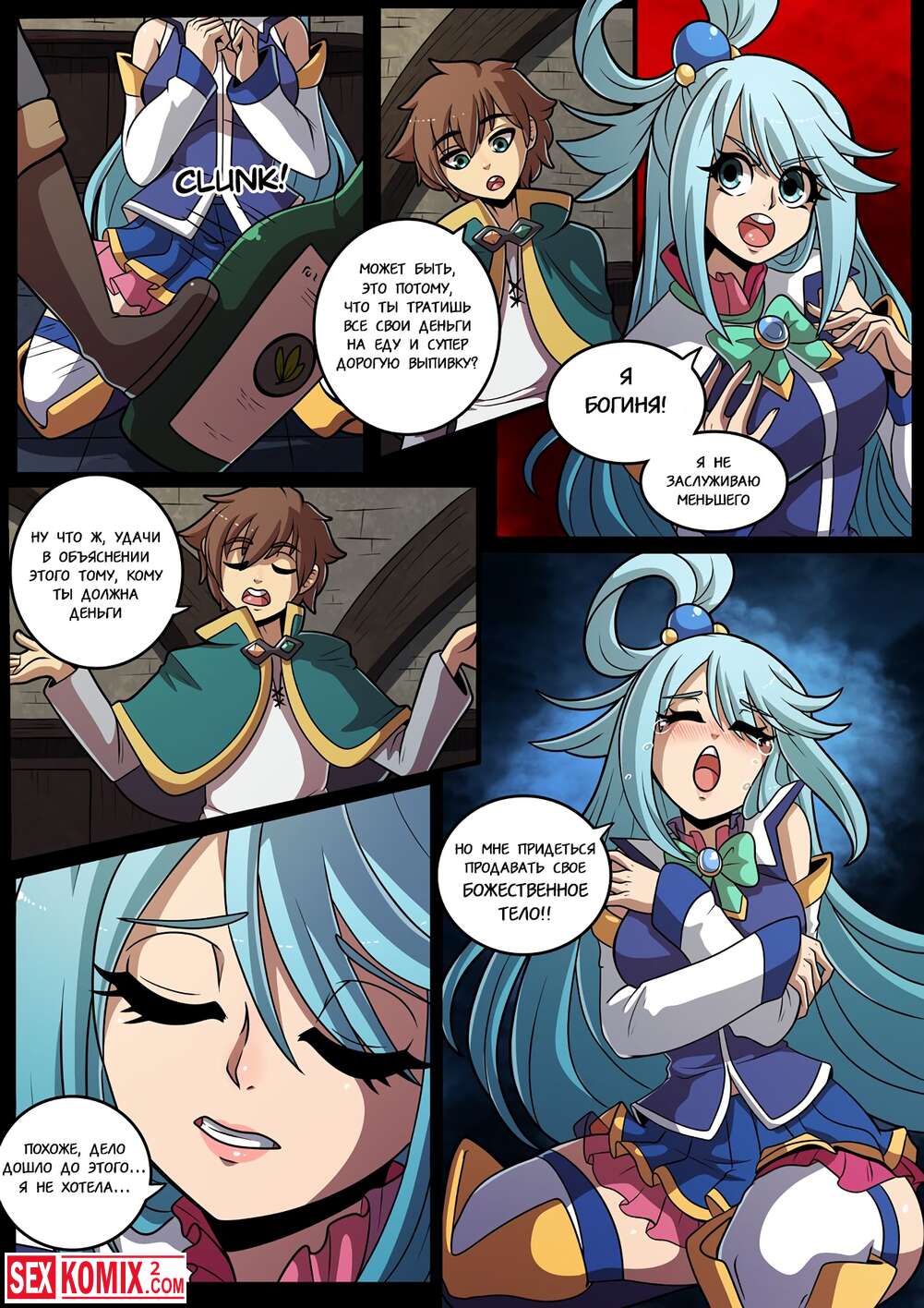 Порно комикс Konosubass. Задание Аквы. Финансовые дела девушки очень плохи и она обратилась за помощью к своему другу. Он посоветовал пройти квест за который она получит хорошую награду.