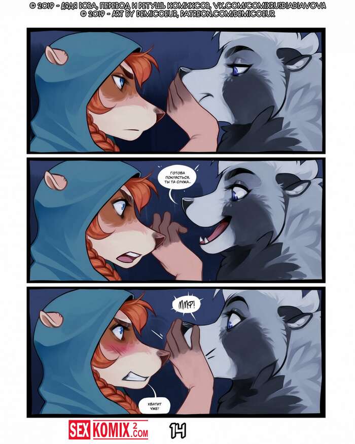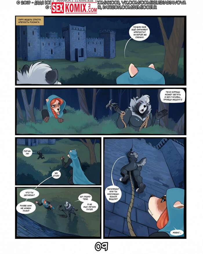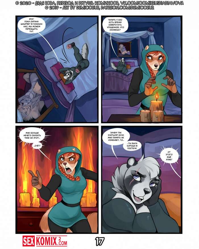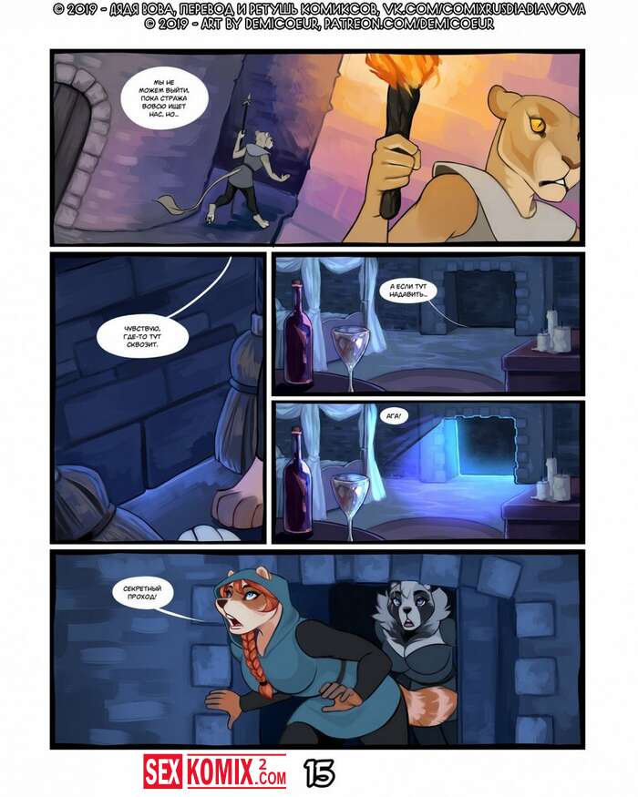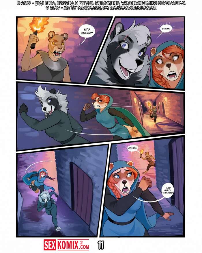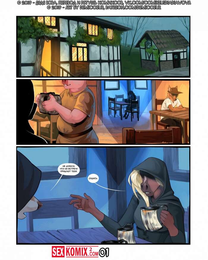 Порно комикс Фурри Меч Богов. Девушка воин отдыхала в трактире после похода. И на её столе возник волшебный меч, он позвал её на приключения. Девушка взяла с собой помощников и отправилась в путь.