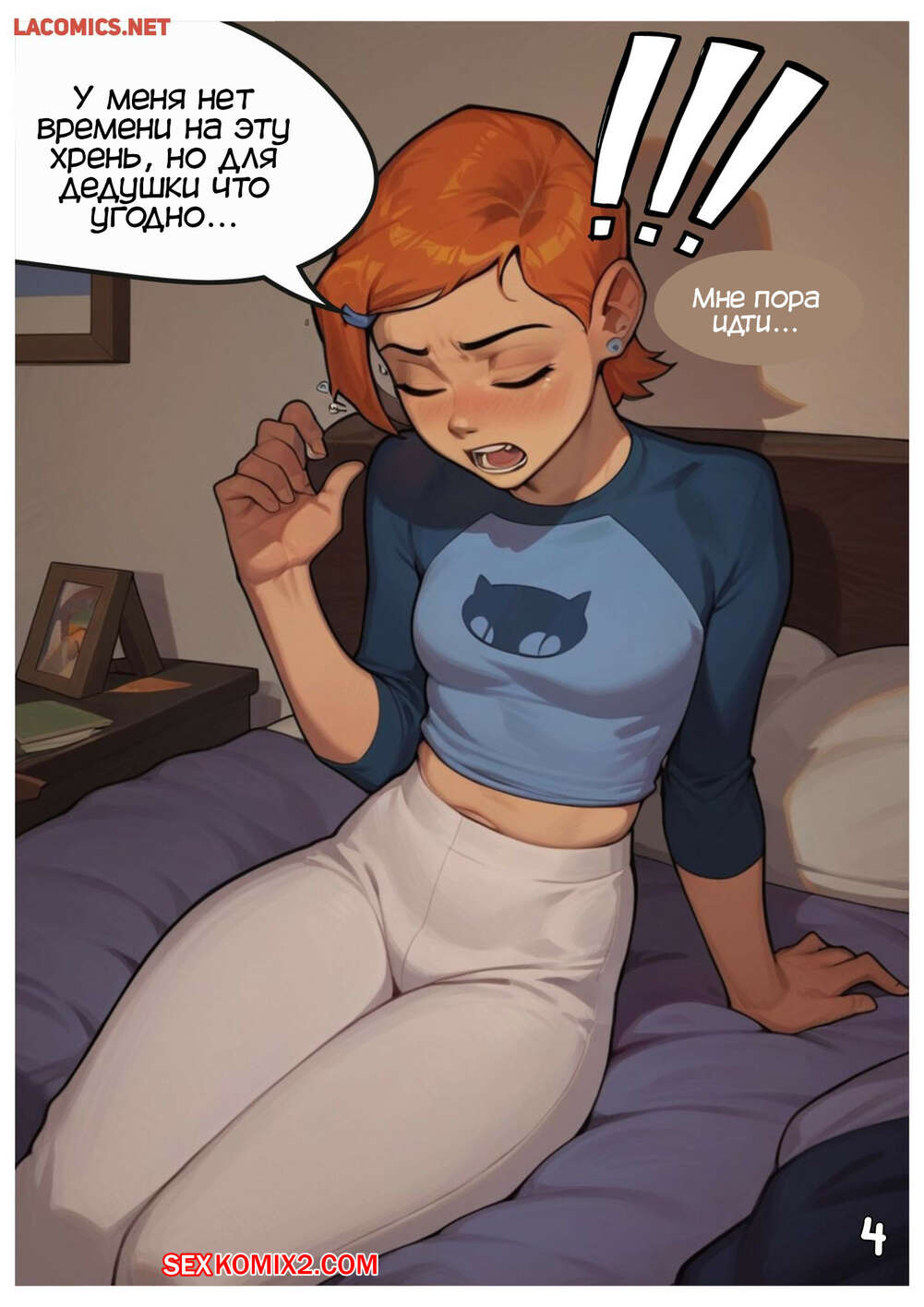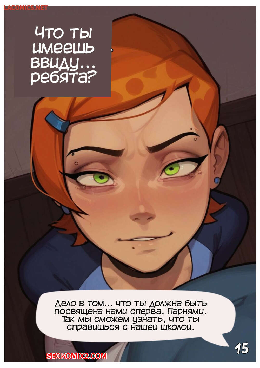Порно комикс Бен 10. Гвен. Неожиданные уроки. Gwen. Unexpected Lessons. FurBro Дедушка устроил горячую красотку Гвен в новую школу. Девушка совсем не хочет туда идти, но ей пришлось. Там красотку встретили парни со школы, которые решили устроить ей посвящение.