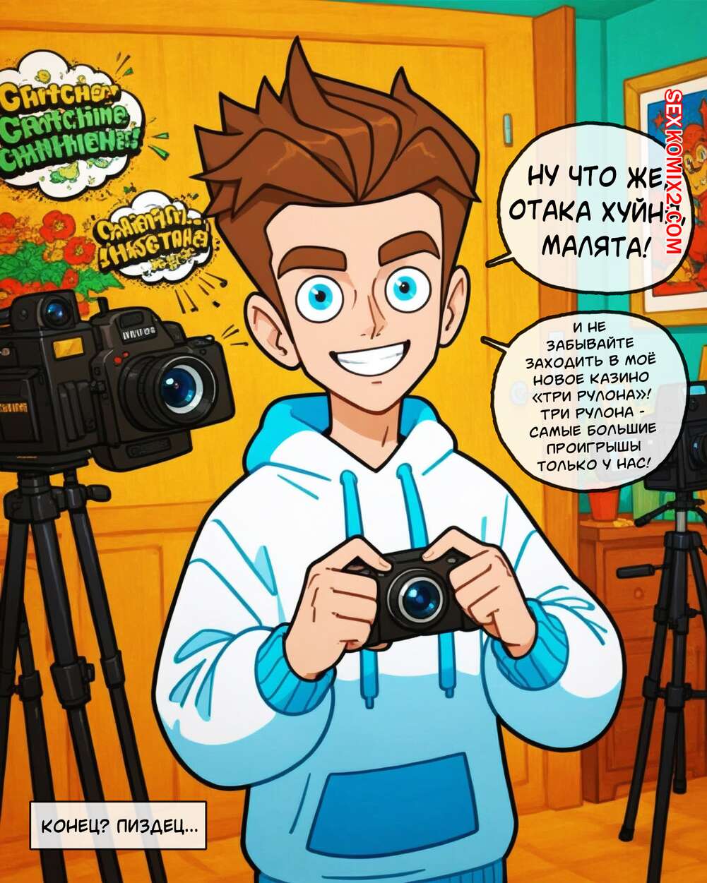Порно комикс Лучший блогер челлендж Горячая блондинка запустила челлендж. Девушка встречается с парнями и соблазняет их своим шикарным членом, после чего сосет их большие хуи и дает им себя выебать, снимая все это на камеру.