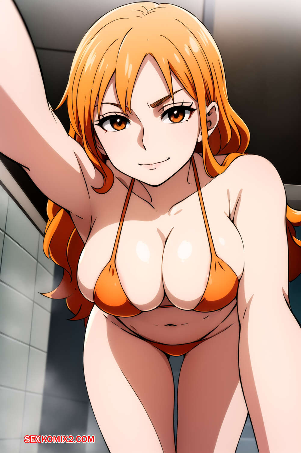 Порно комикс Nami. ArimaAgamiAI Рыжая красотка Нами была очень возбуждена и решила повеселиться со своим дружком. Красотка разделась и отсосала большой хуй парня, после чего дала ему себя выебать.