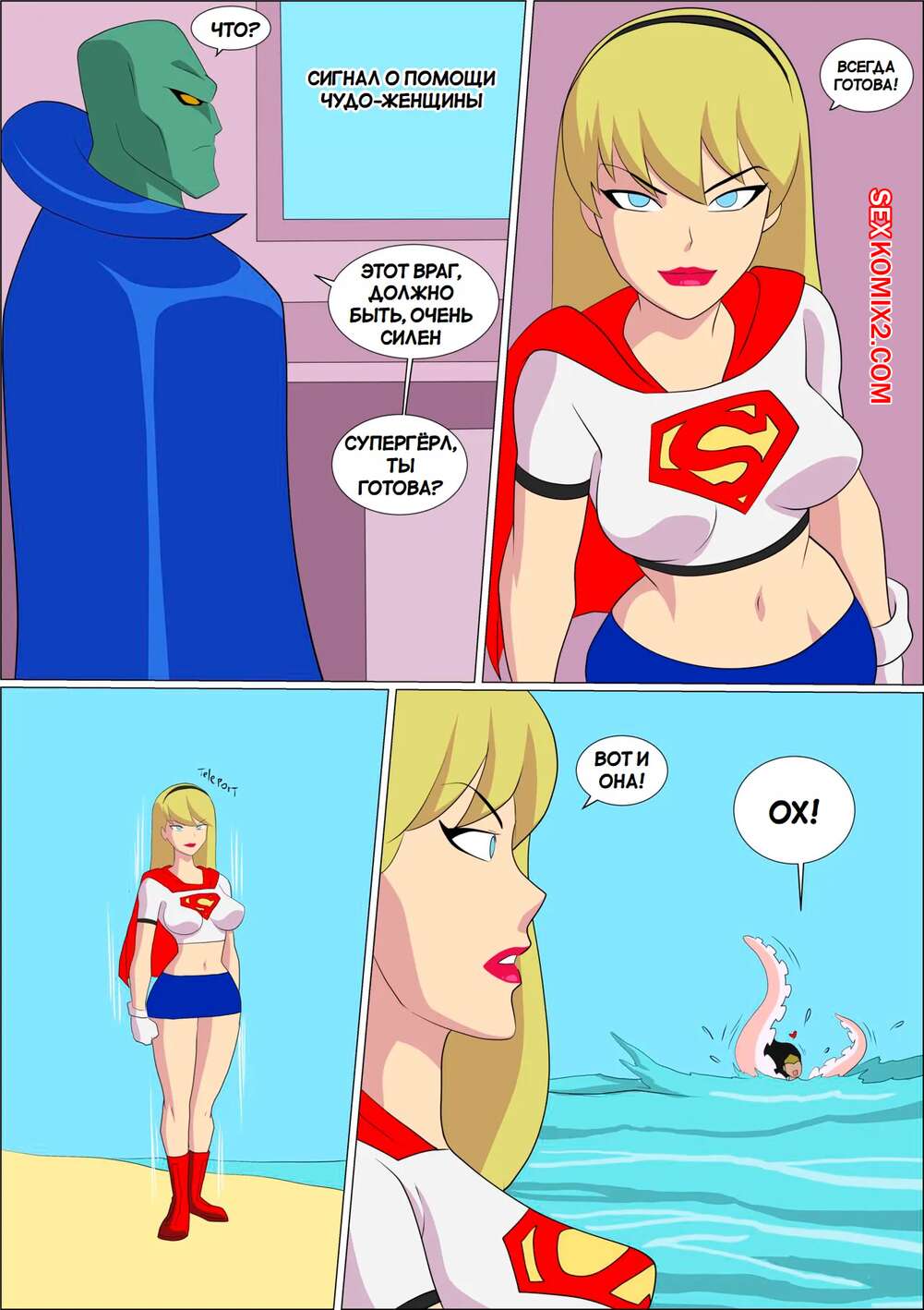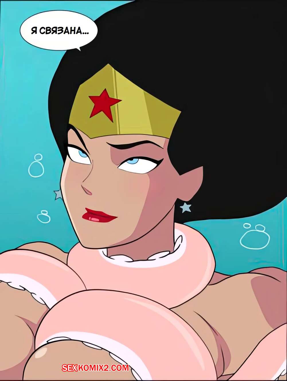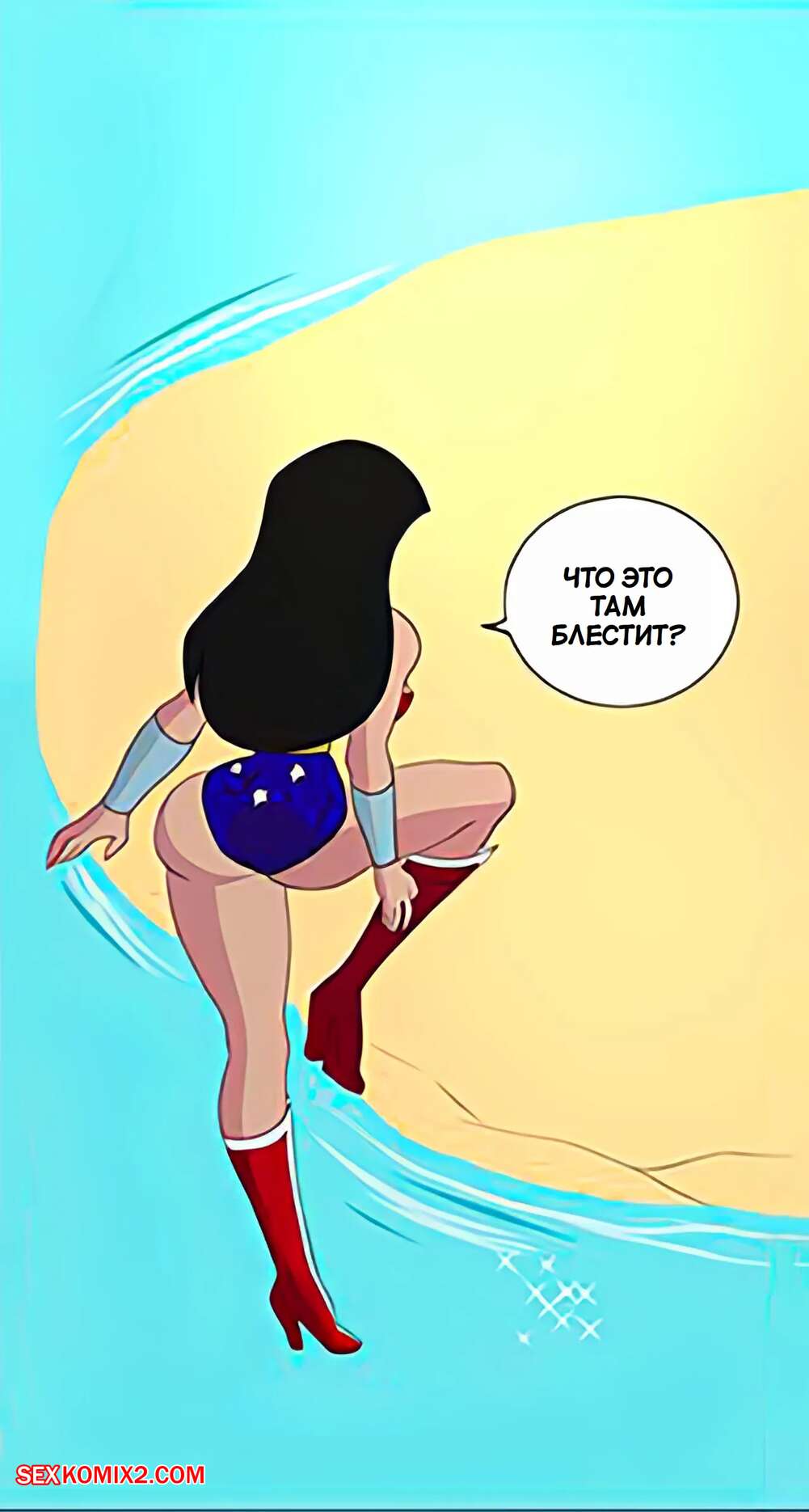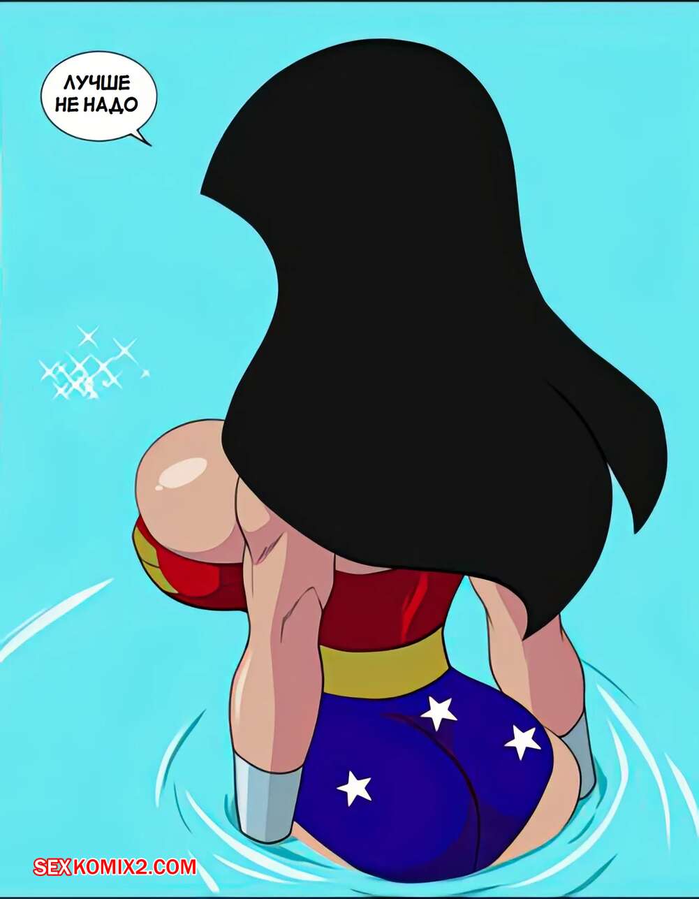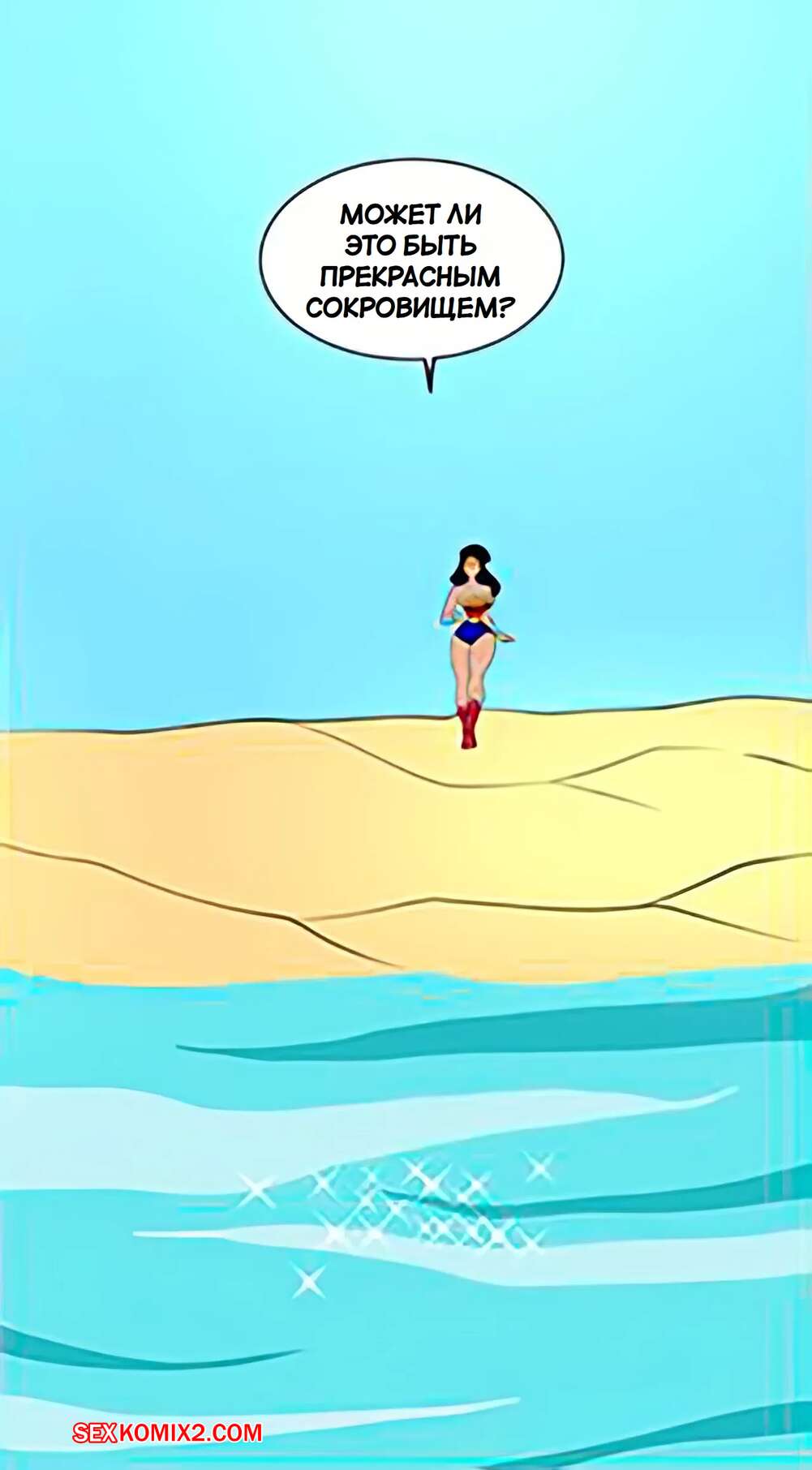 Порно комикс DC. Чудо Женщина против нарушителя. Wonder Woman vs The Intruder Во время своего полета Чудо Женщина обнаружила блеск в воде. Девушка встретила осьминога, который стал ласкать ее дырочки, поэтому она решила взять его на базу Лиги справедливости, чтобы продолжить веселиться.