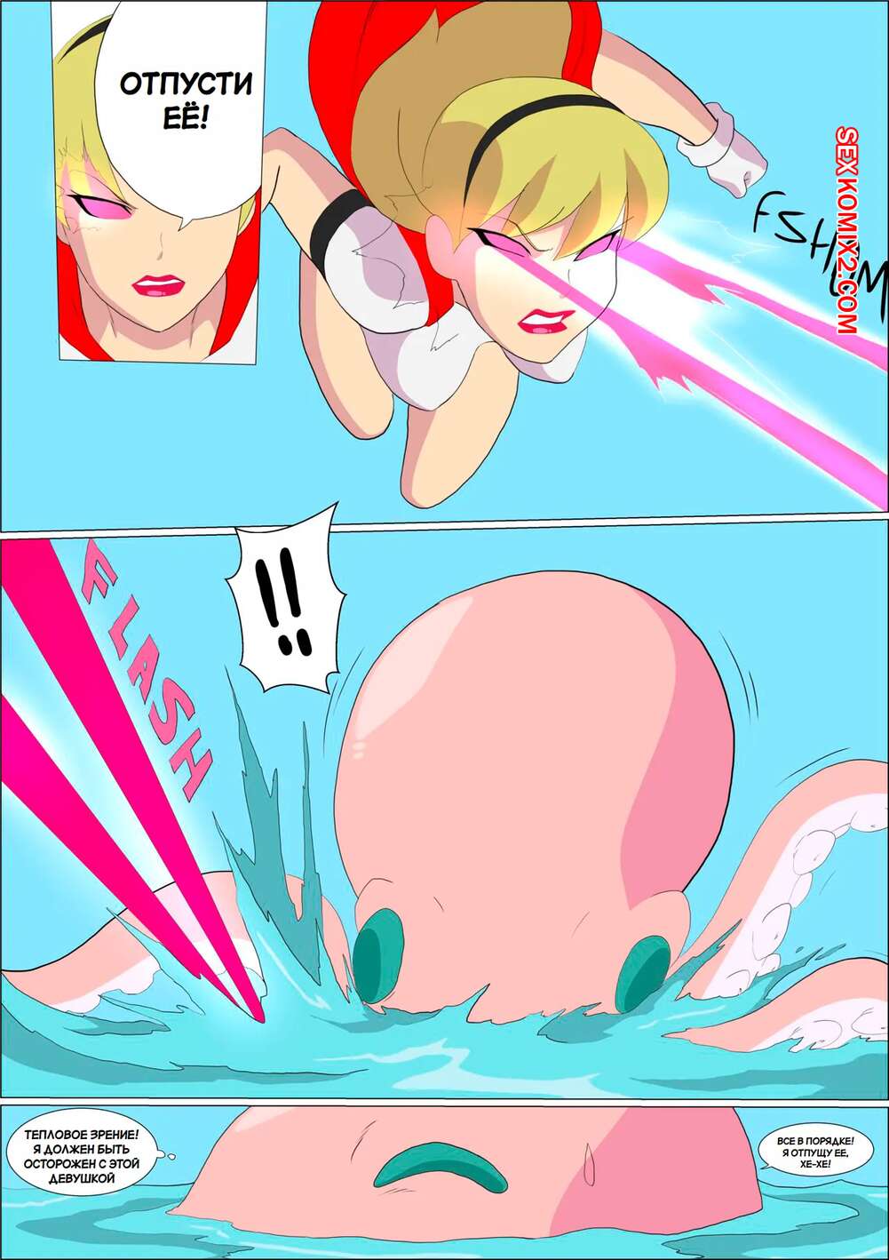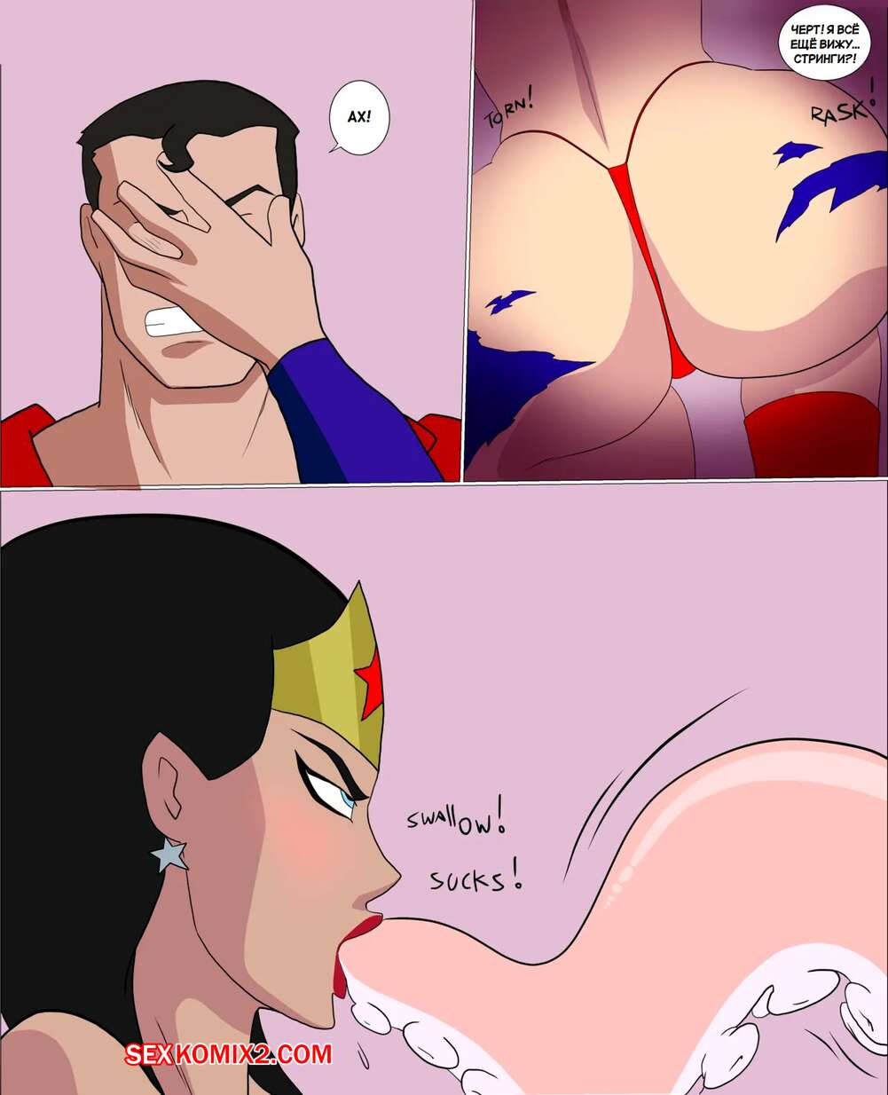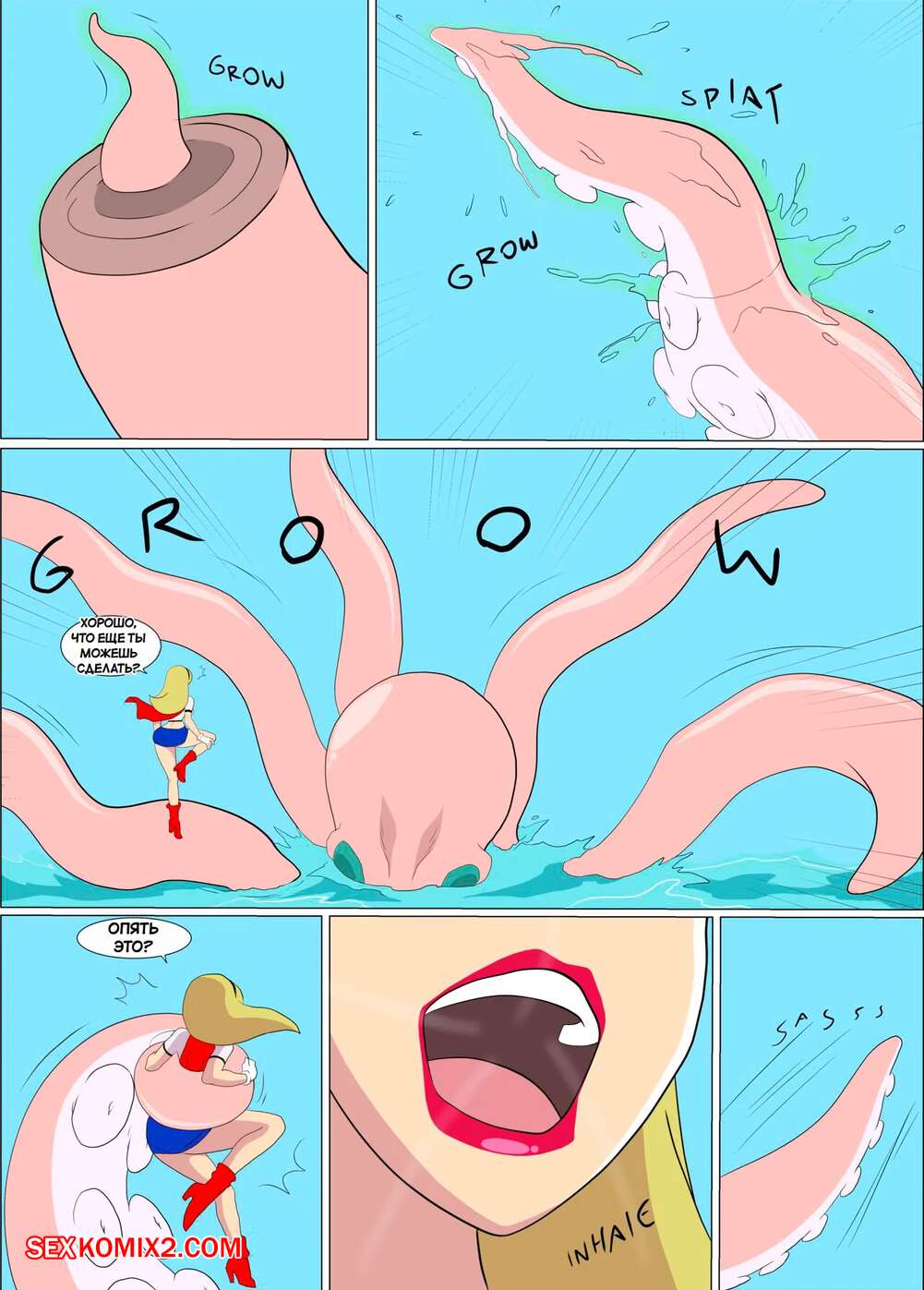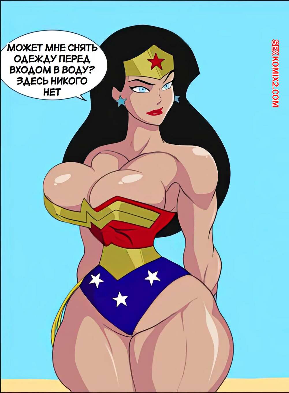 Порно комикс DC. Чудо Женщина против нарушителя. Wonder Woman vs The Intruder Во время своего полета Чудо Женщина обнаружила блеск в воде. Девушка встретила осьминога, который стал ласкать ее дырочки, поэтому она решила взять его на базу Лиги справедливости, чтобы продолжить веселиться.