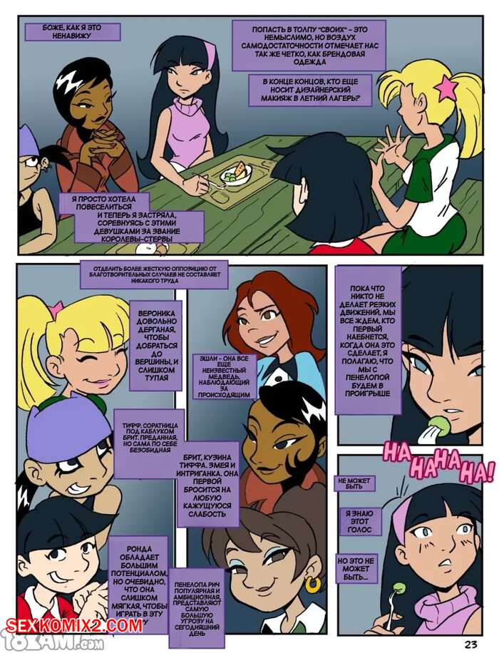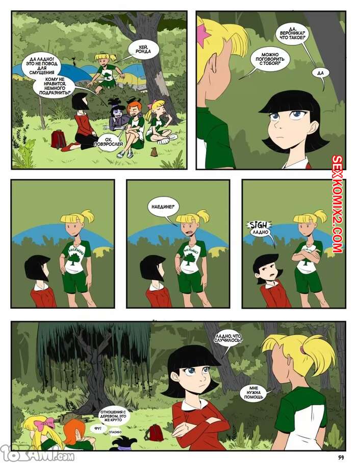 Порно комикс Лагерь Шервуд. Camp Sherwood. Mr.D. В лагере Шервуд собираются парни и девушки из различных мультфильмов. Красотки привлекают внимание своих дружков, которые возбуждают девушек и хорошенько их трахают.