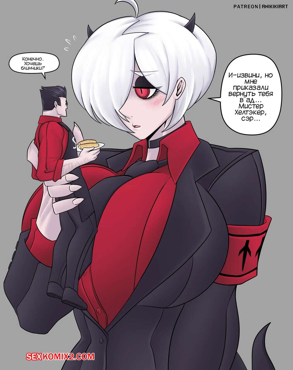 Порно комикс Helltaker. Бехемот и Балор. Behemoth x Balor. Anikiki Art. Горячая блондинка была очень возбуждена и решила повеселиться со своим дружком. Она разделась и отсосала большой хуй парня, после чего дала ему себя выебать.