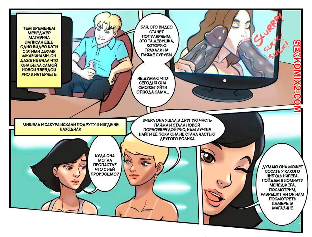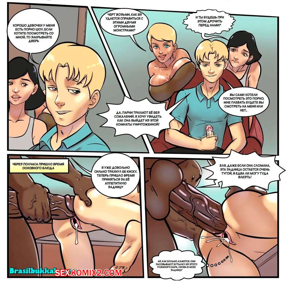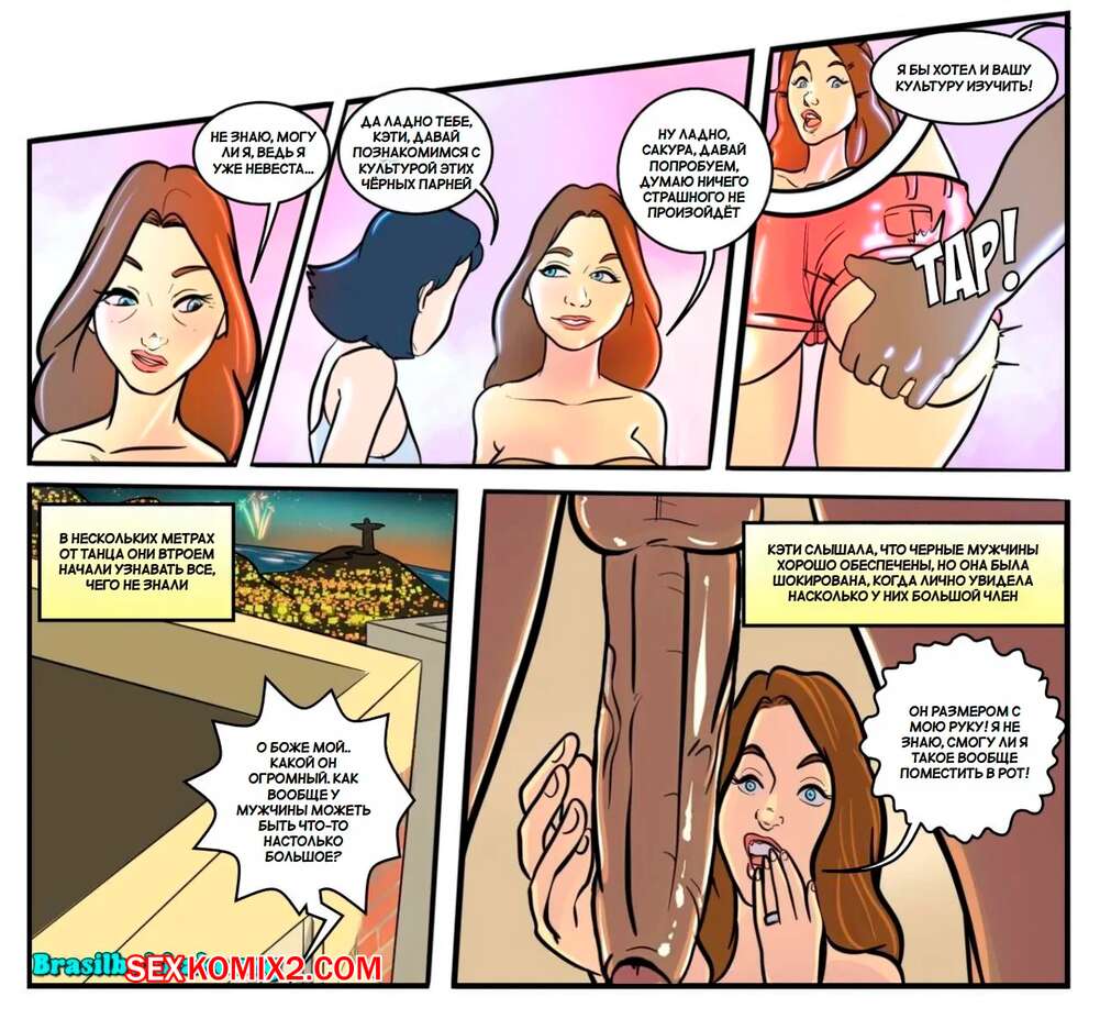 Порно комикс Кэти с подругами открываются для себя Рио. Katy e Amigas Conhecendo o Rio Горячие подруги собрались отдохнуть вместе и отправились в Рио, чтобы расслабиться. Сексуальные девушки привлекают на пляже внимание темнокожих парней, которые ебут девушек во все дырочки.