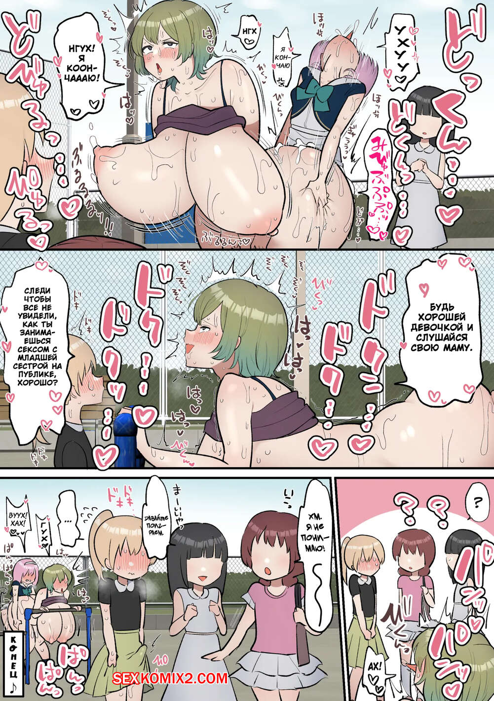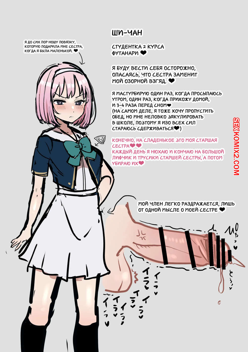 Порно комикс Старшая сестра притворяется спящей ради своей сестренки футанари. Fence 14 Юная девушка обладает большим членом и постоянно испытывает сильное возбуждение. Ее старшая сестра решила помочь сестренке, поэтому она притворяется спящей, чтобы младшая трахала ее пизденку.