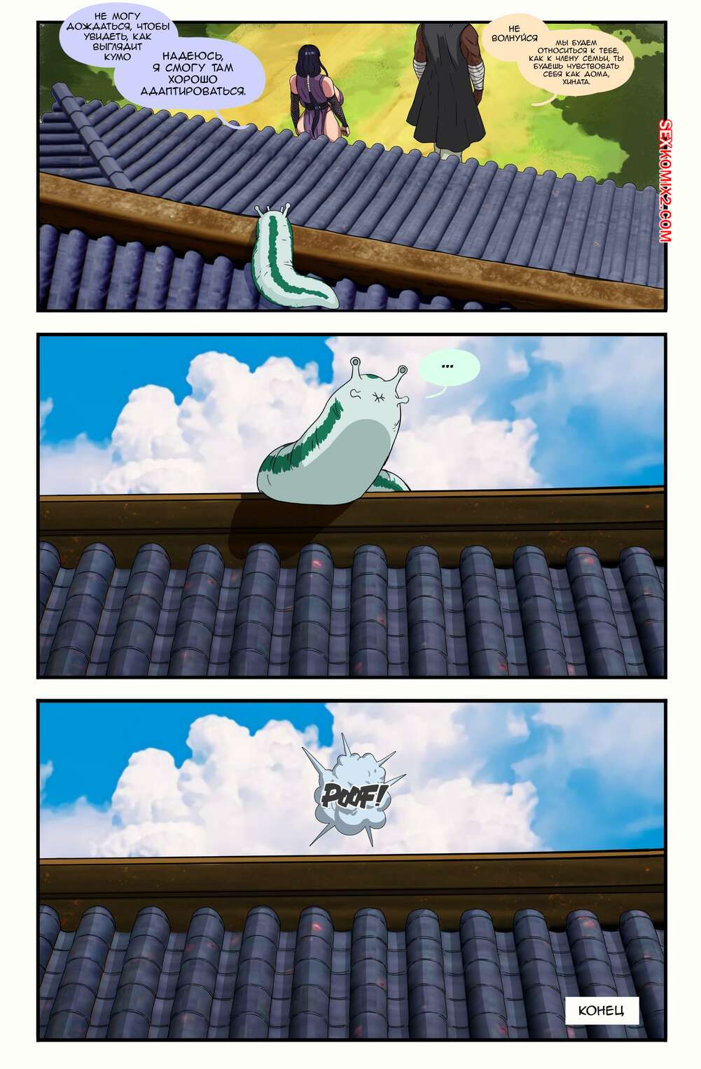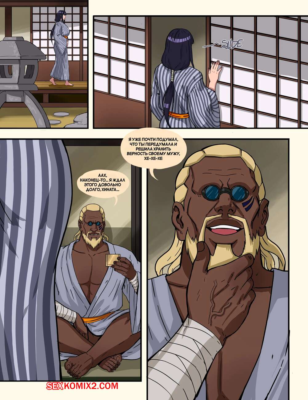 Порно комикс Наруто. Дело шиноби Конохи. Часть 3. Konoha Shinobis Affair. Doodlexxx Горячая милфа Хината надела сексуальный наряд и отправилась домой к Райкаге Сама. Красотка разделась и отсосала черный хуй своего любовника, после чего дала ему себя выебать во все дырочки.