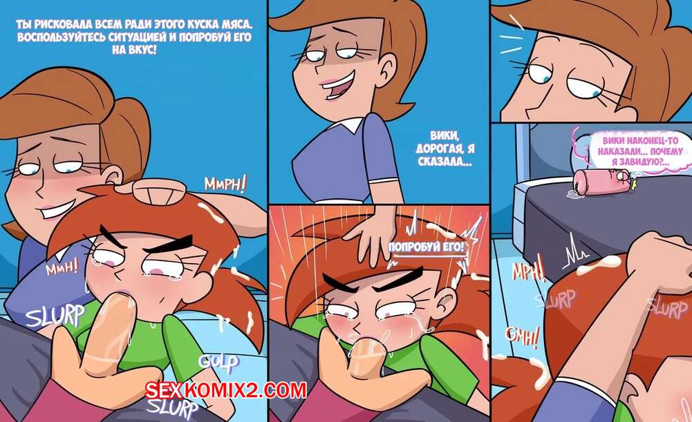 Порно комикс The Fairly Oddparents. За скрытыми желаниями. Behind Hidden Dessires. Magna34 Горячая красотка Викки без ума от большого члена Тимми. Девушка раздевается и сосет большой хуй парня, после чего седлает его член, чтобы он хорошенько выебал ее пизденку.