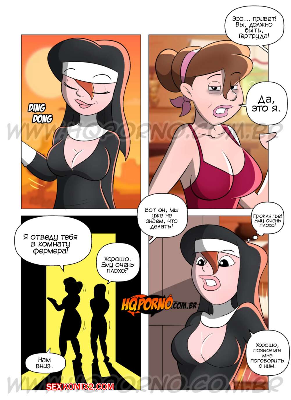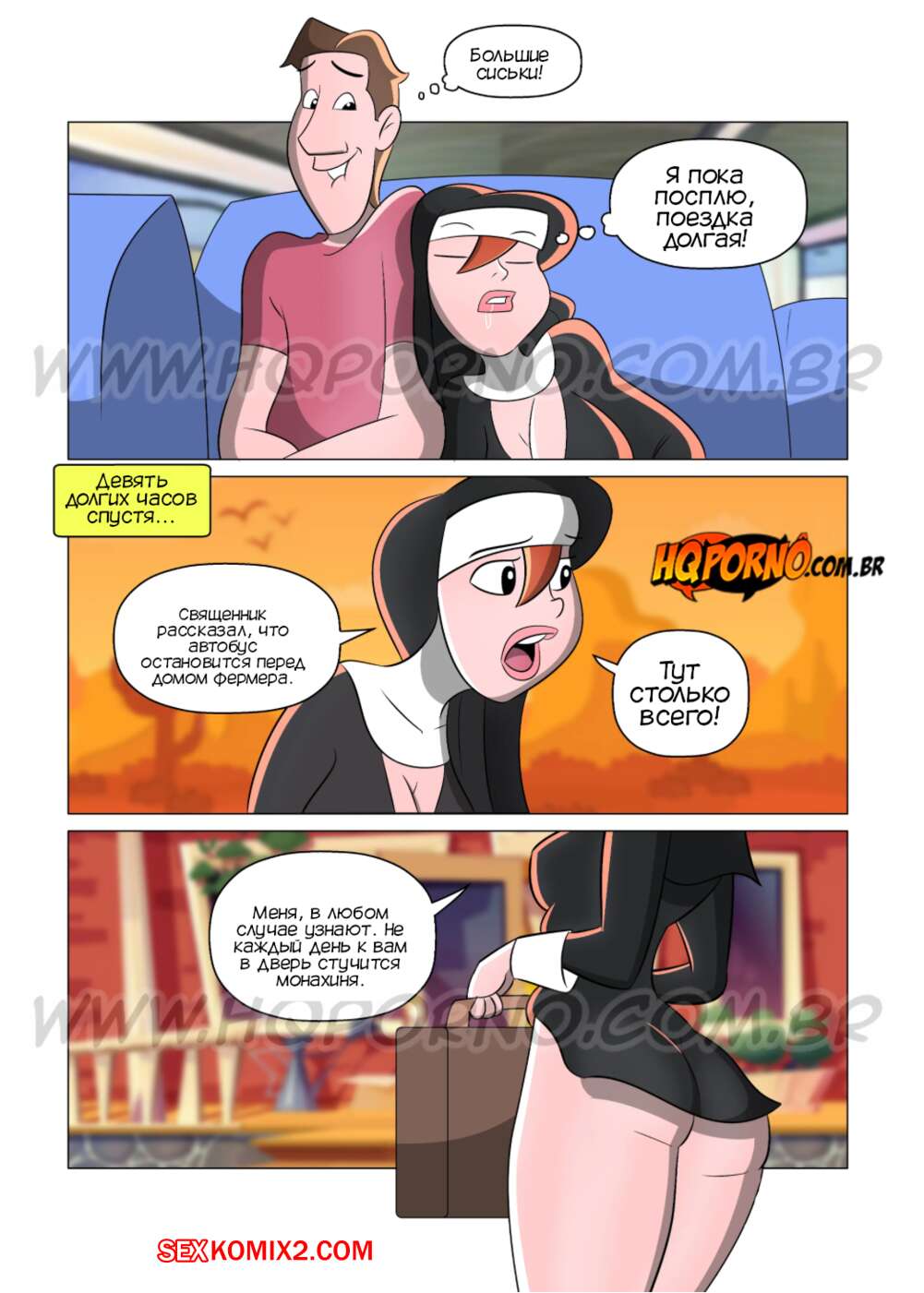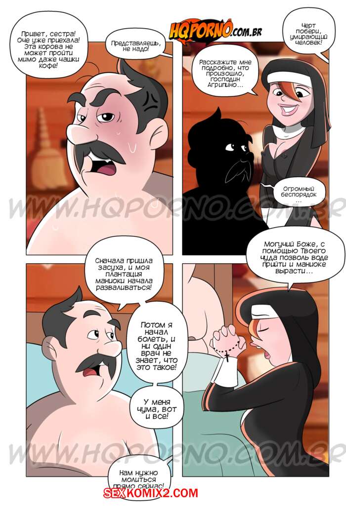 Порно комикс Монахиня. Часть 5. A freira. HQPorno Монашку Кларису отправили домой к больному фермеру. Девушка стала молиться за него и у мужика встал хуй. Девушка разделась и отсосала его большой хуй, после чего дала мужчине выебать себя во все дырочки.